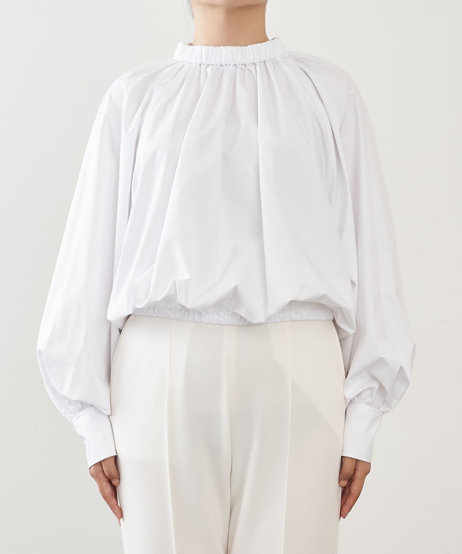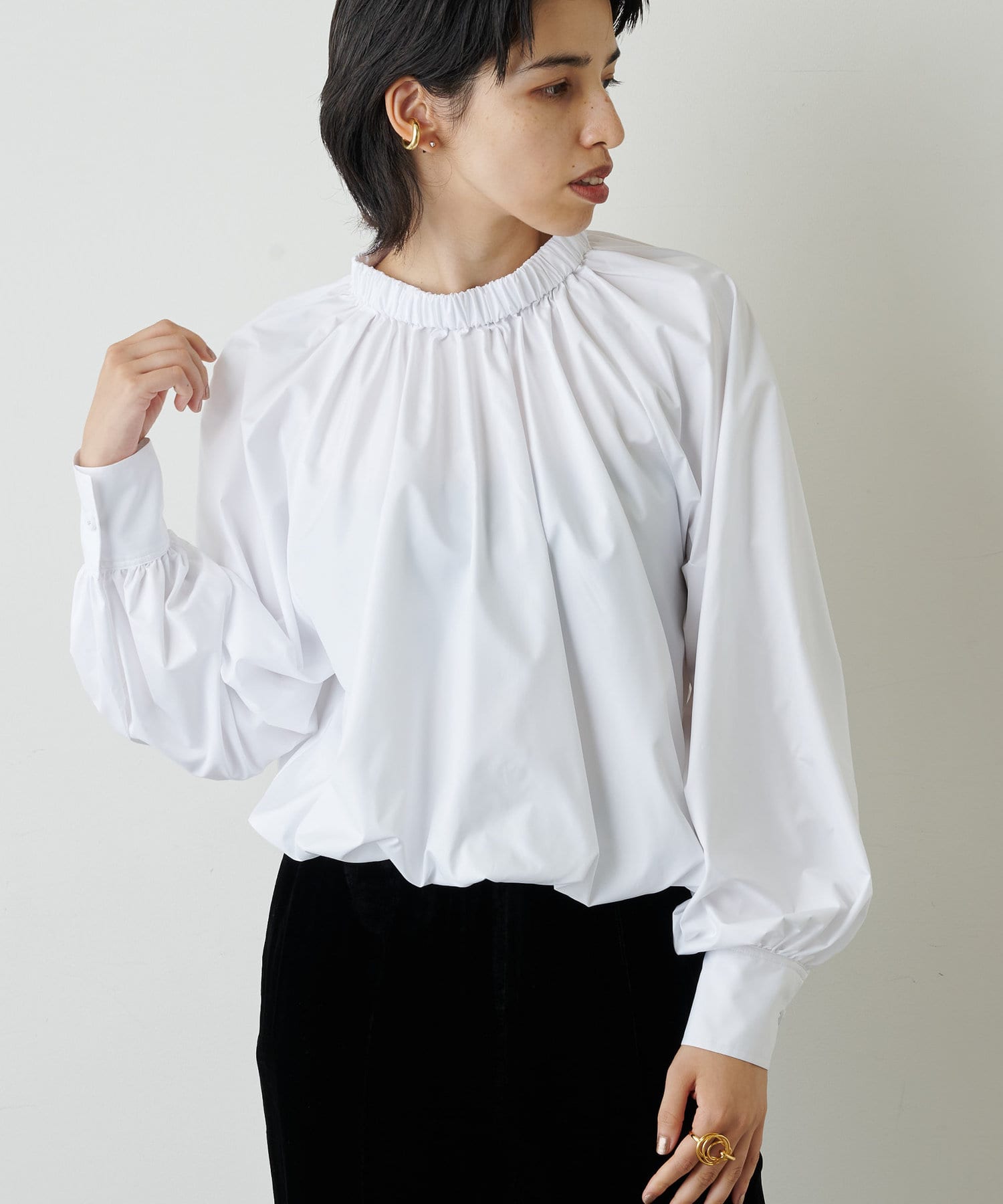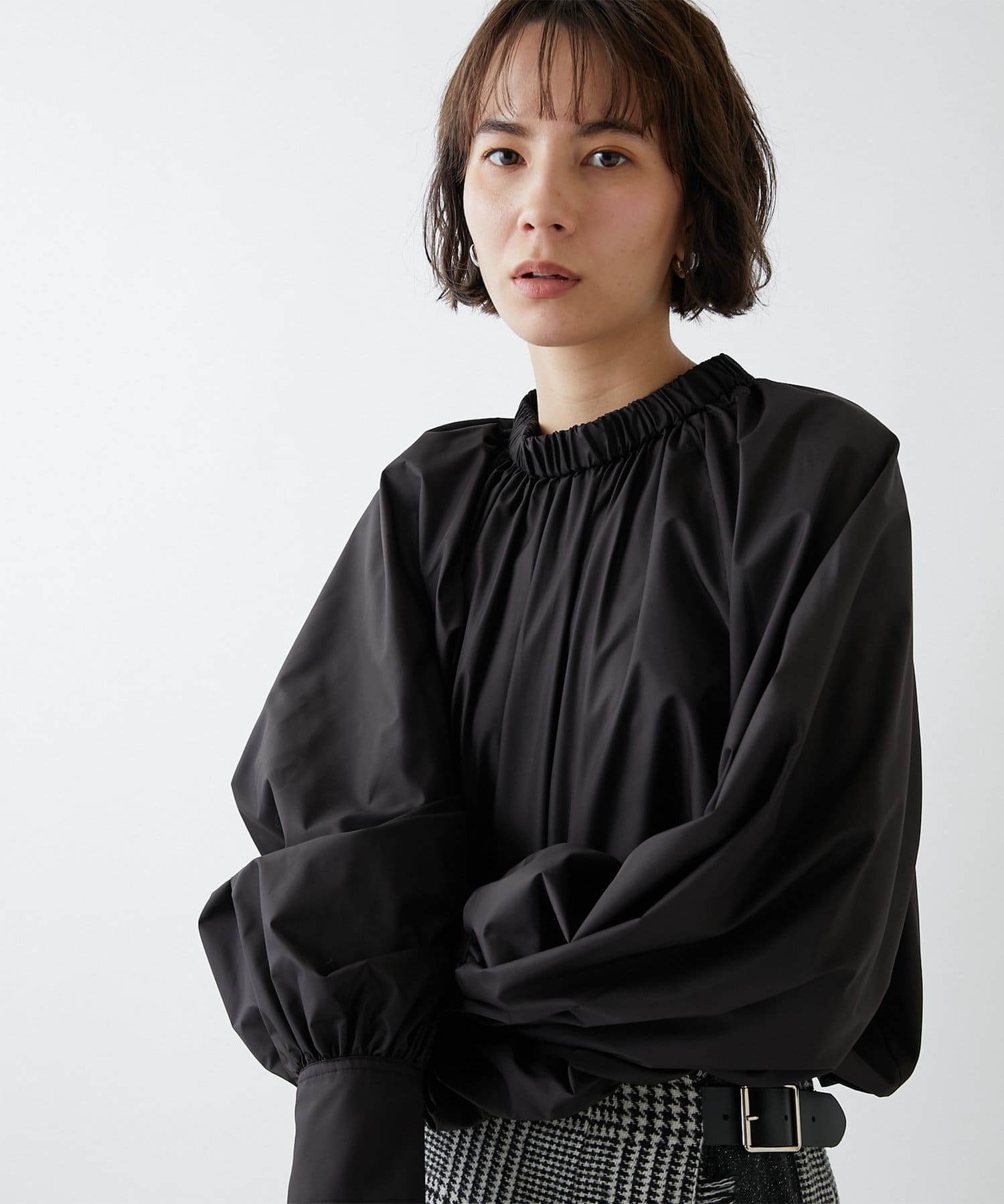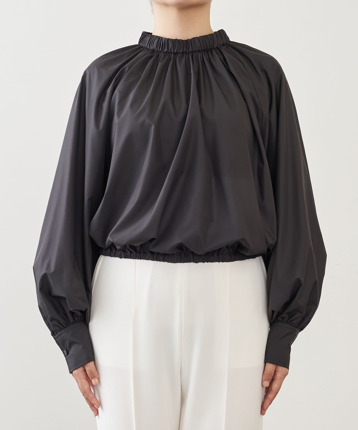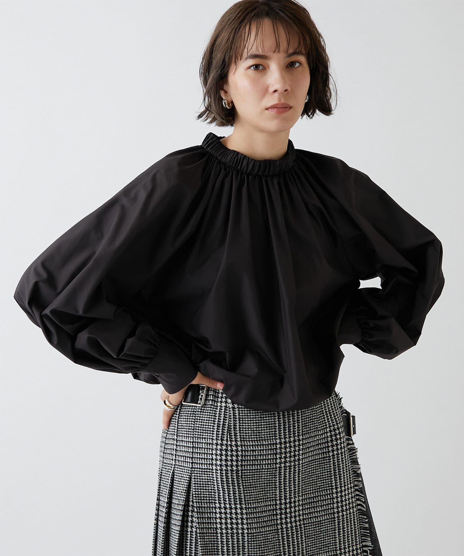 ■贅沢にギャザーを寄せたシルエットが印象的なブラウス。