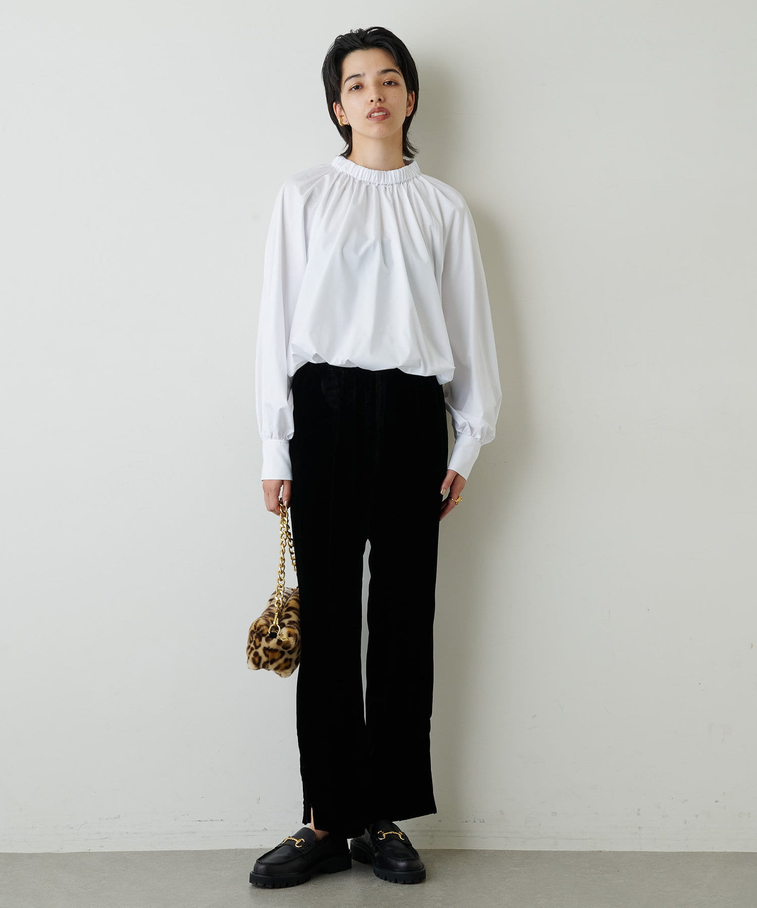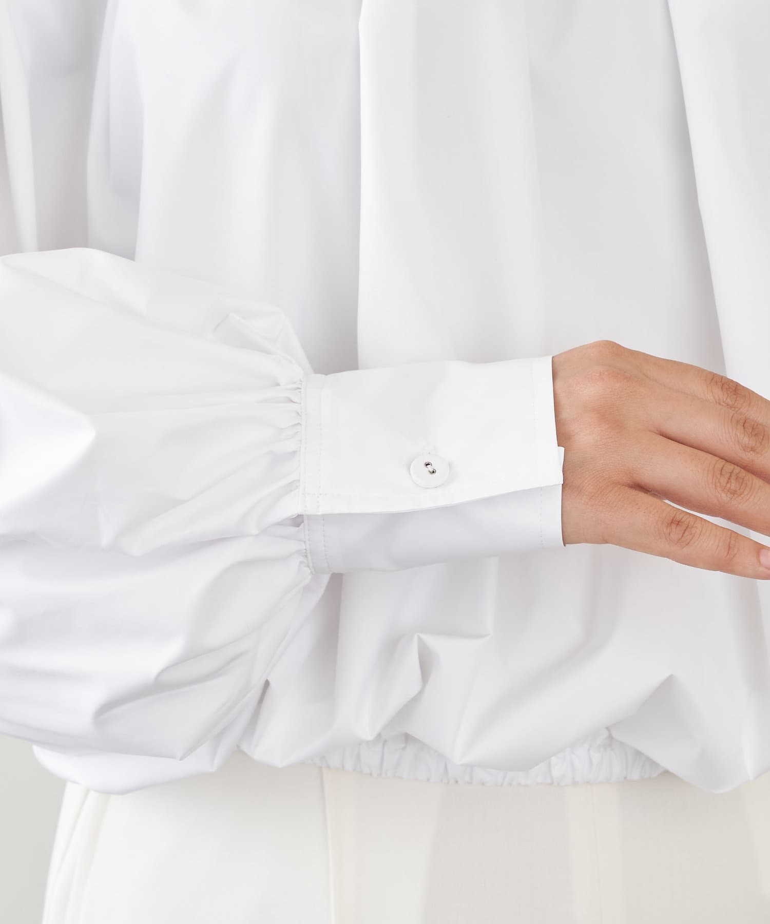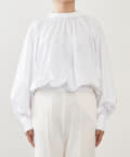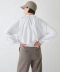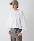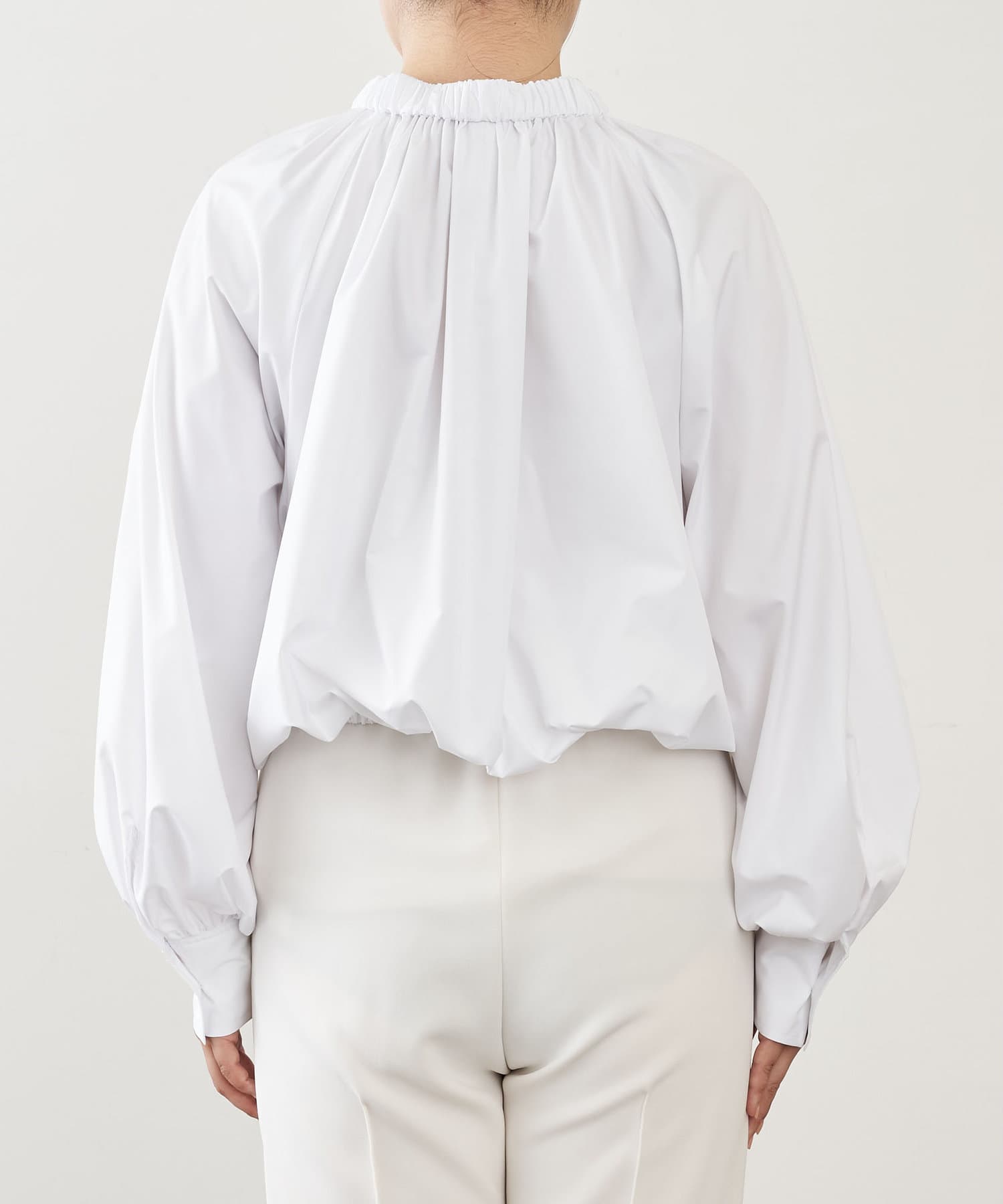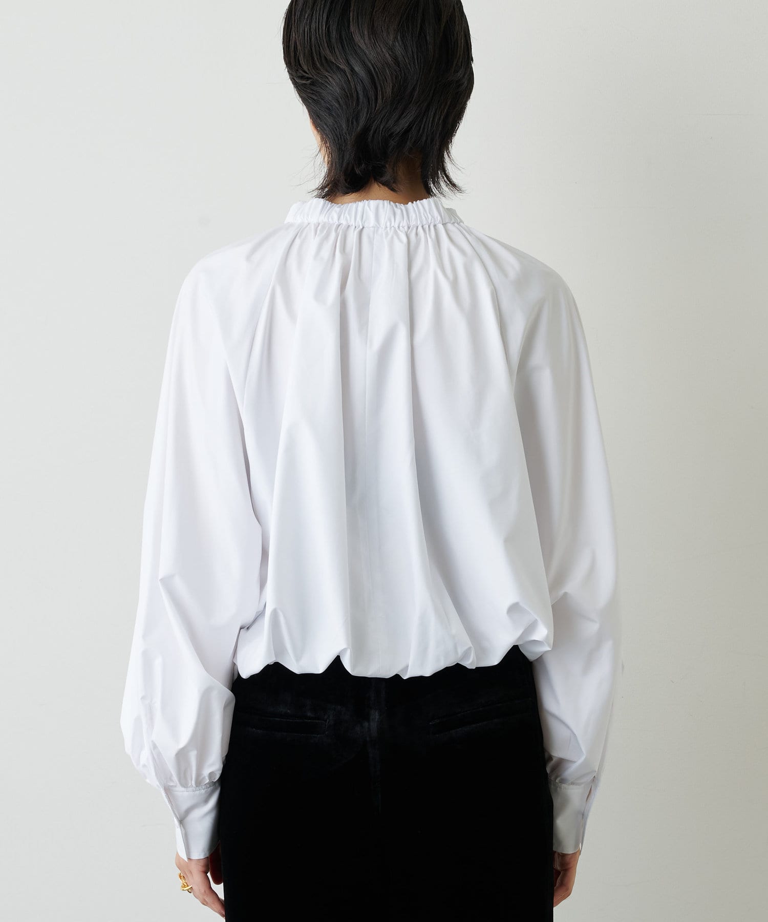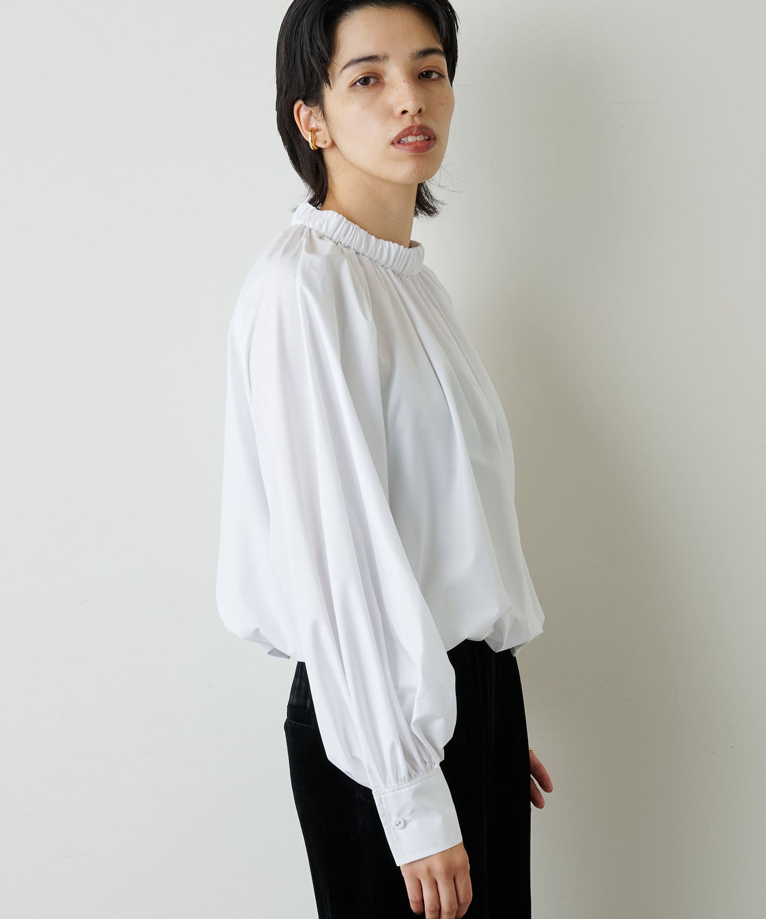 ■贅沢にギャザーを寄せたシルエットが印象的なブラウス。