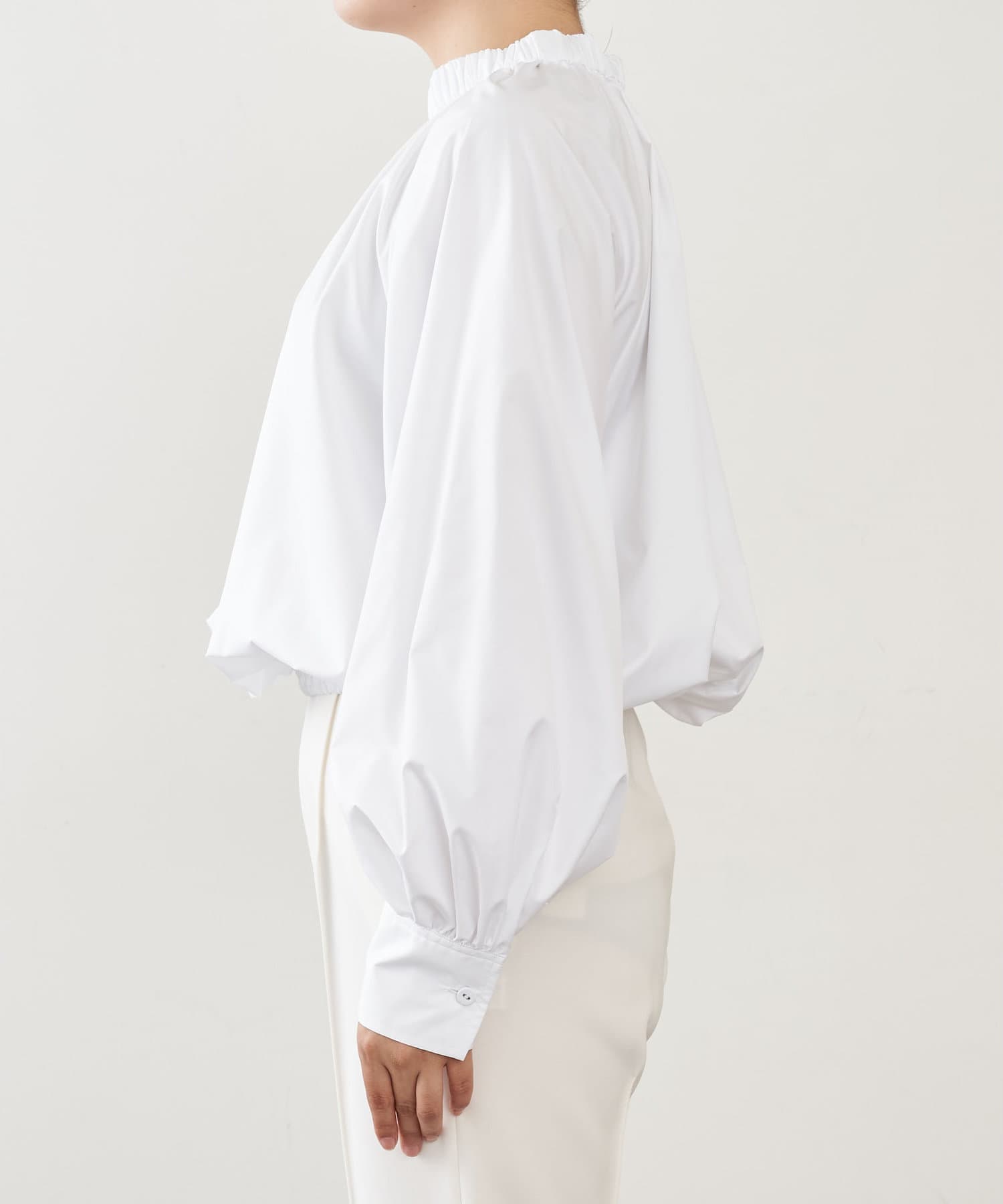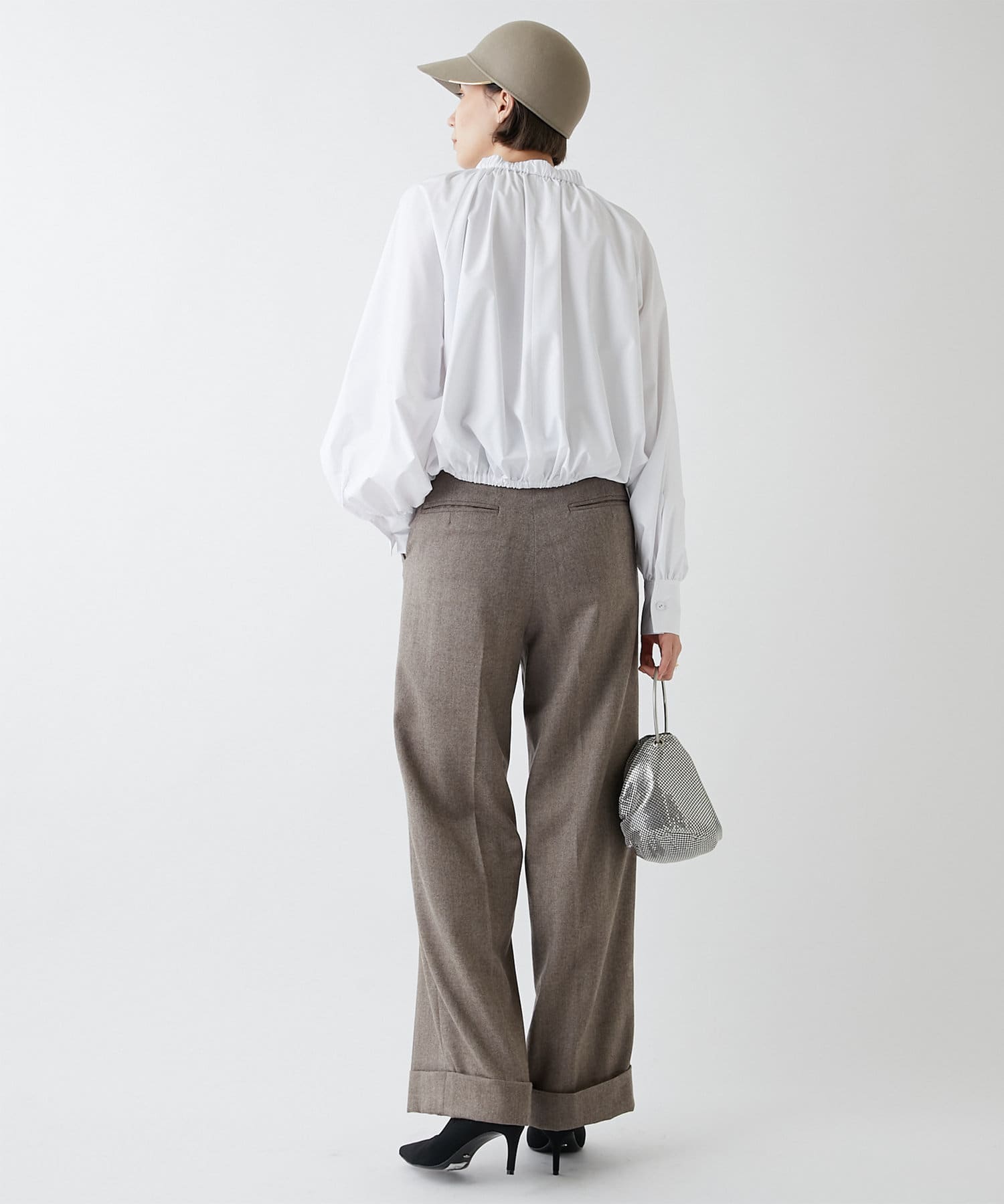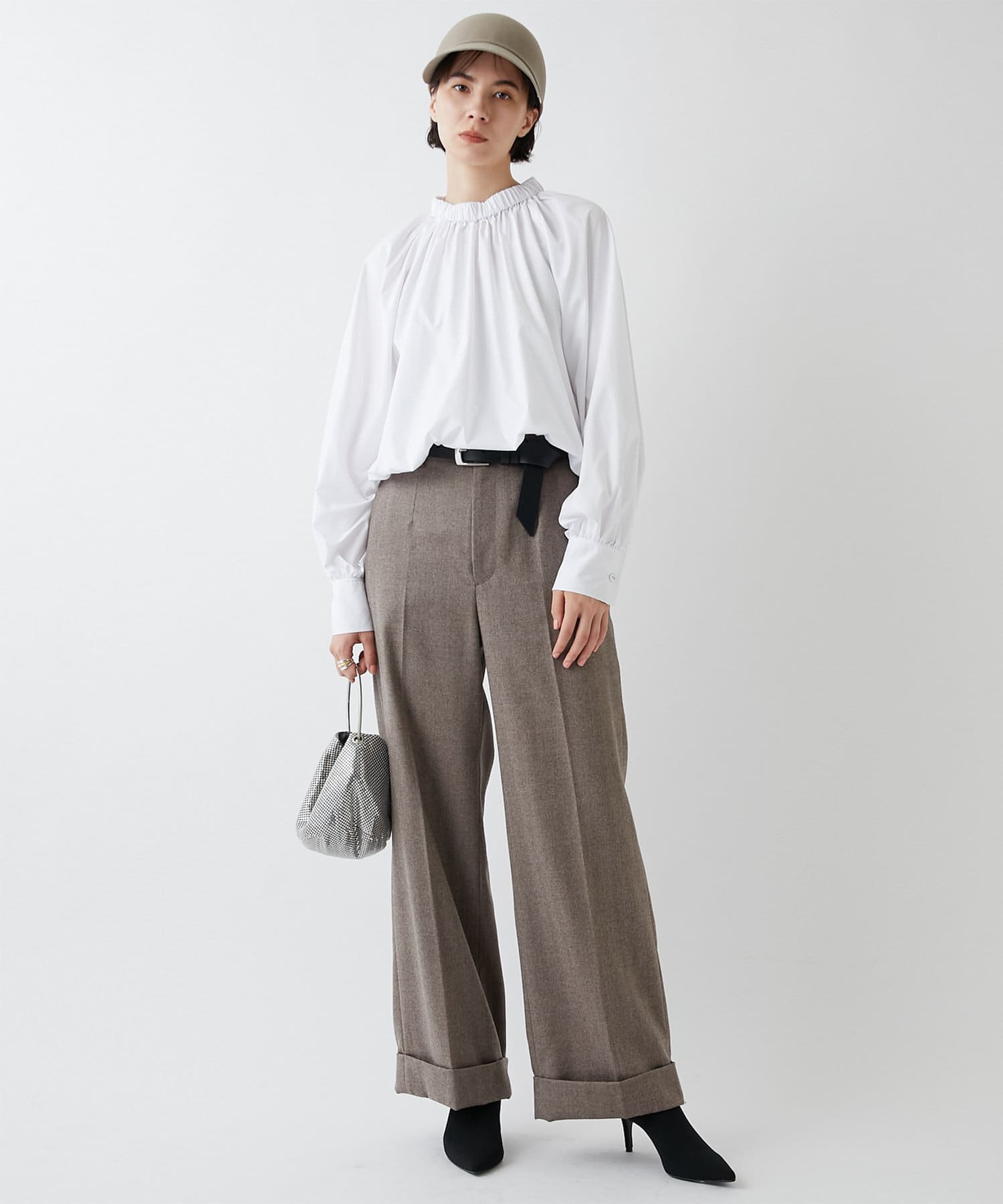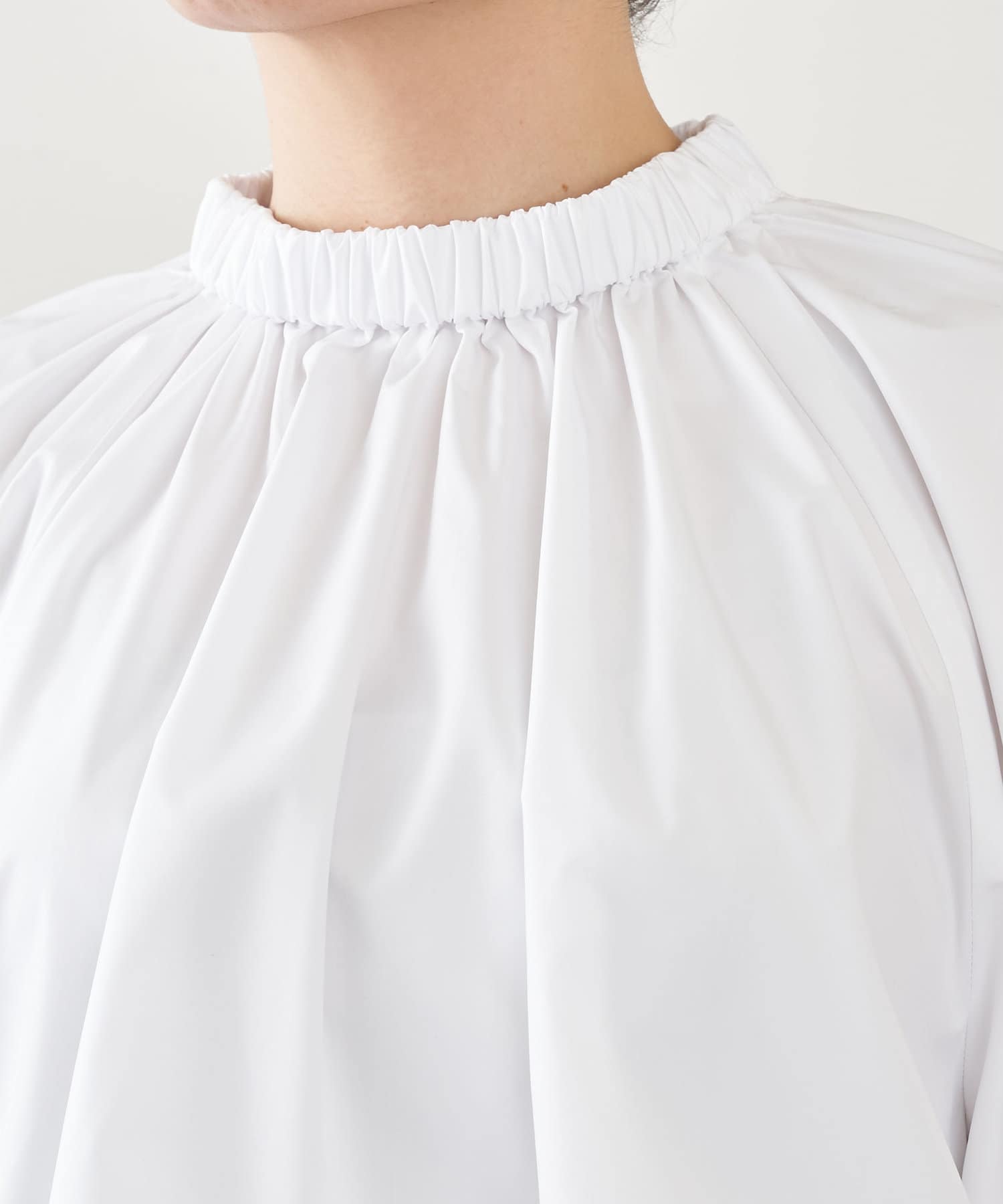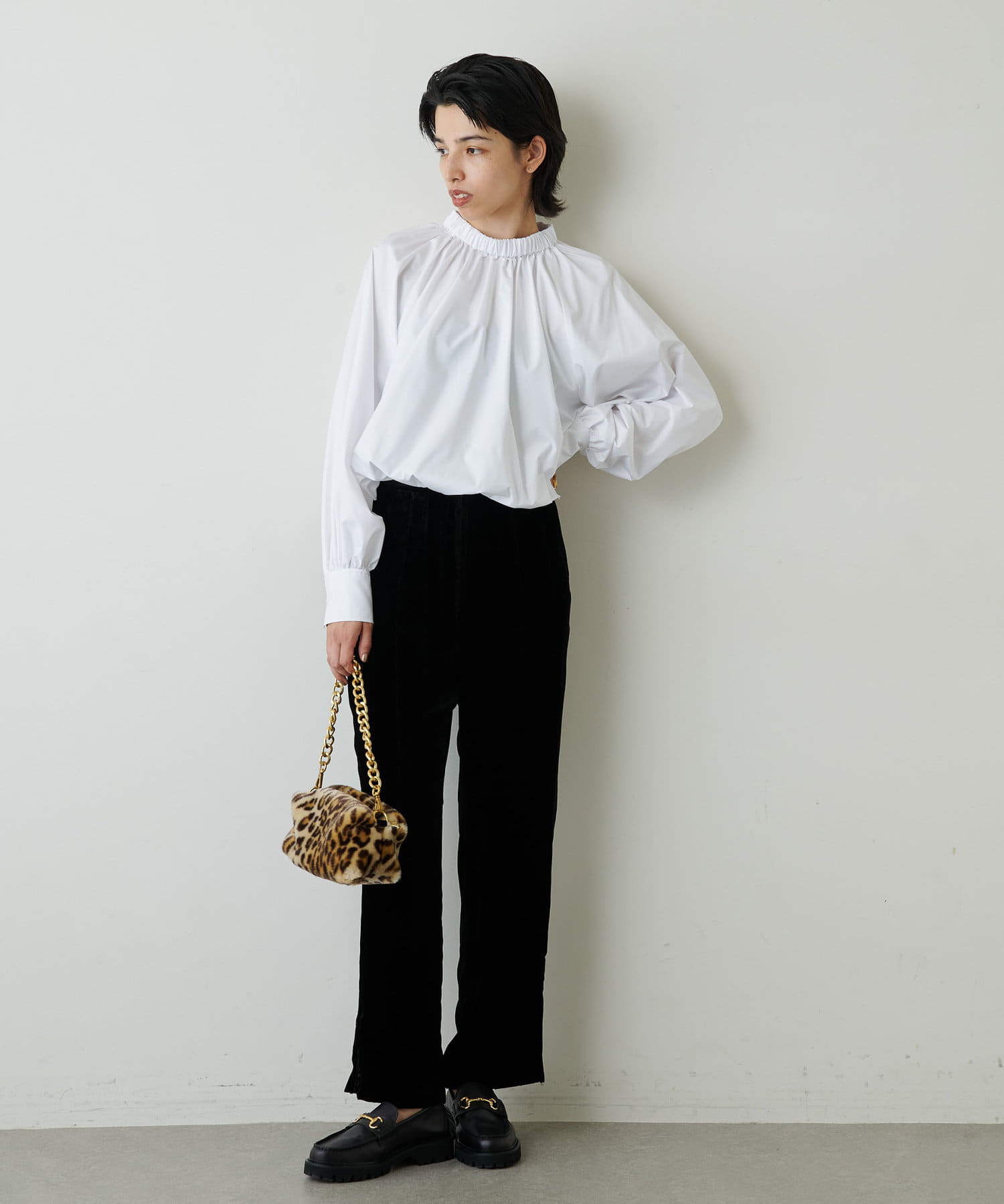 ■贅沢にギャザーを寄せたシルエットが印象的なブラウス。