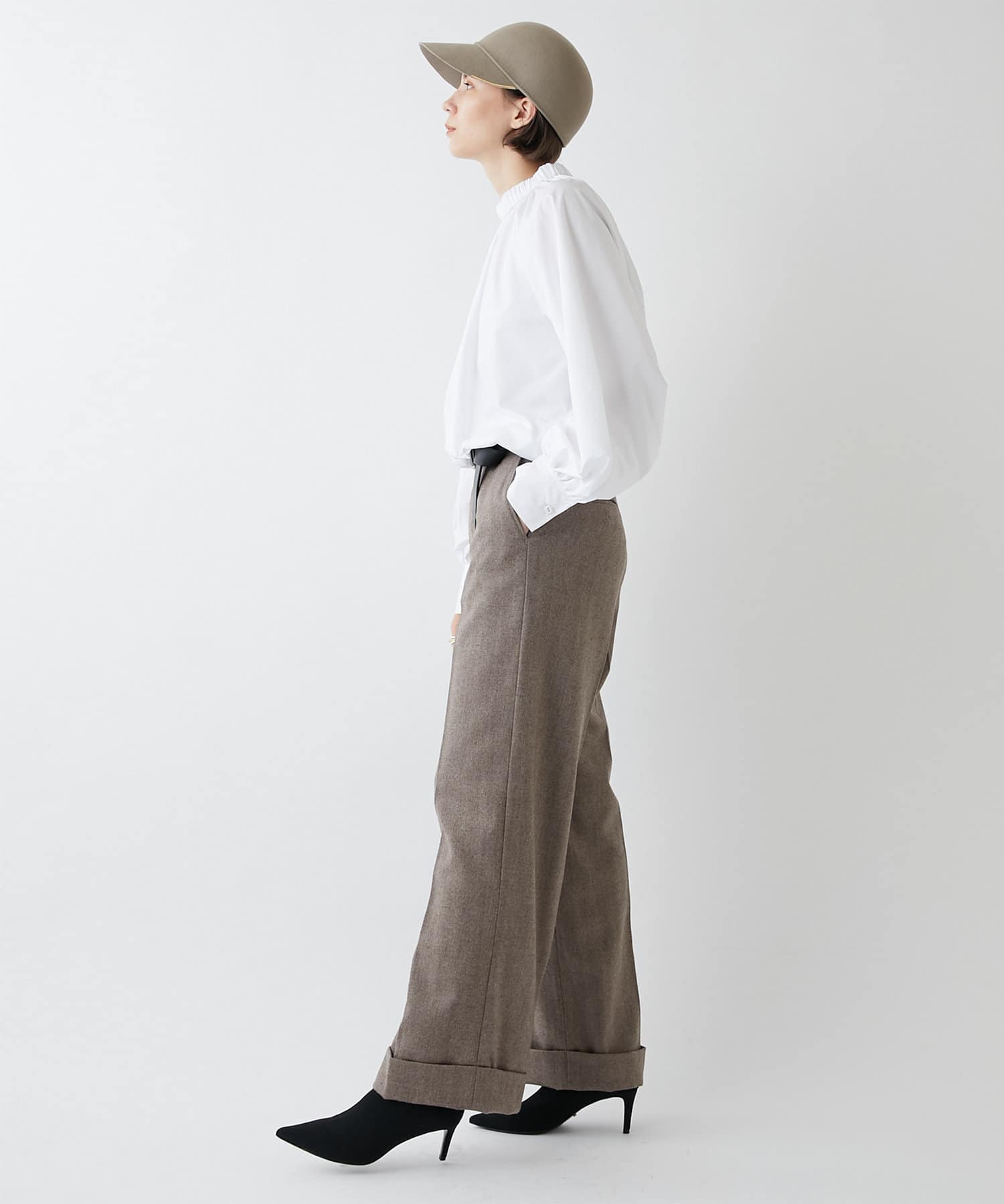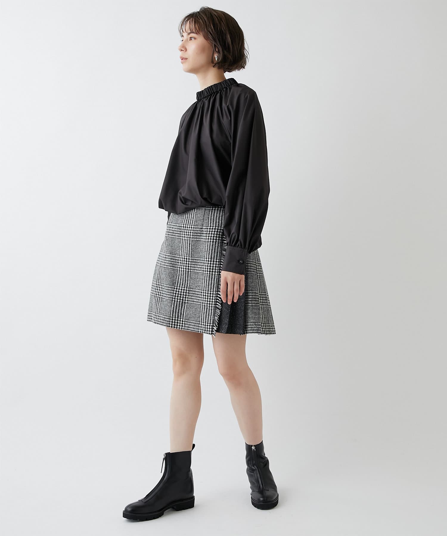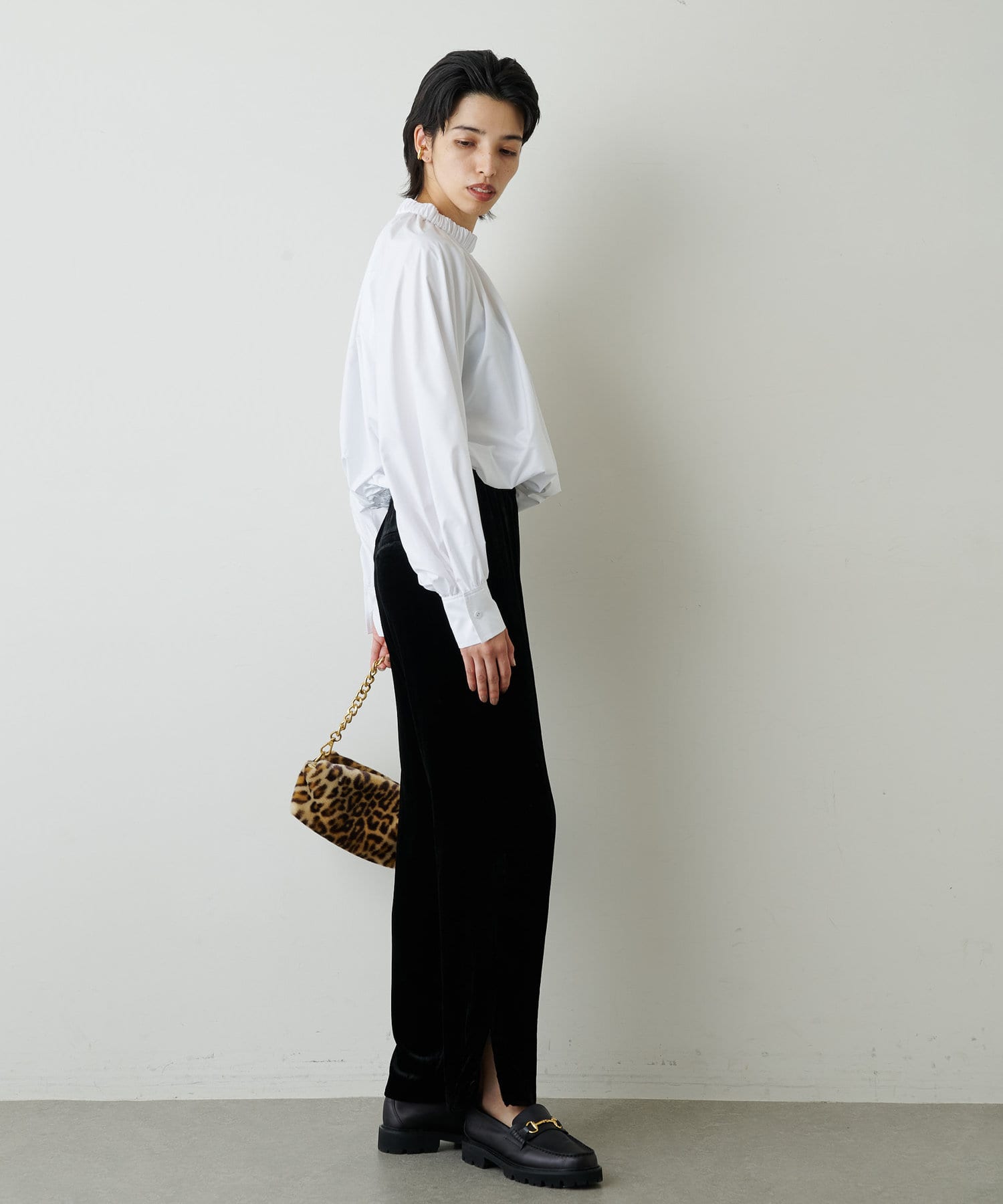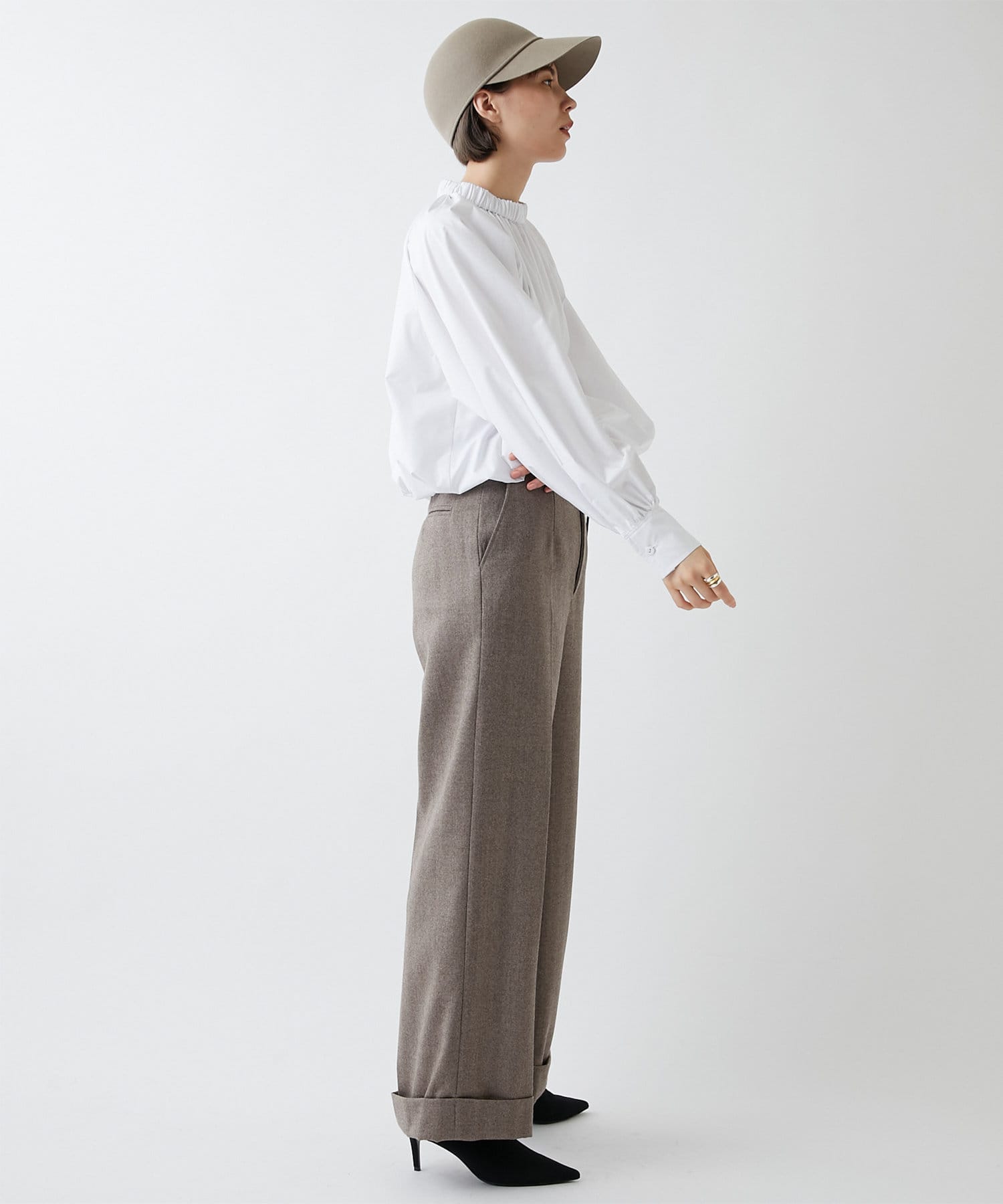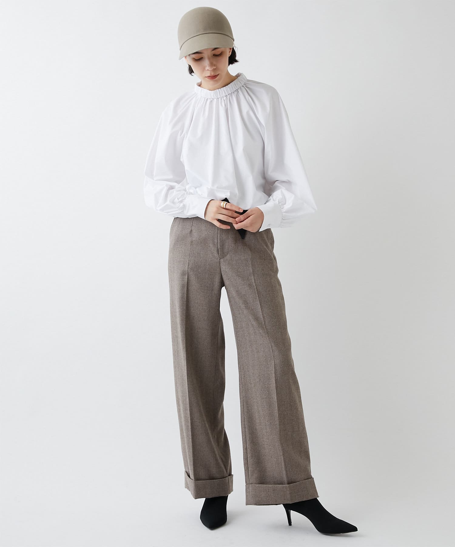 ■贅沢にギャザーを寄せたシルエットが印象的なブラウス。