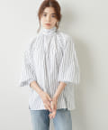 ホワイト:ドルマンデザインが映える、ホワイトベースのストライプ柄。