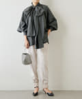 ■たっぷりとしたボータイデザインが目を惹くデザインブラウス。