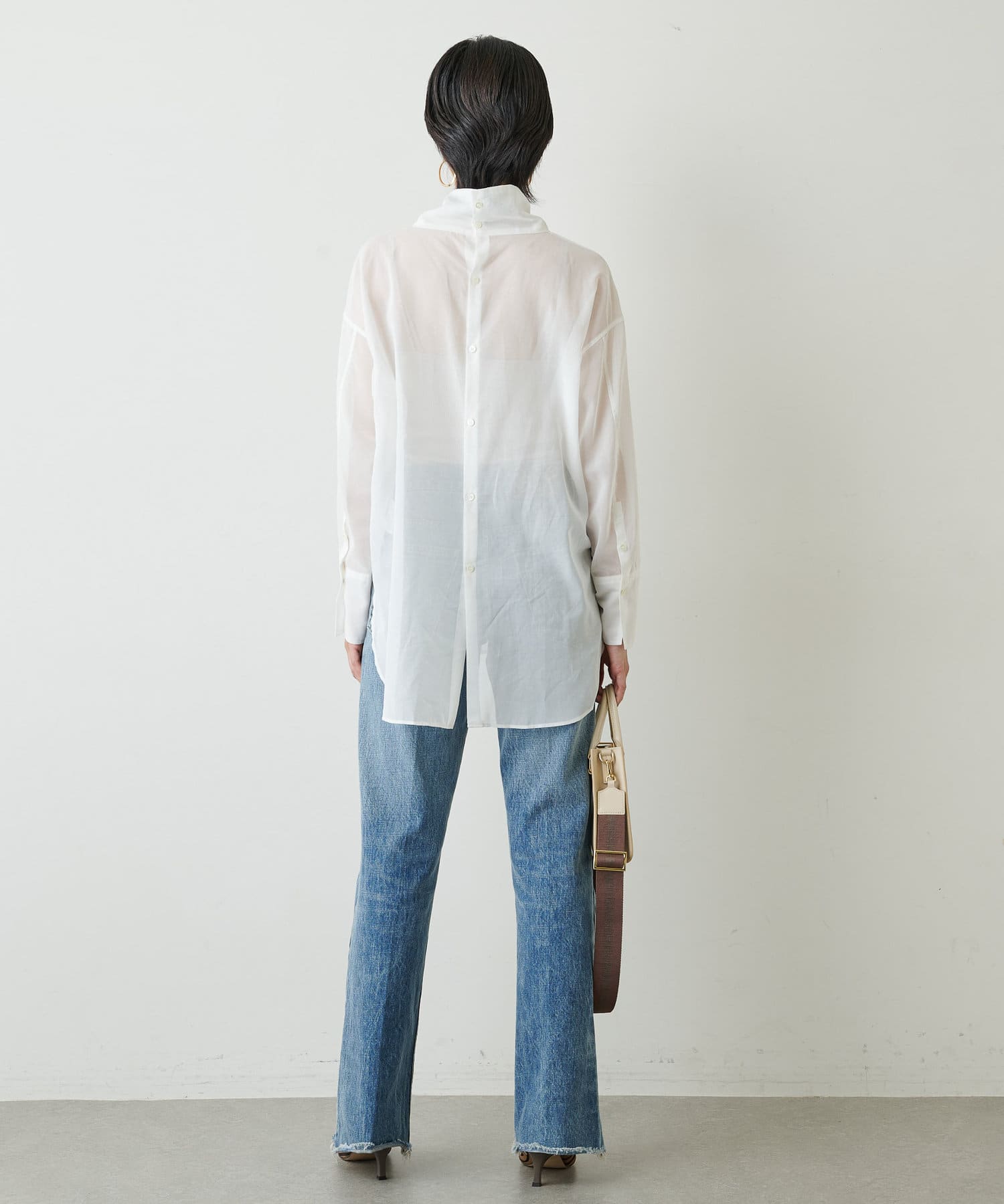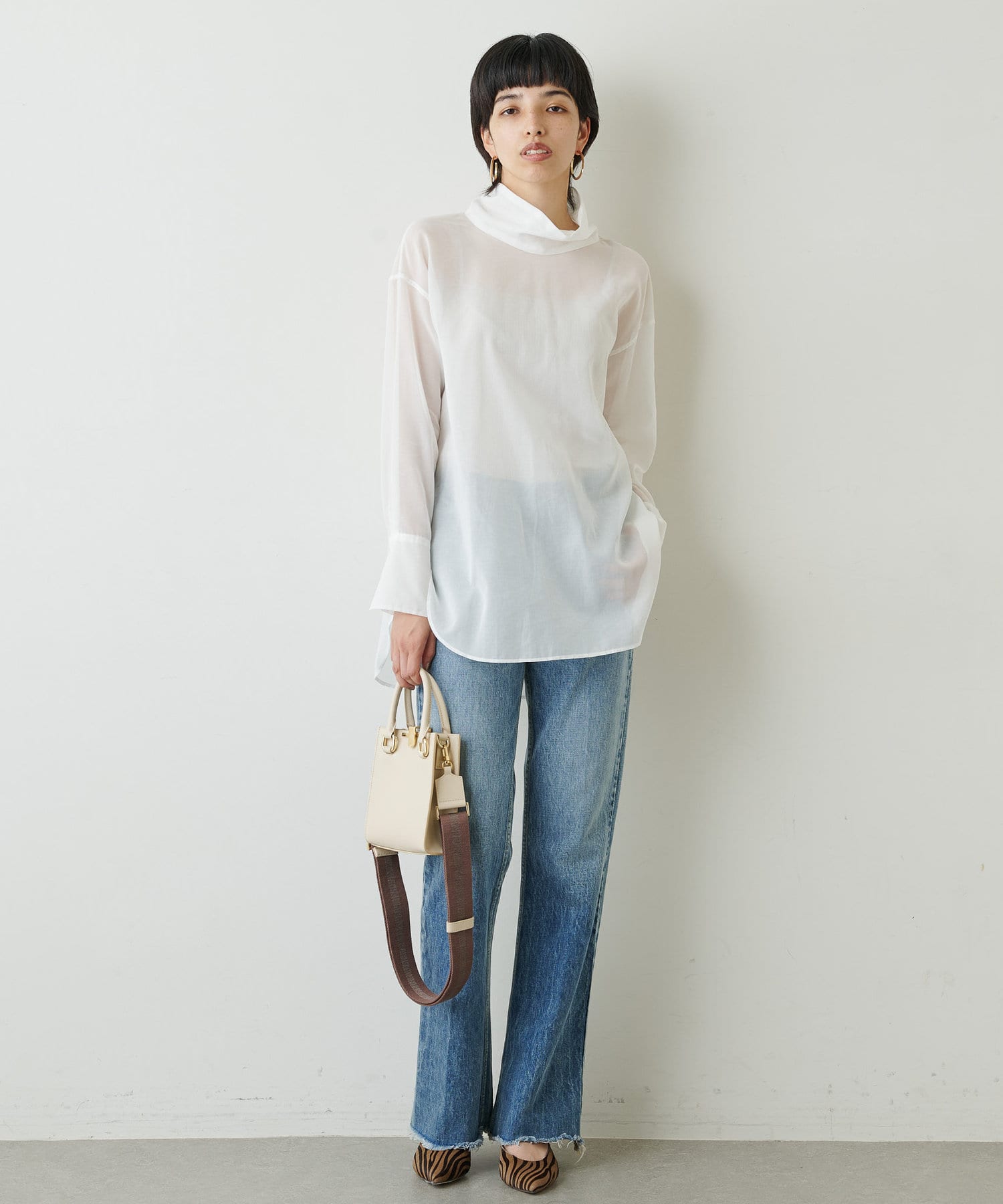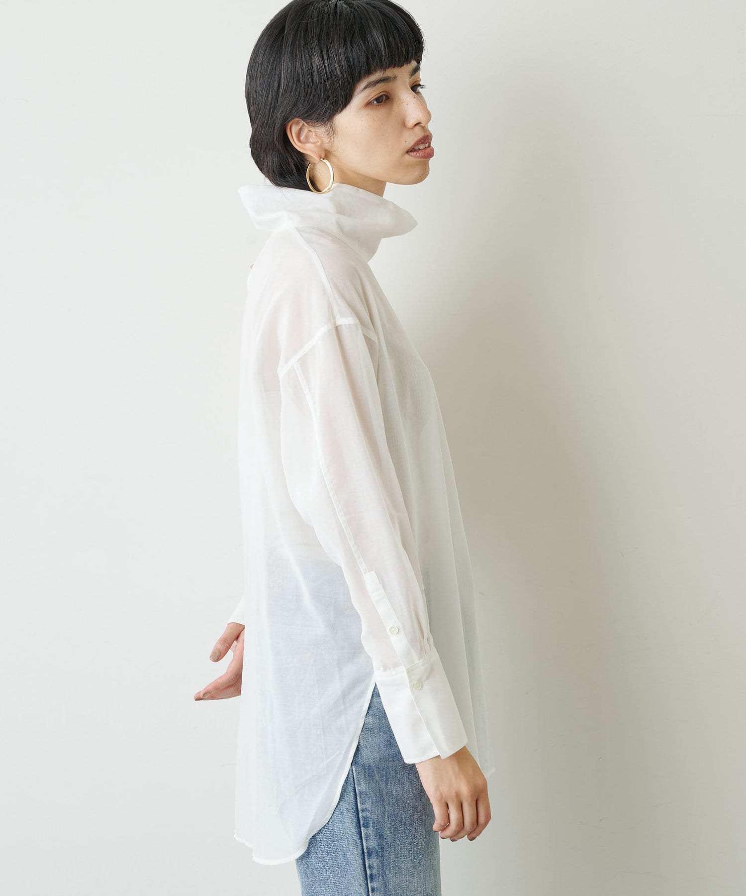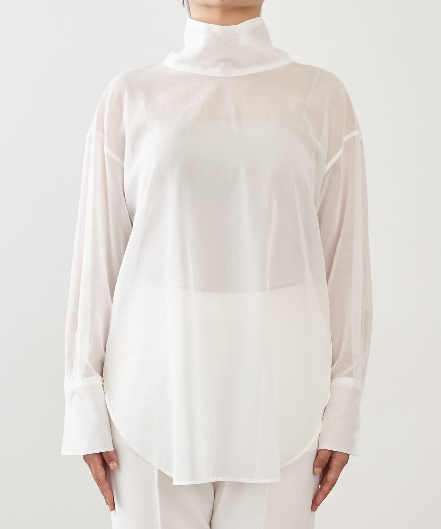 ■オーガンジー素材の透け感が上品なハイネックプルオーバー。