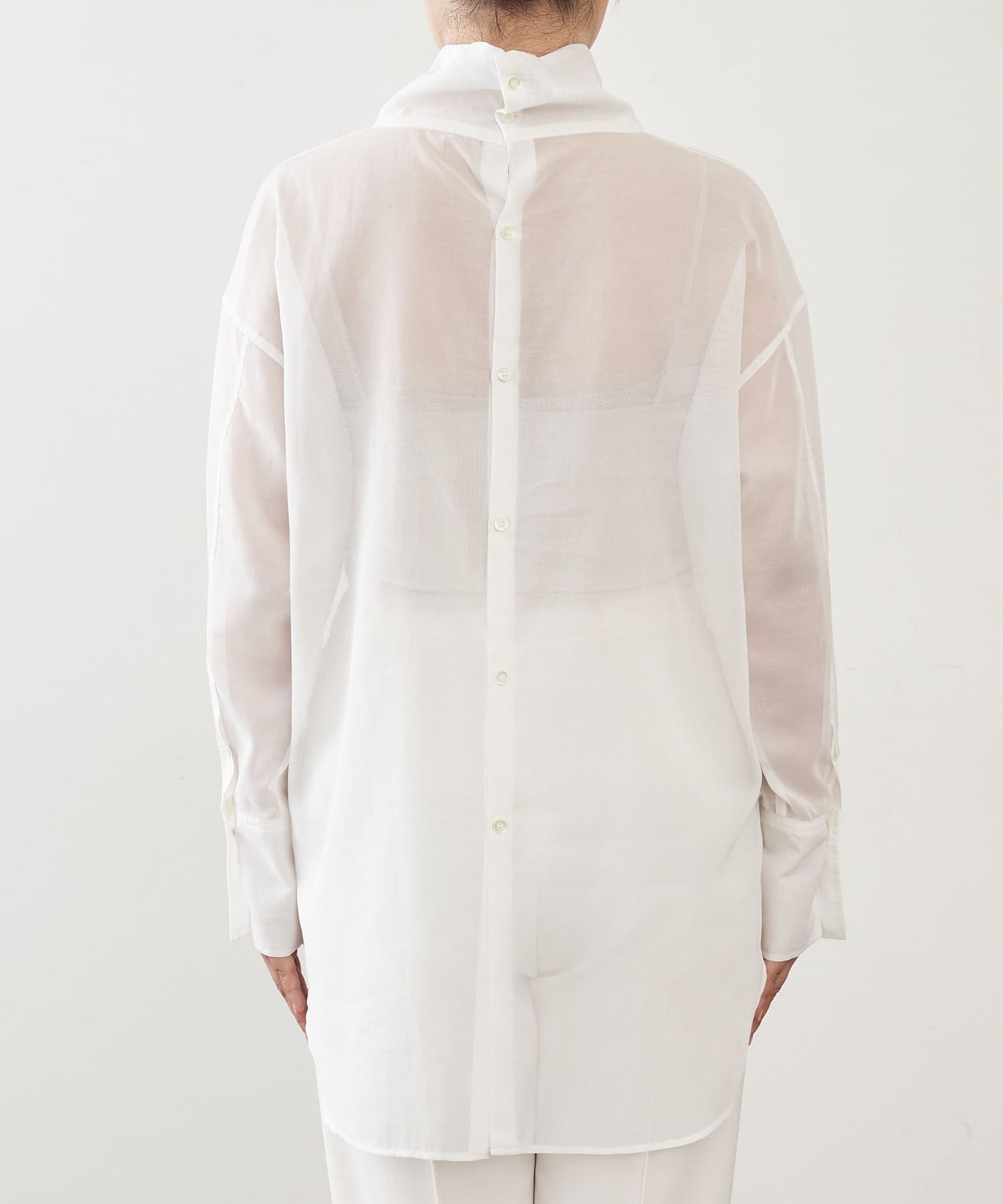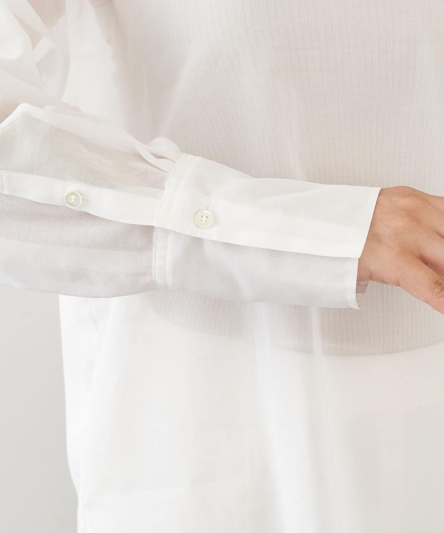 ■繊細なシアー感とハリ感のある風合いがシンプルながらも存在感のある一着。