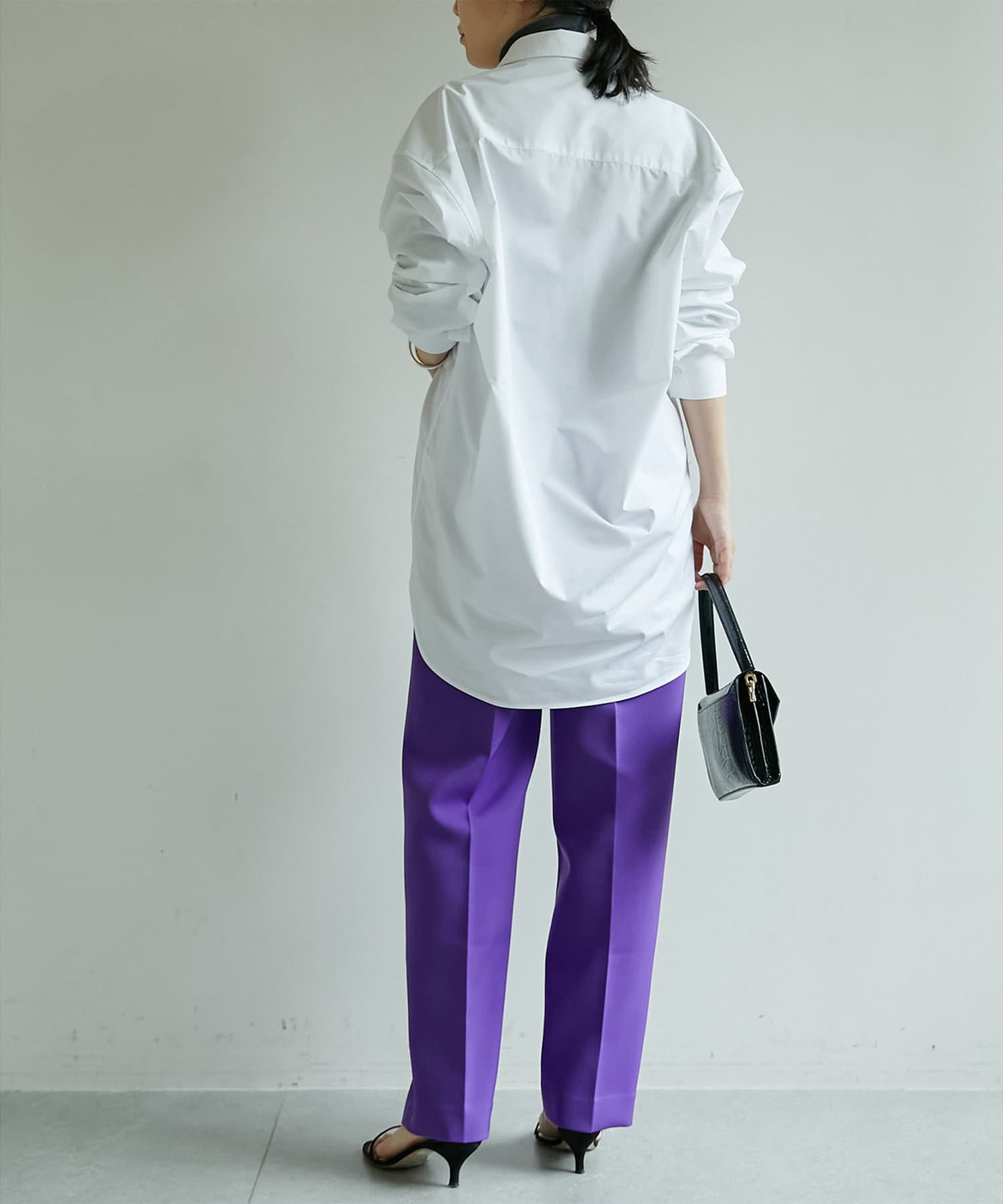 ■前身頃はすっきりと、後ろ身頃には程よくボリュームを持たせることで、抜きを作らなくても様になるシルエット。