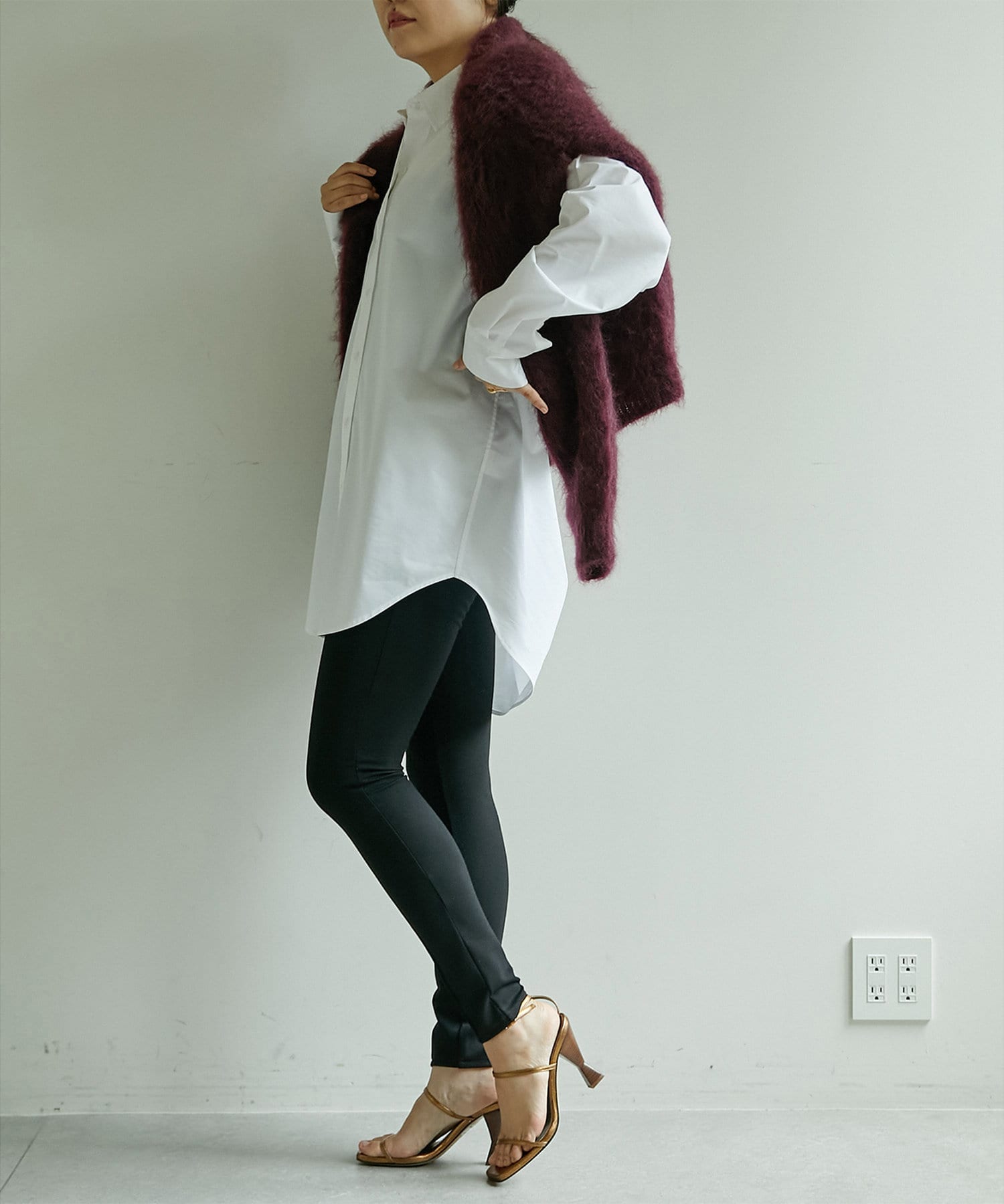 シルエットが素敵だなと思っていましたが、着用した際の後ろ姿が絶妙でした。襟を後ろに下げずとも、襟抜きした様な後ろ姿で、前ボタンの位置も計算されており、とにかく感動でした。羽織りだったり、ボタンを閉めたりと色々な着方が出来るので、活躍すると思います!