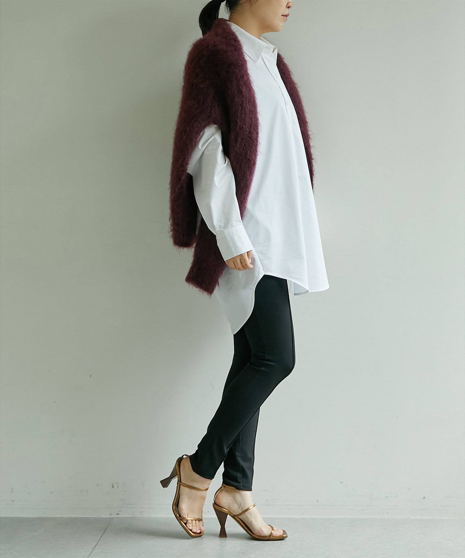 白シャツはいつも常備してますが、こちらの商品は重ね着した時の裾の長さがとてもこなれ見えするところがステキです⭐︎