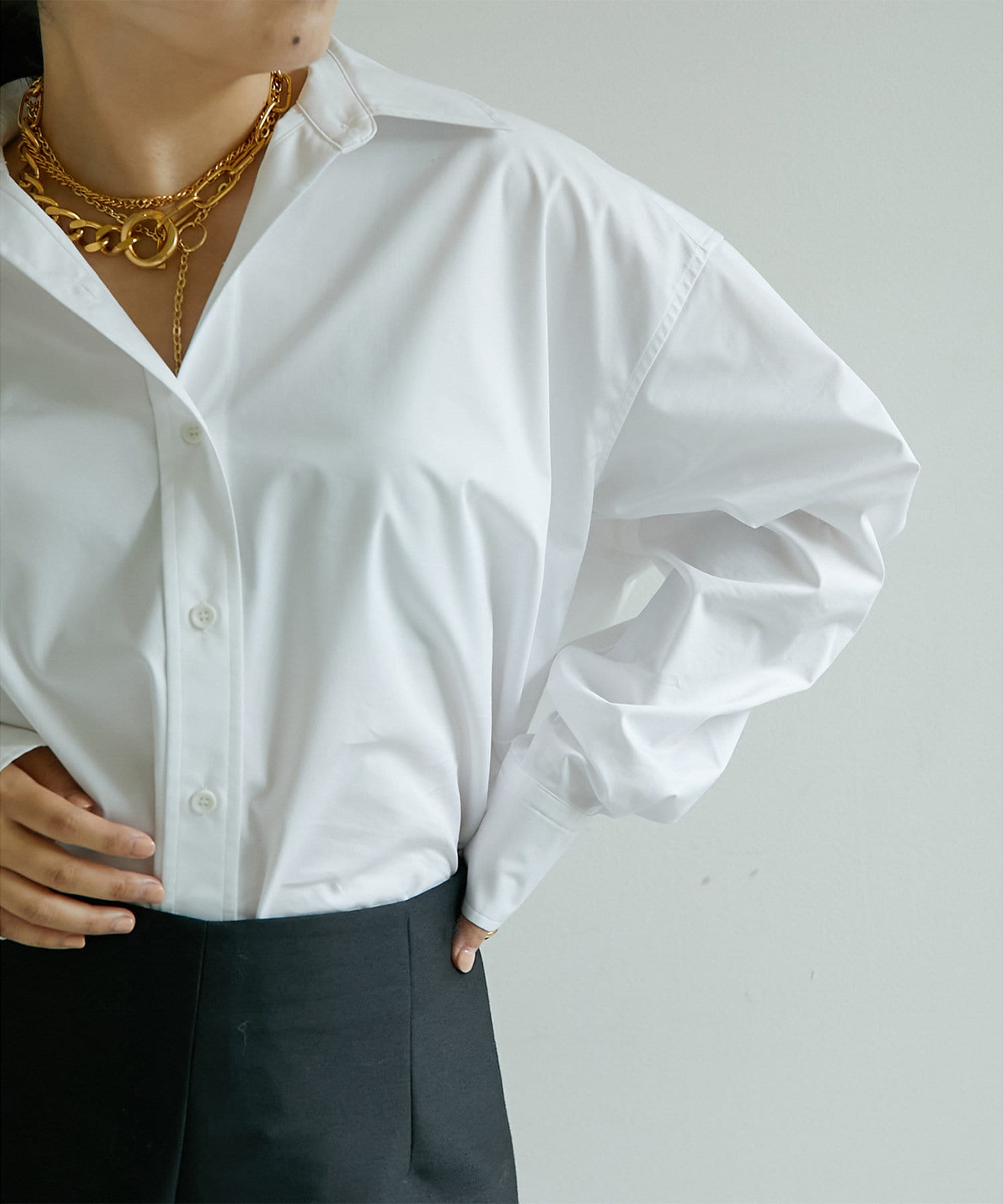 ■モード感漂うフォルムが特徴的なドレスシャツ。