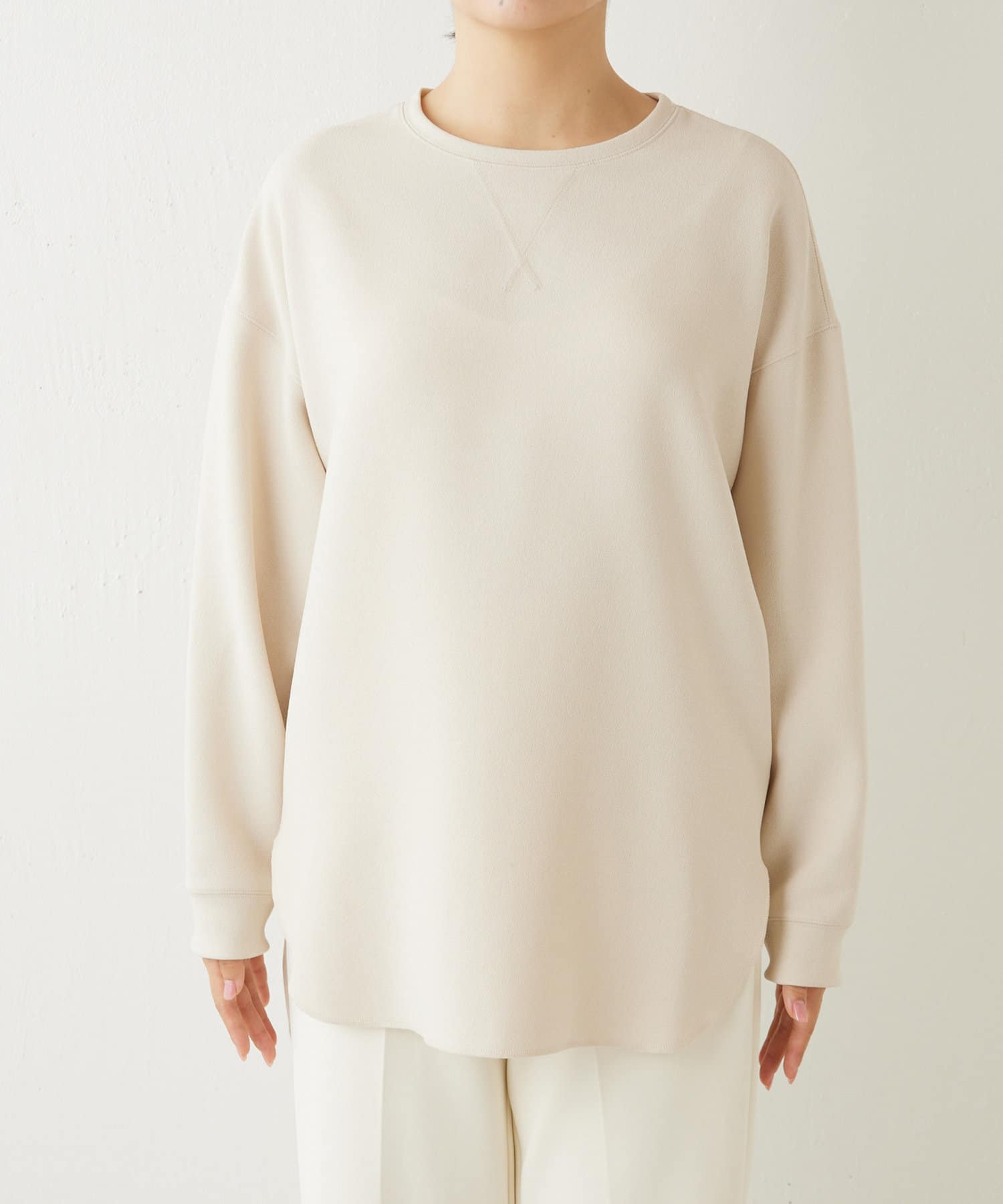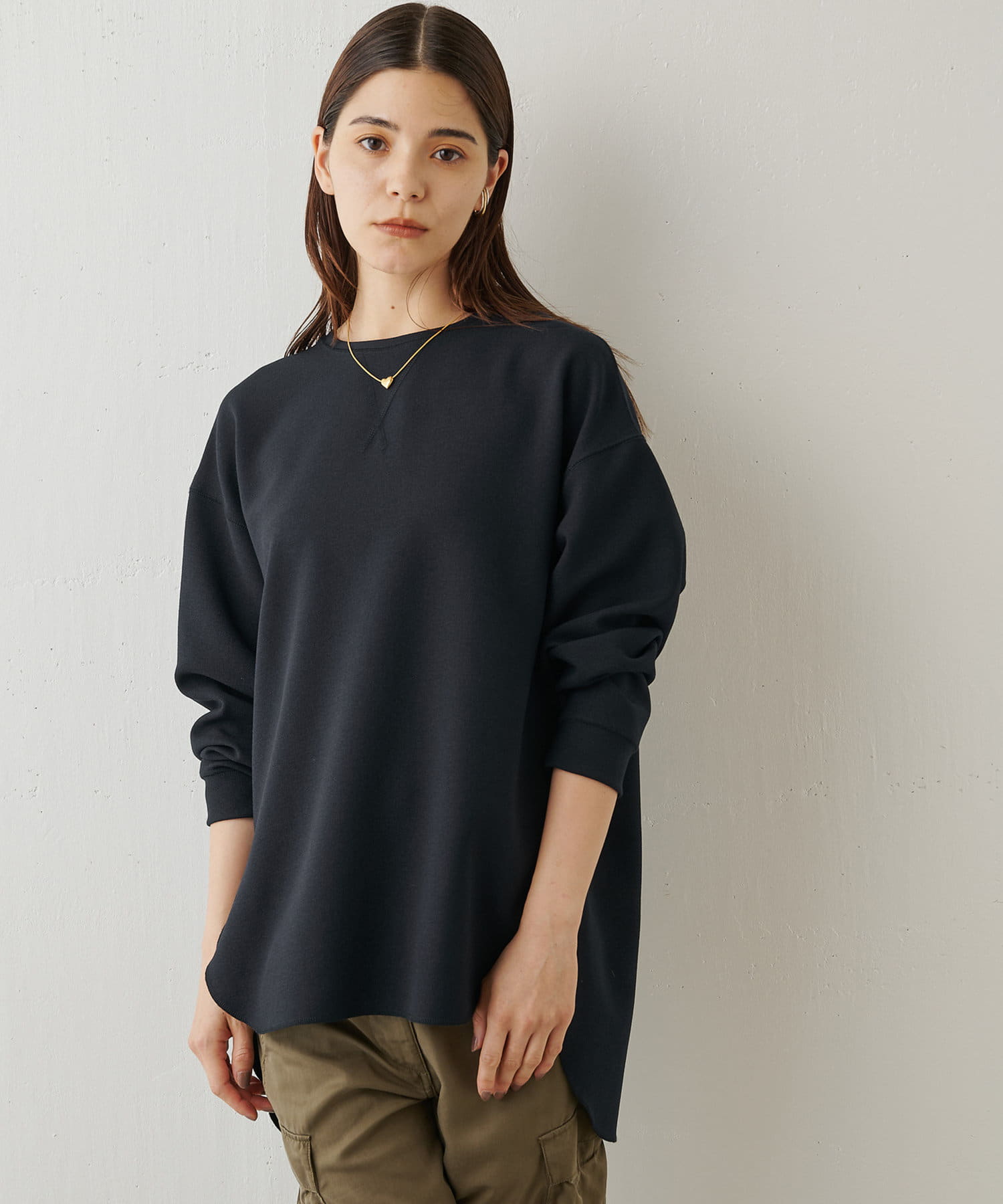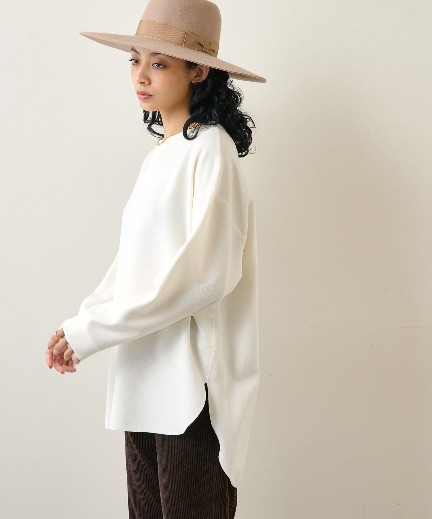 生地の厚さも絶妙で、柔らかくて動きやすいのに体型も拾わず後ろ姿もスッキリ綺麗!私の身長で後ろはお尻が隠れる丈です。スカート、パンツどちらも合いそう。肩幅が広いのですが、全く問題なくむしろスッキリ見えます。1枚でも、重ね着のインナーとしてもどちらでも使えるのでロングシーズン大活躍間違いなしの予感。試着したらさらに気にいりました。人気の理由がわかります。ホワイトも欲しくなりました。