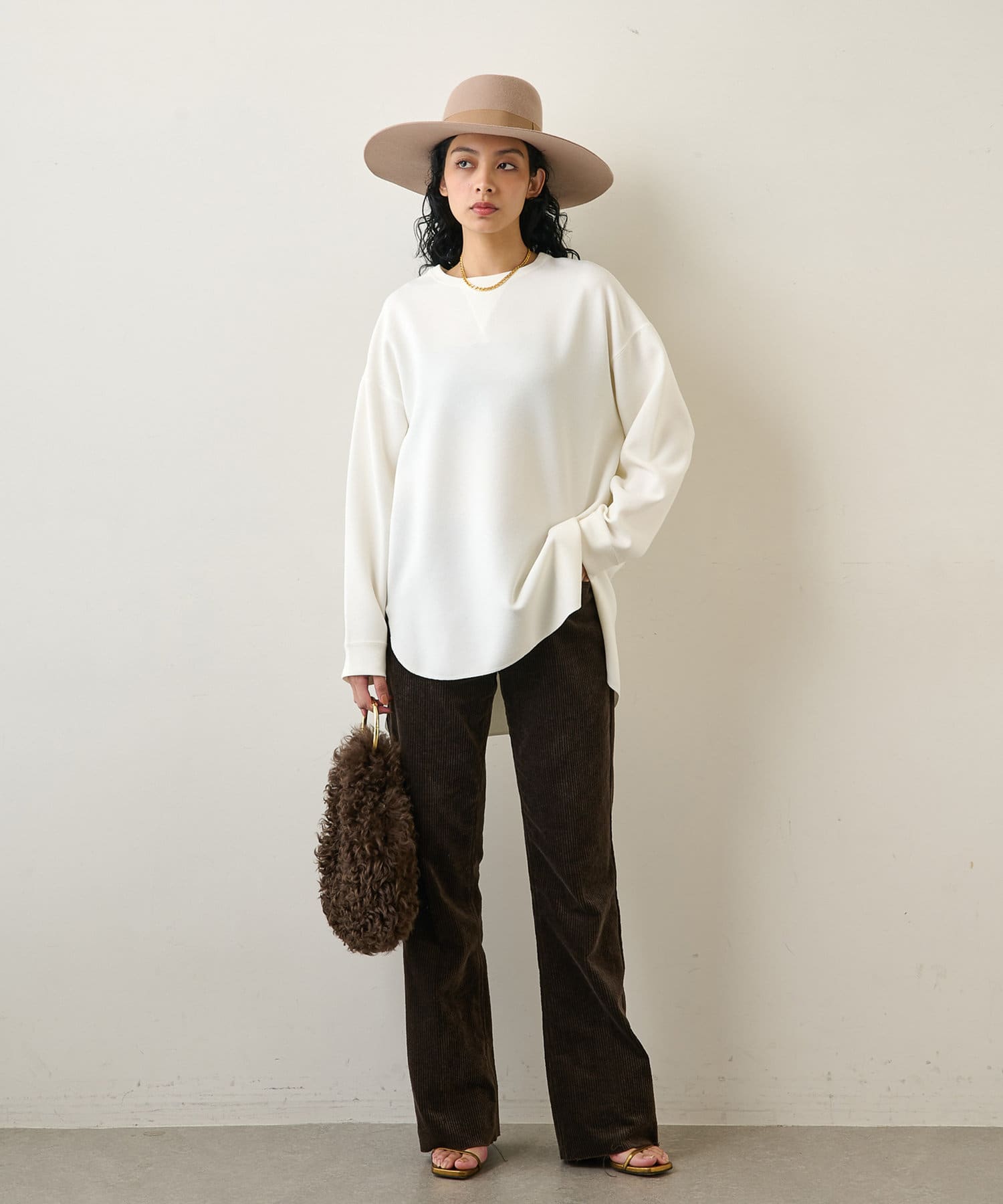 首周りも空き過ぎてないのと丈感も良いのでアウターとの合わせもしやすいです。