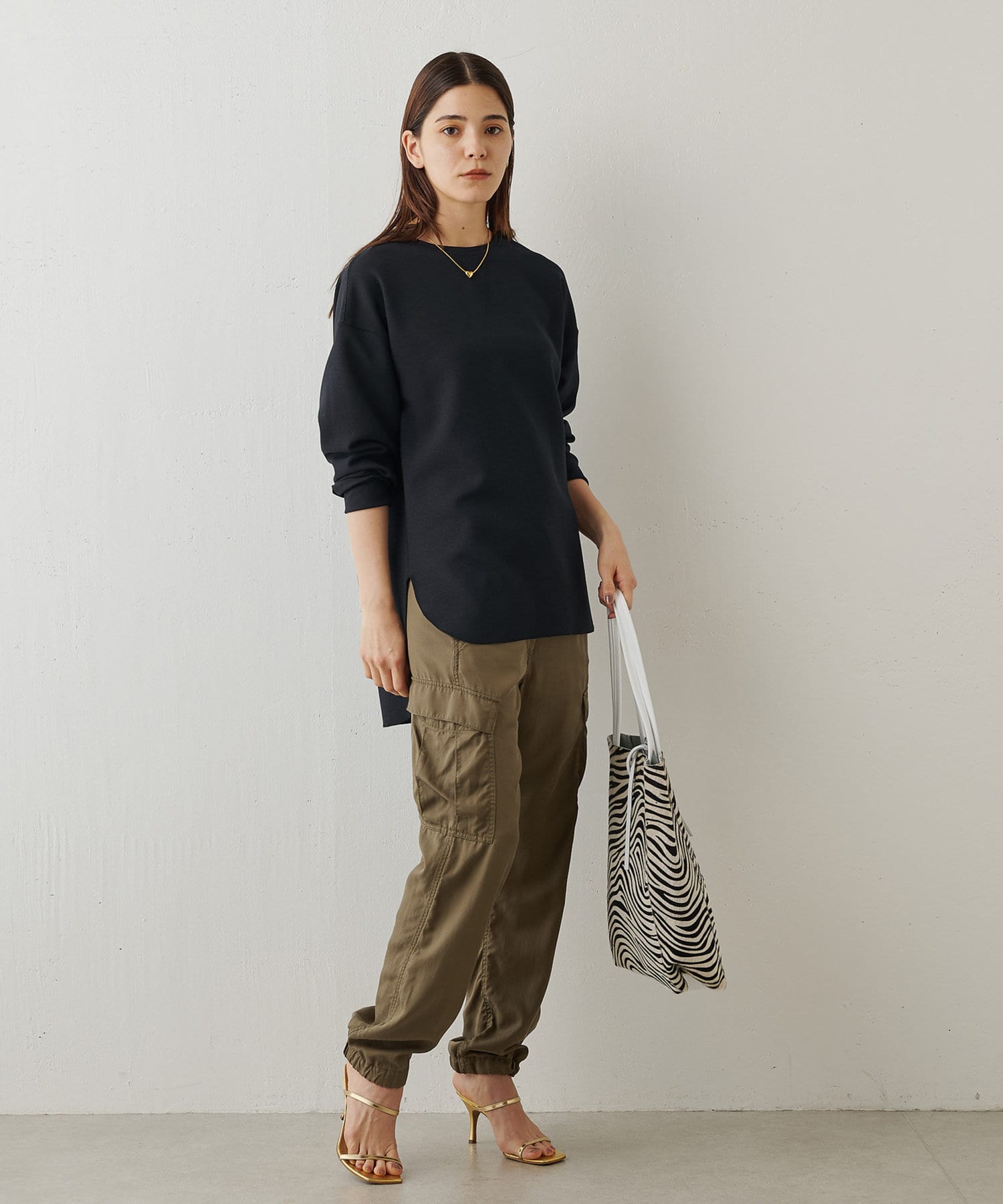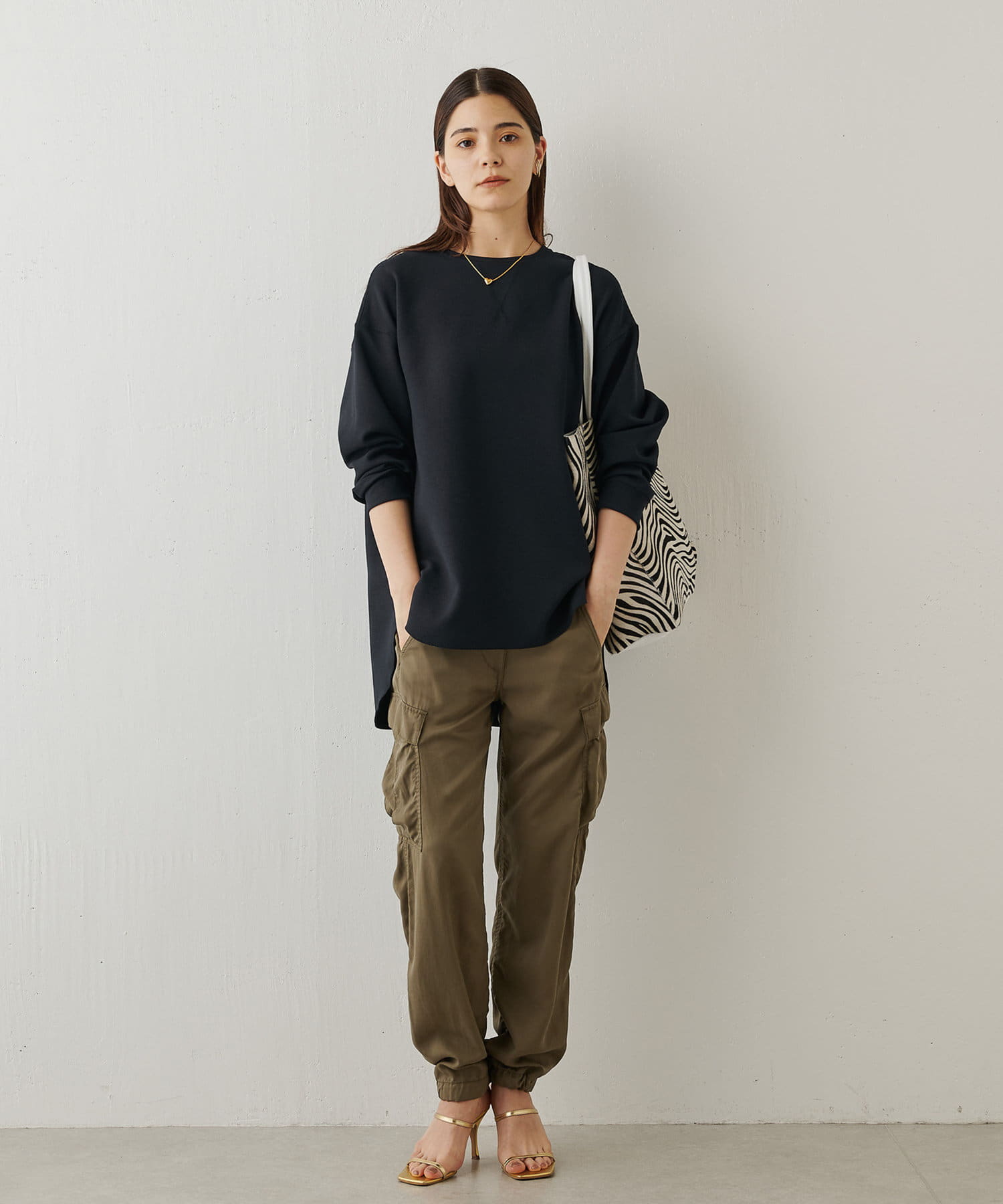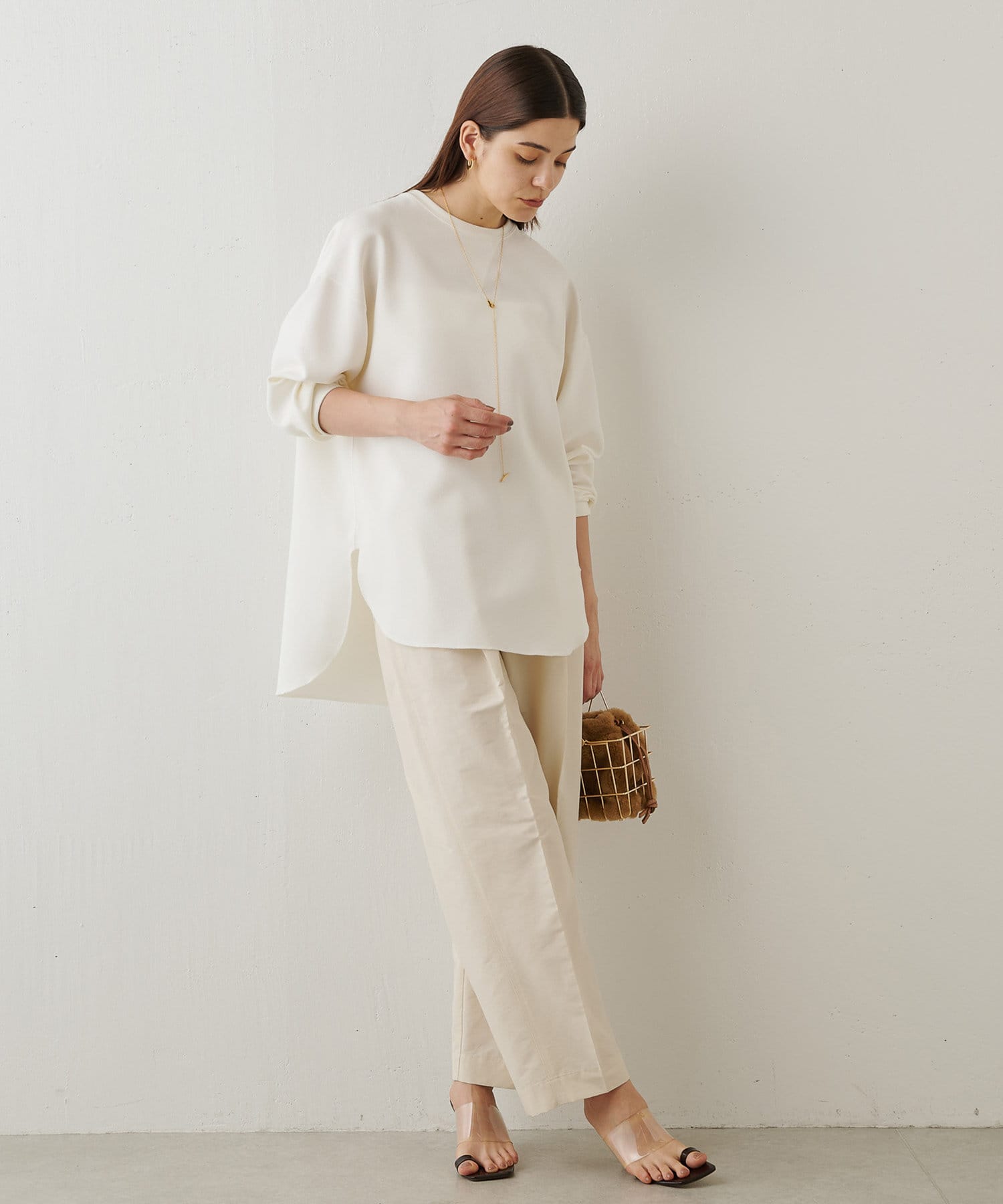 きれいめ素材でトレンドライクに仕立てた、大人のカジュアルトップス