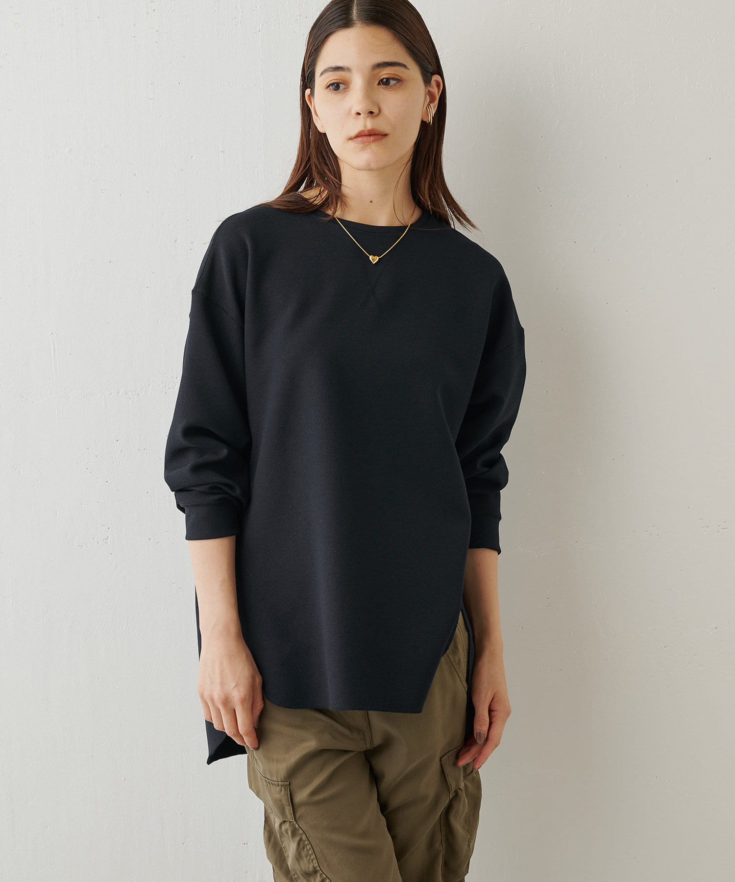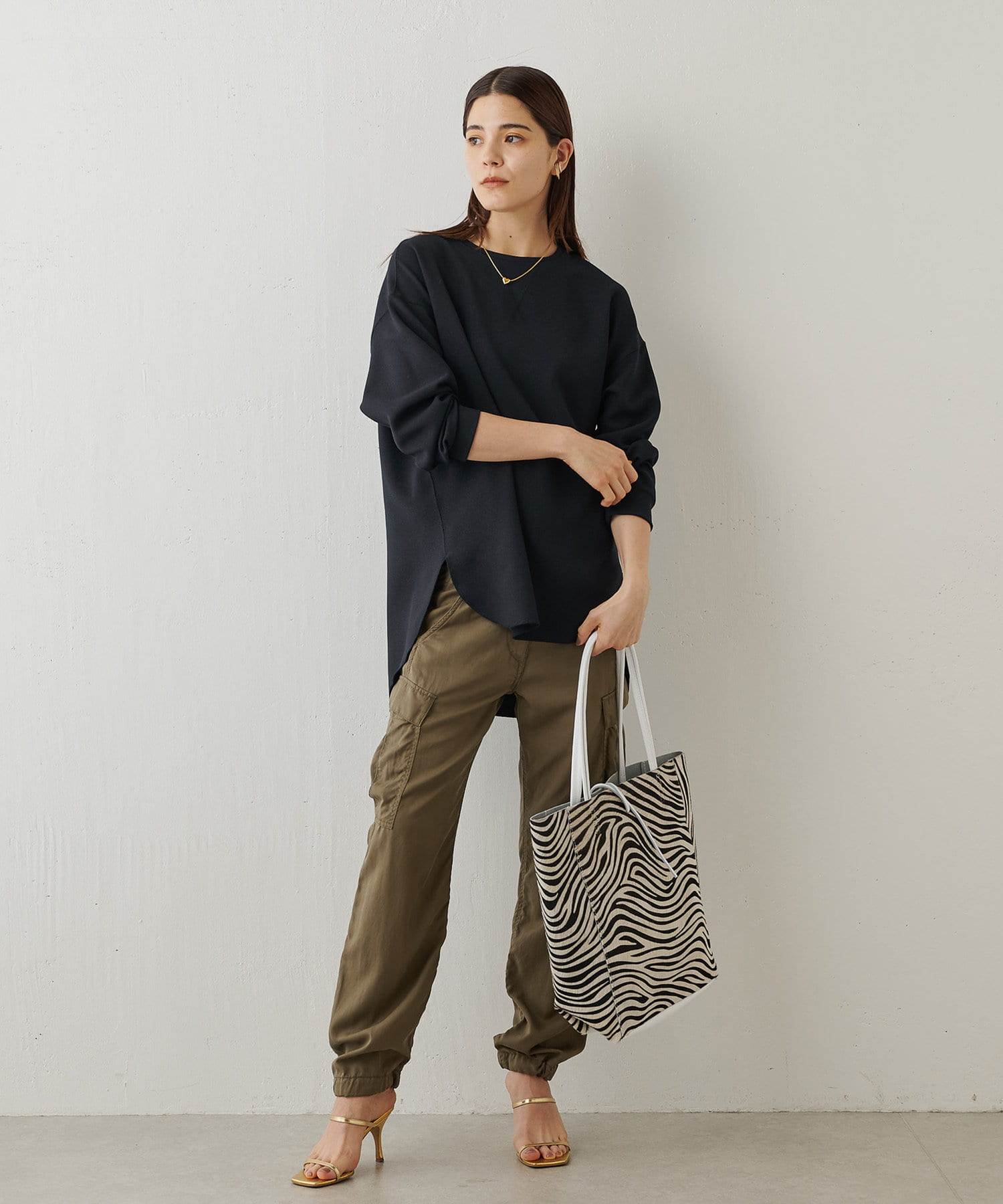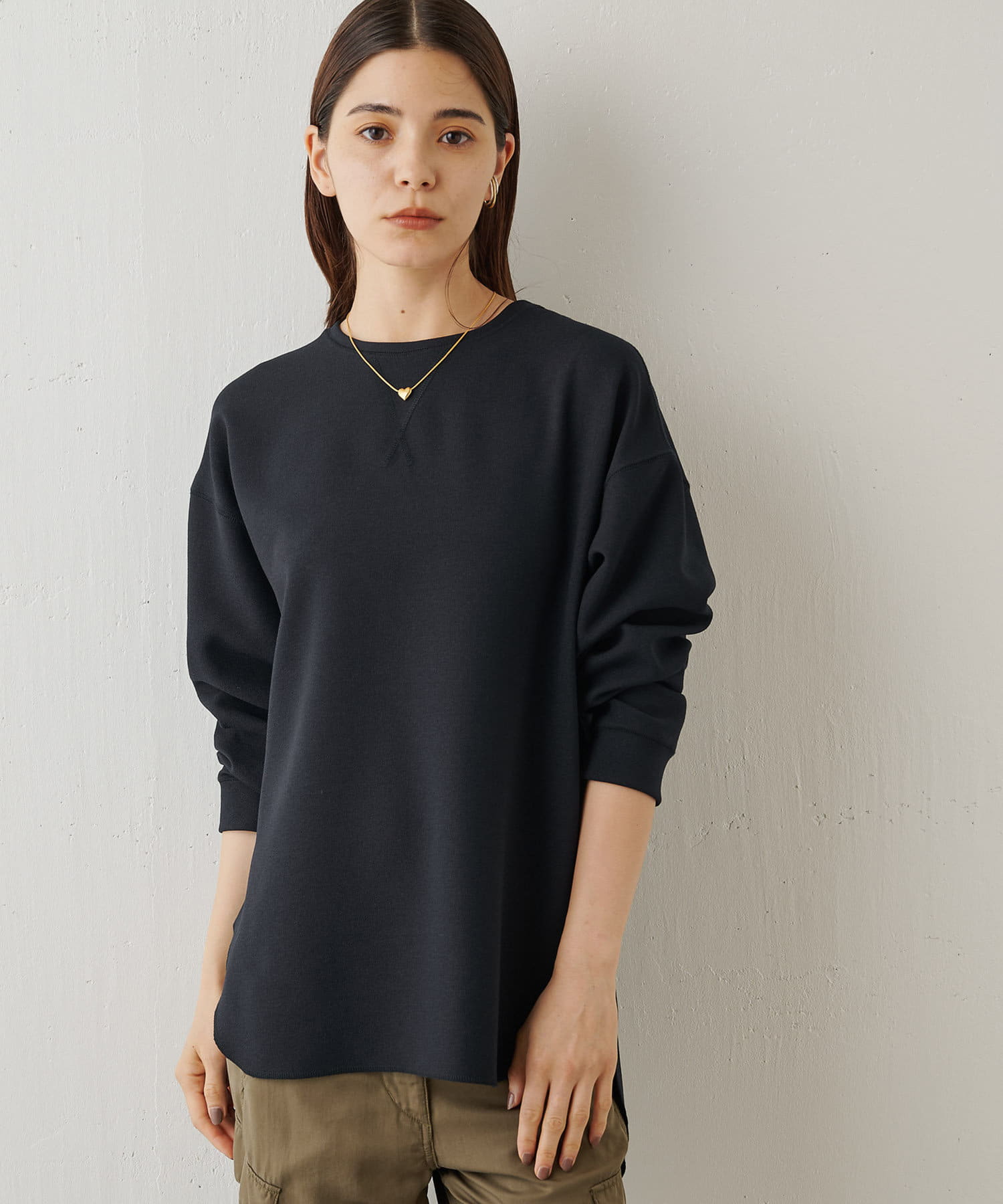 きれいめ素材でトレンドライクに仕立てた、大人のカジュアルトップス