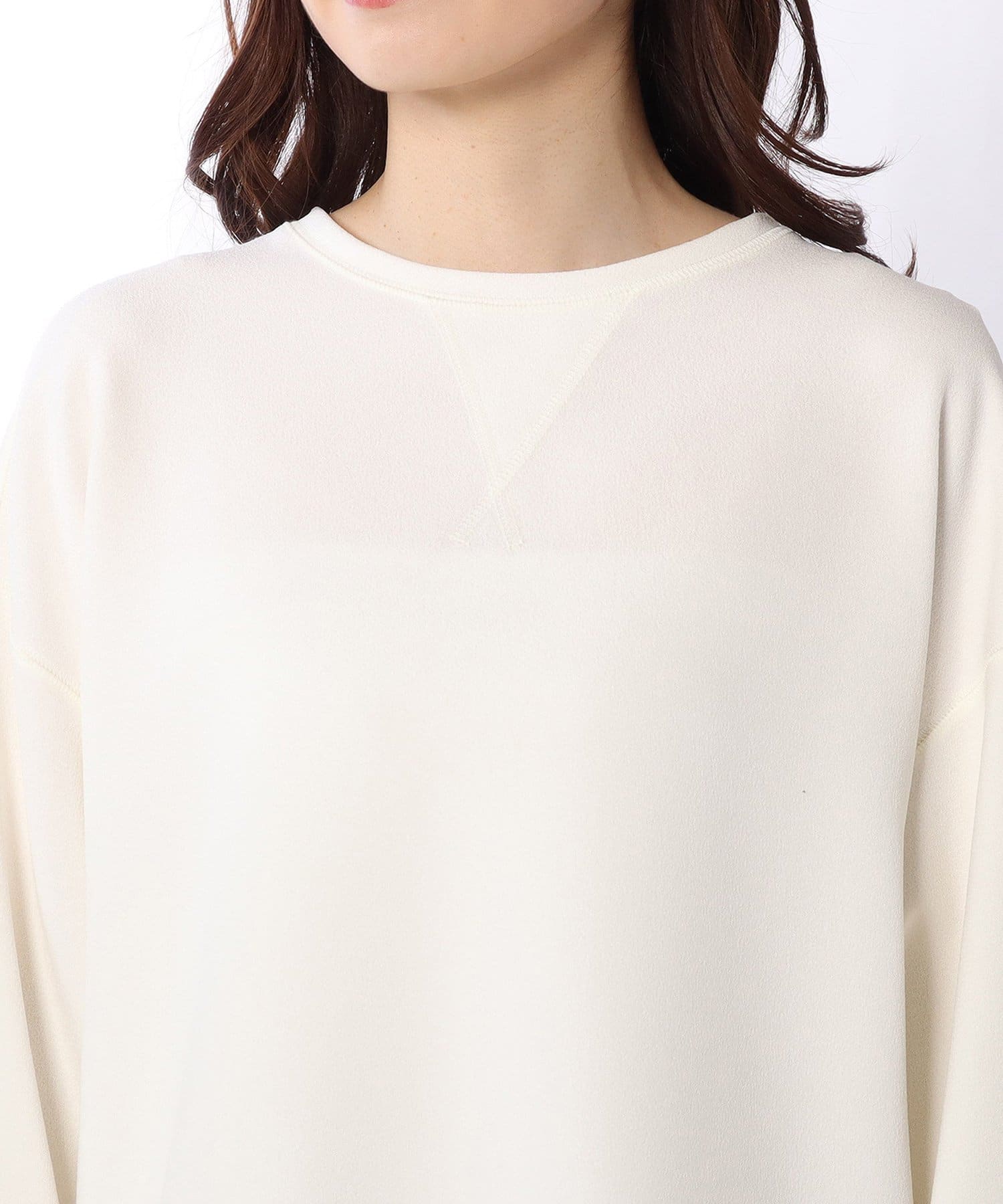 ■Vガゼットを配したコンパクトなクルーネックや、袖口のリブがラフな印象をプラス。