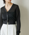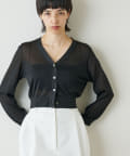■やや透け感があり、ボタンを留めてプルオーバーのように着用しても様になる一着。