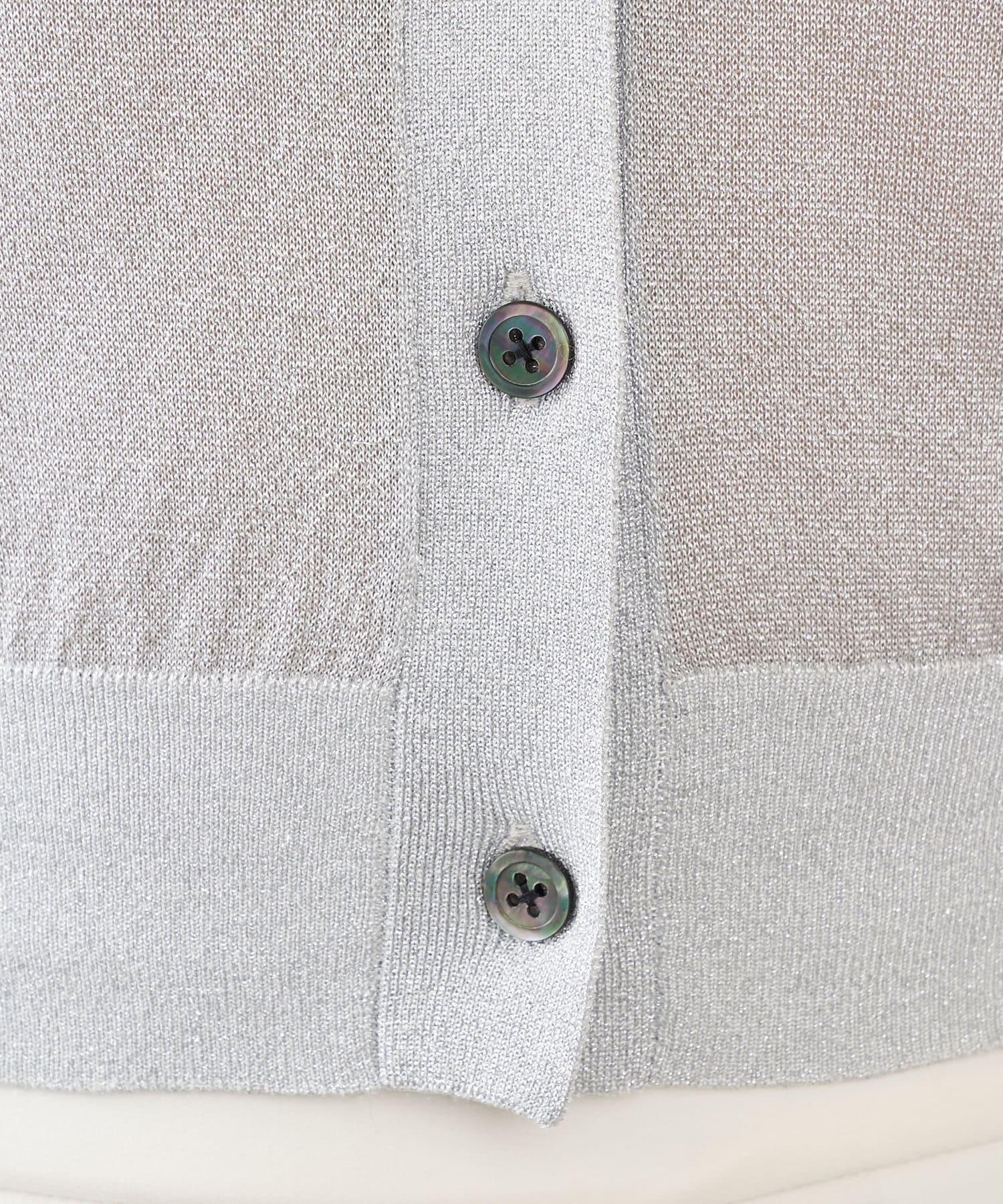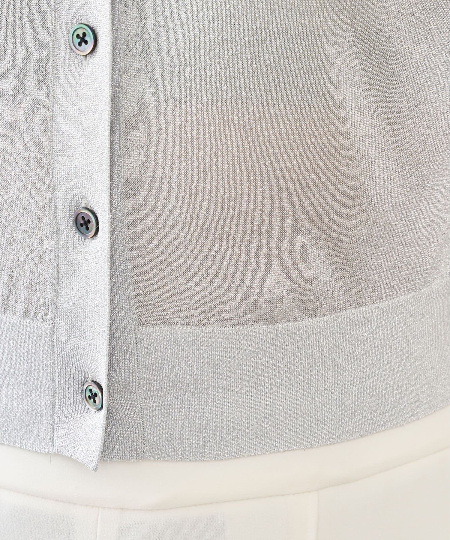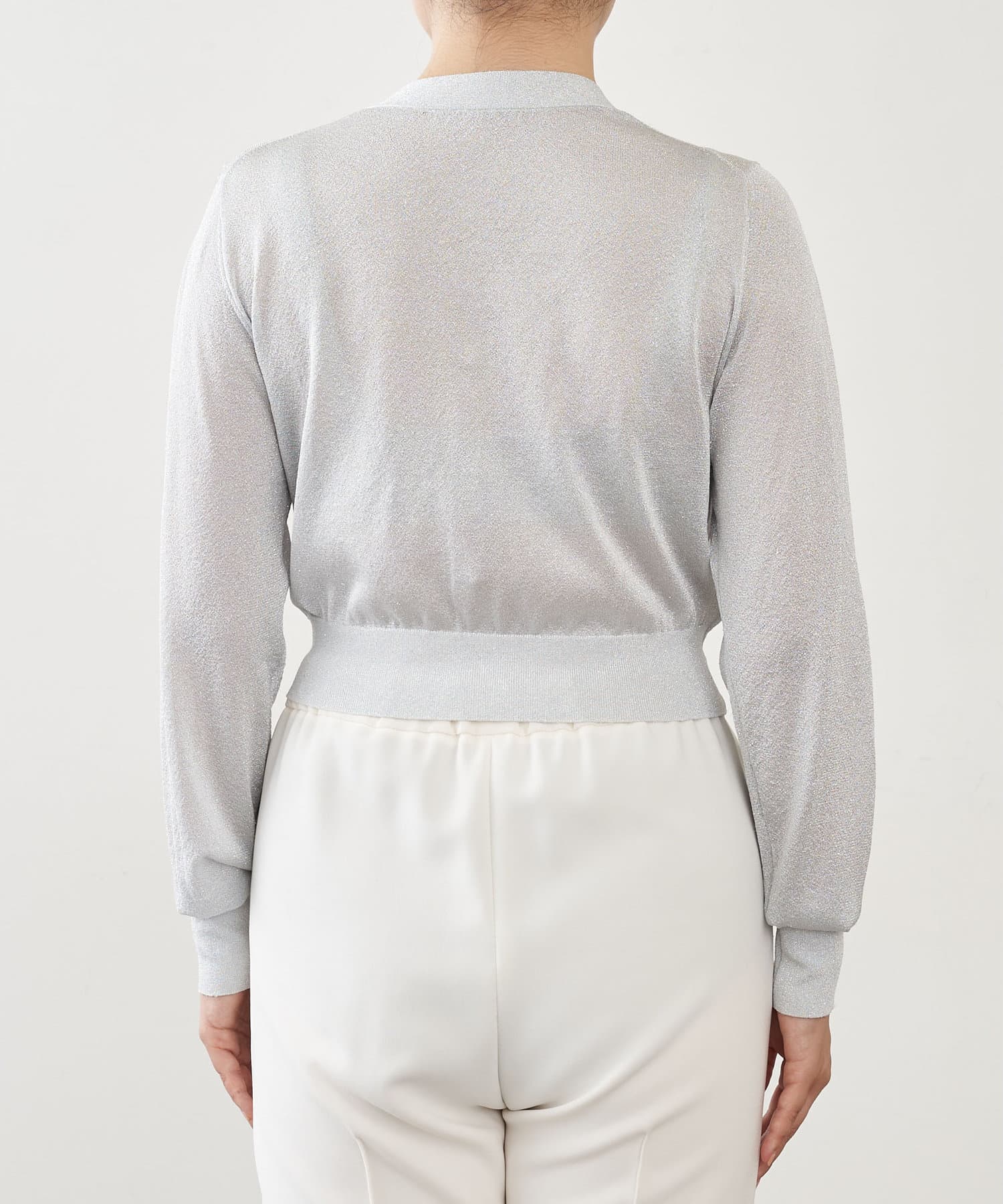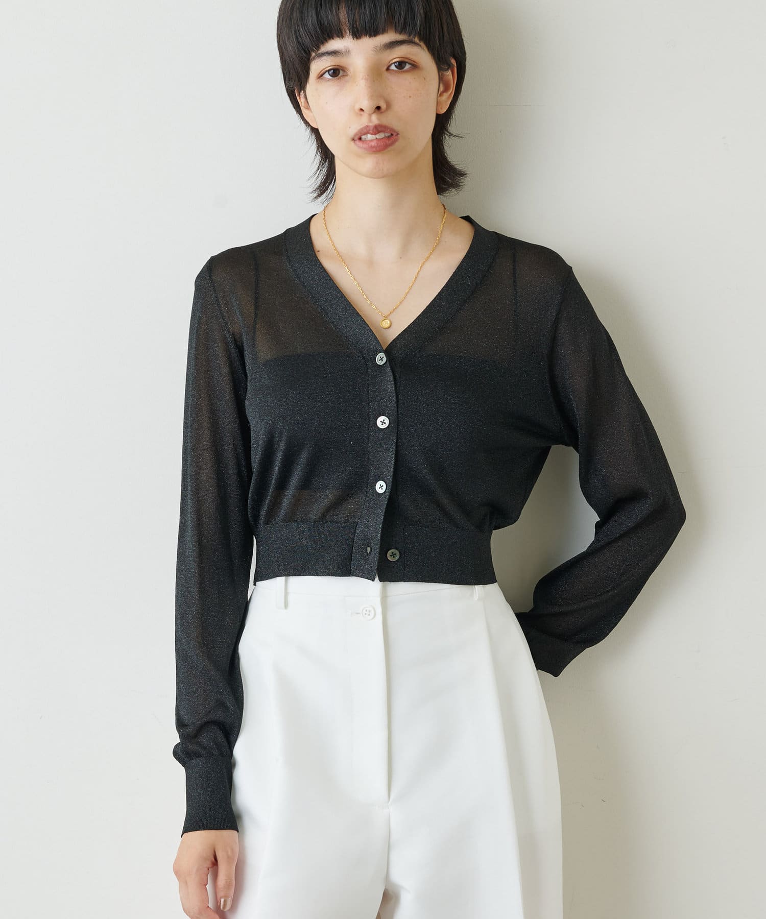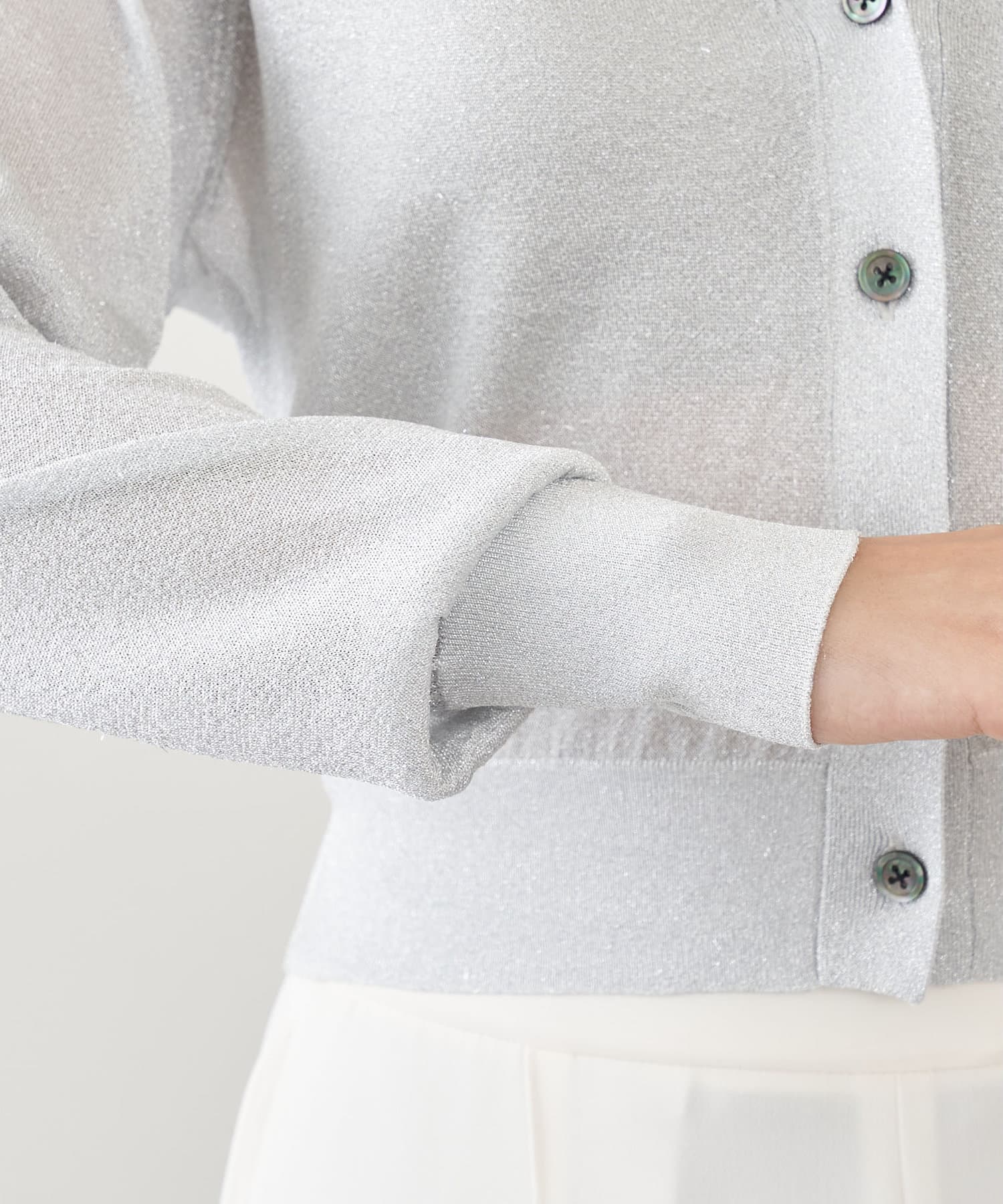 ■繊細なラメ糸で仕立てた薄手のニットカーディガン。