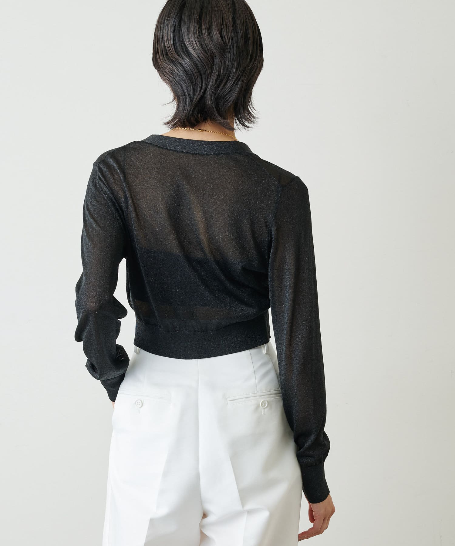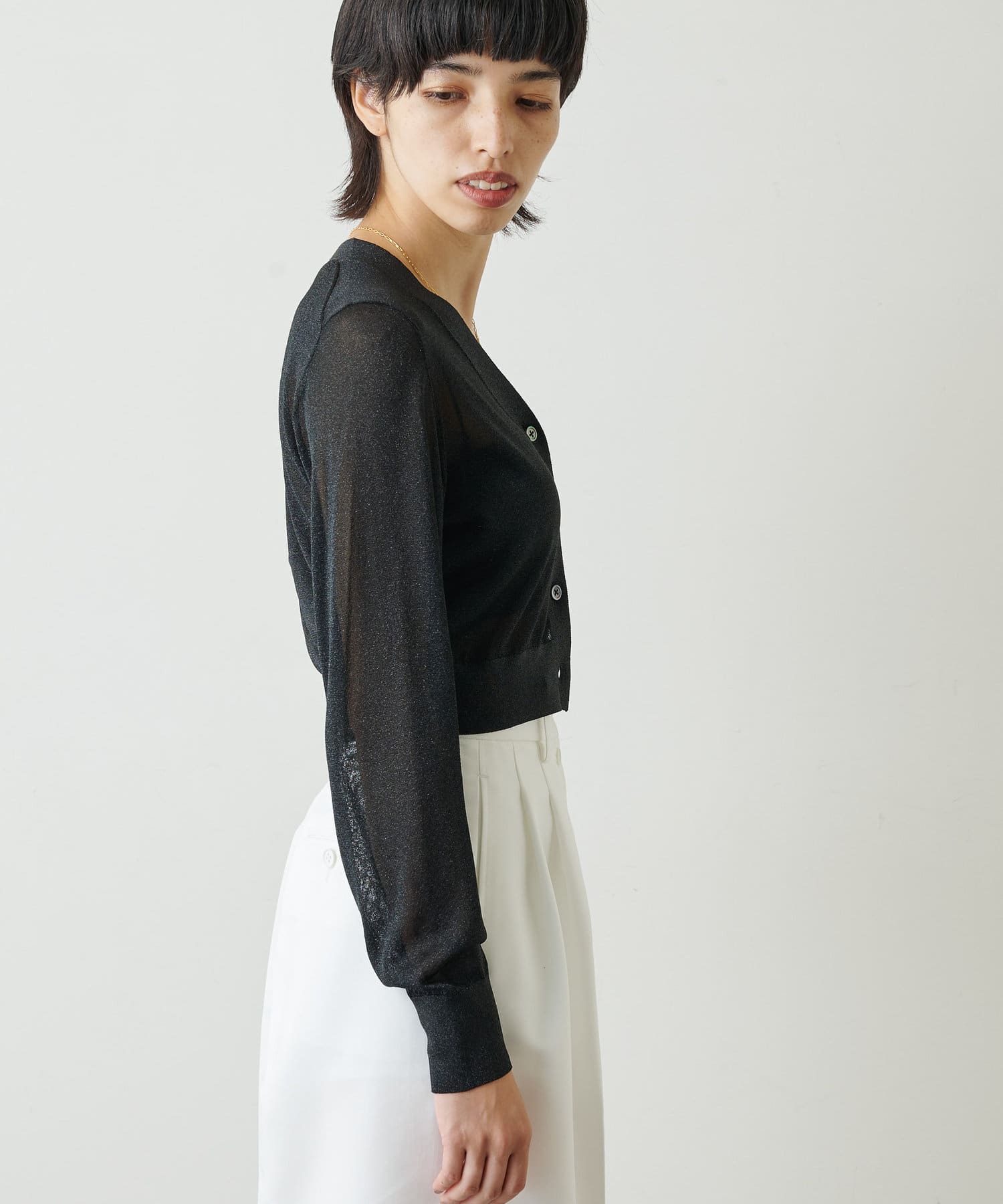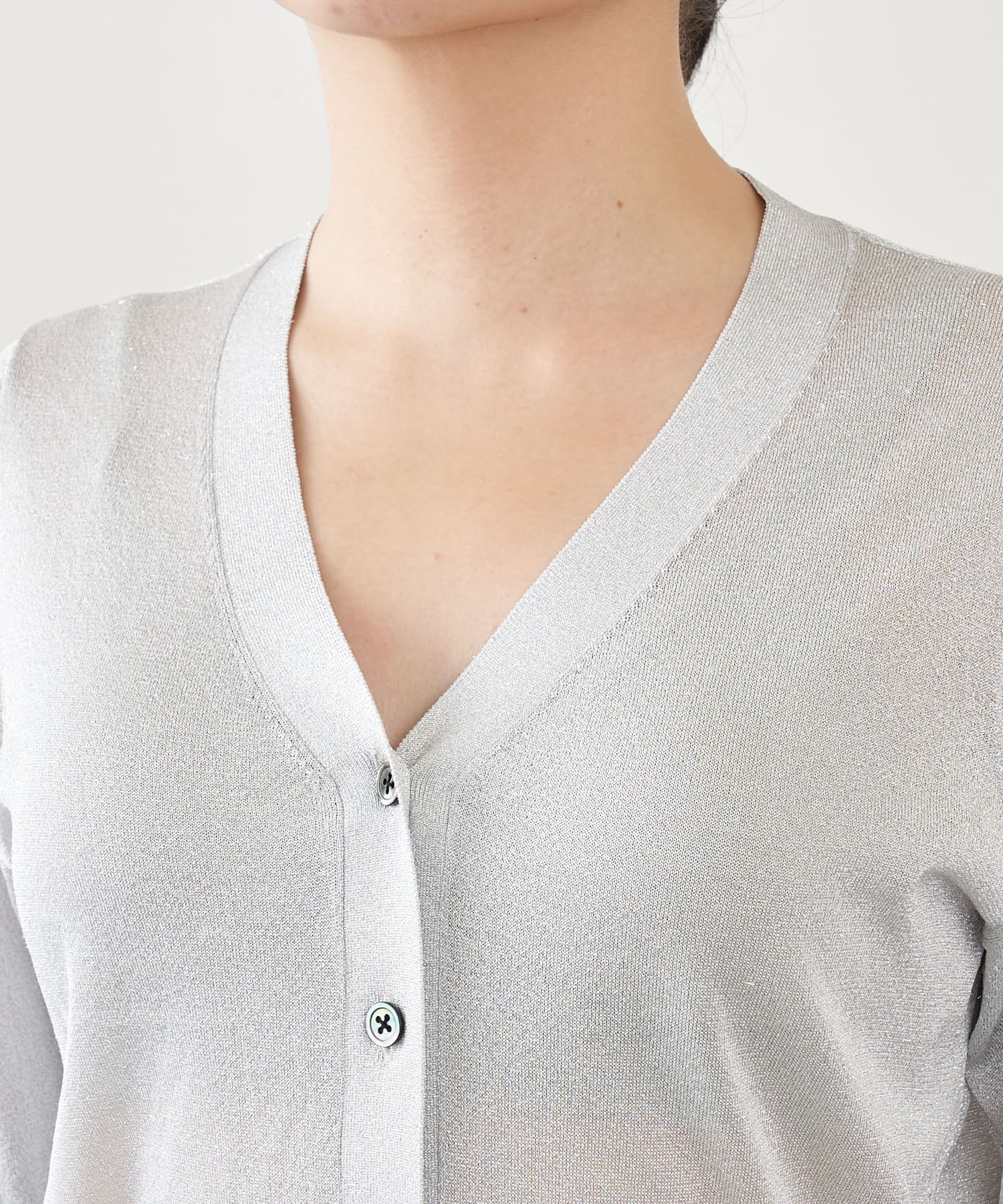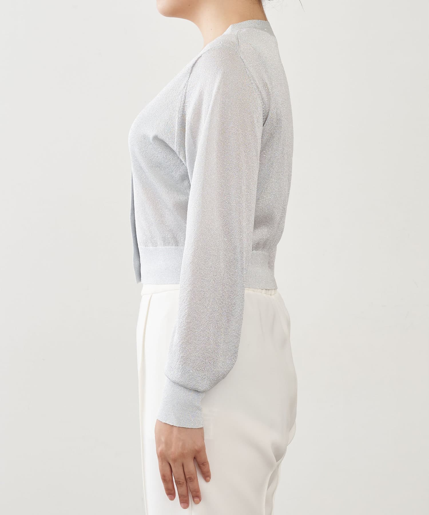 ■繊細なラメ糸で仕立てた薄手のニットカーディガン。