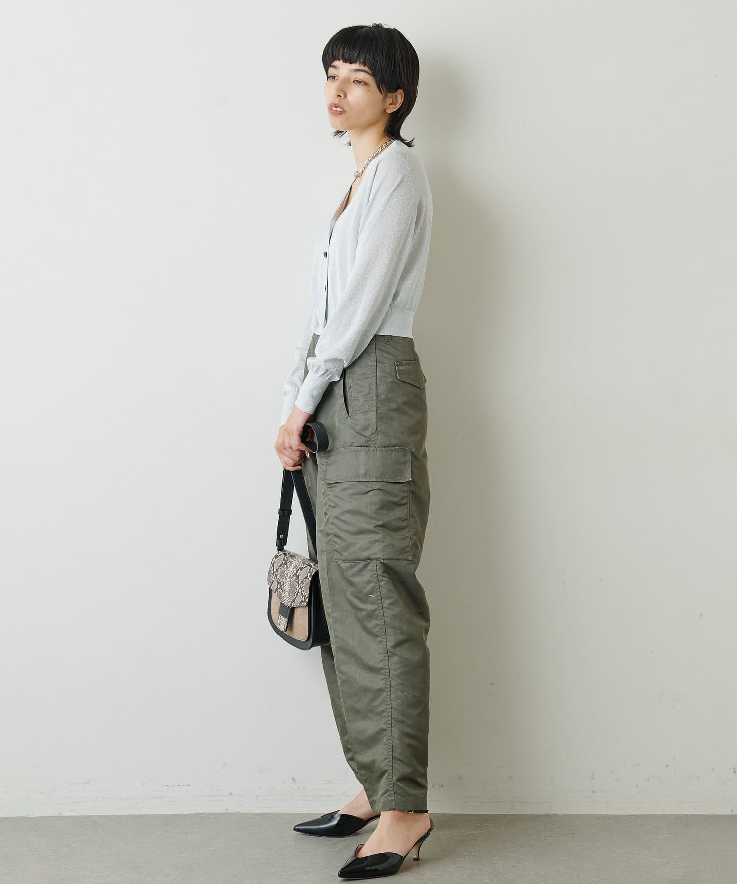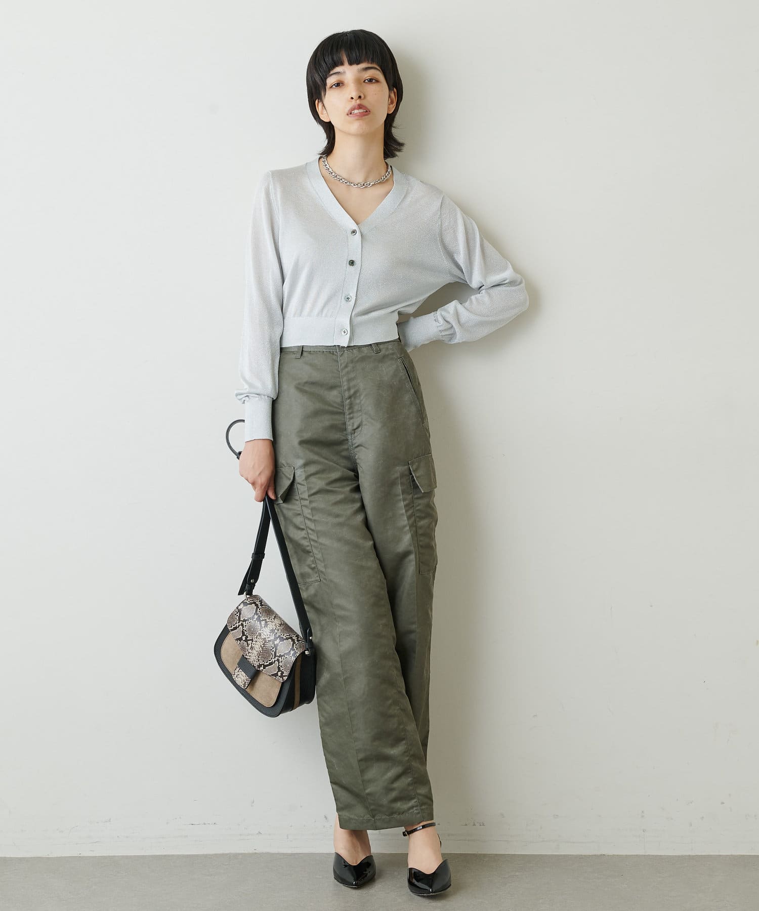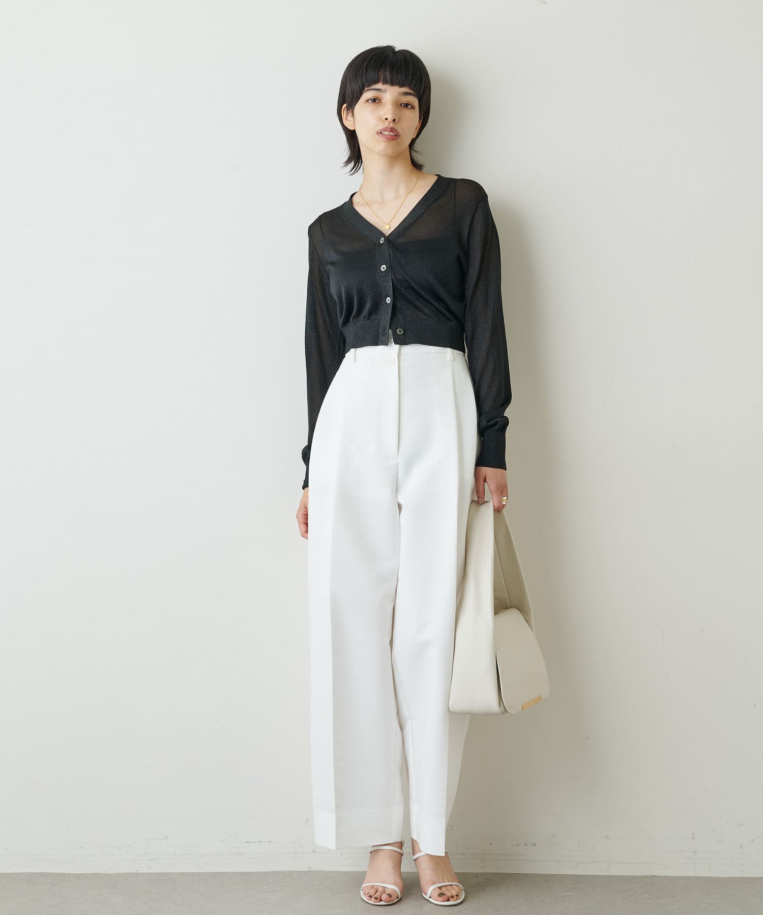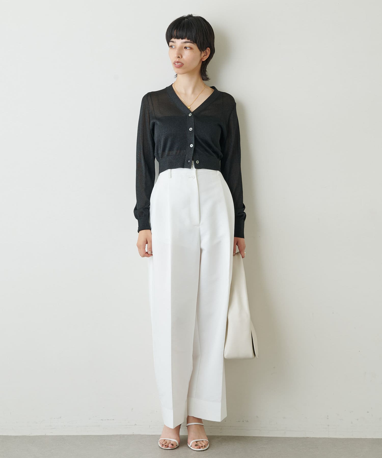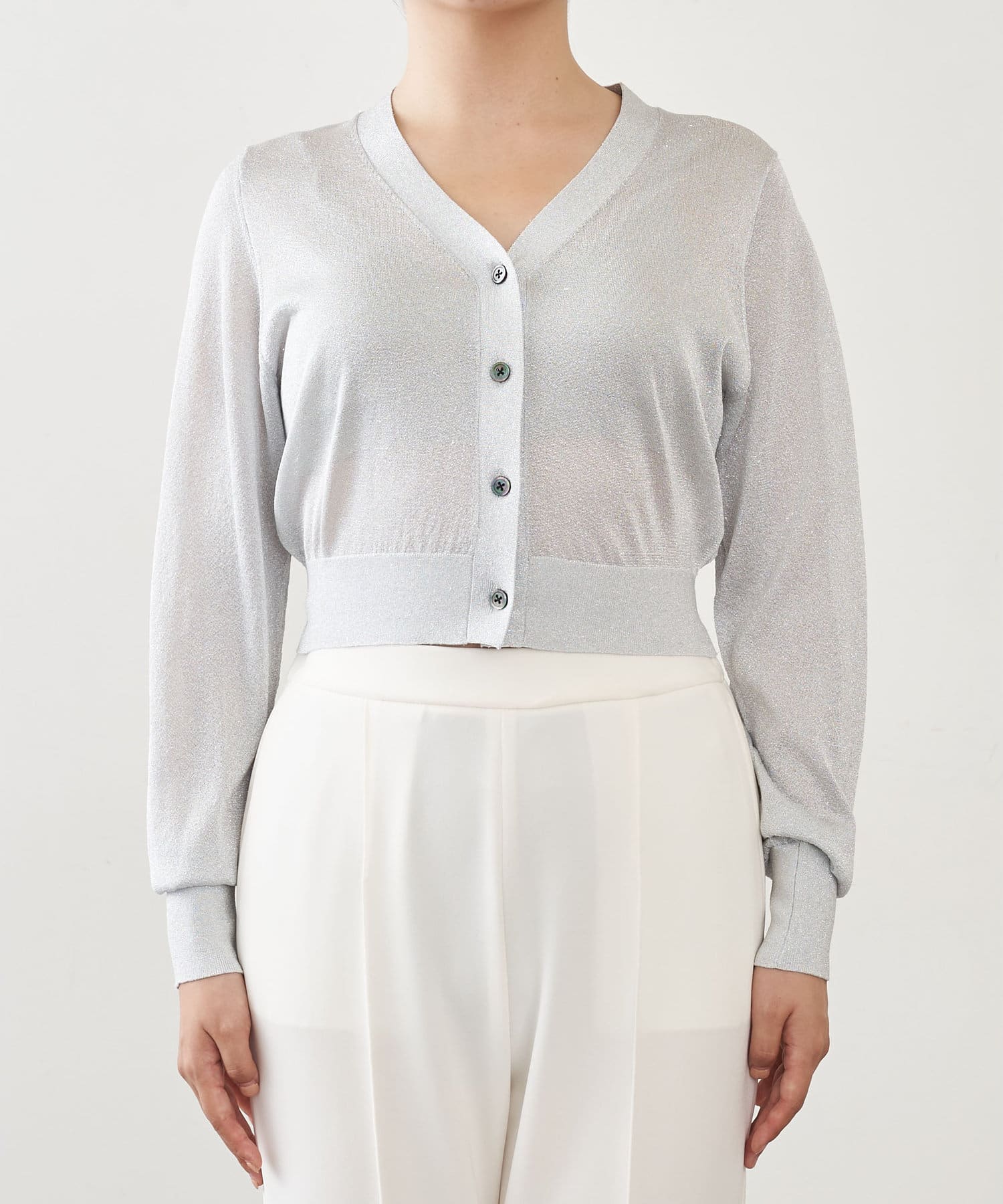 ■繊細なラメ糸で仕立てた薄手のニットカーディガン。