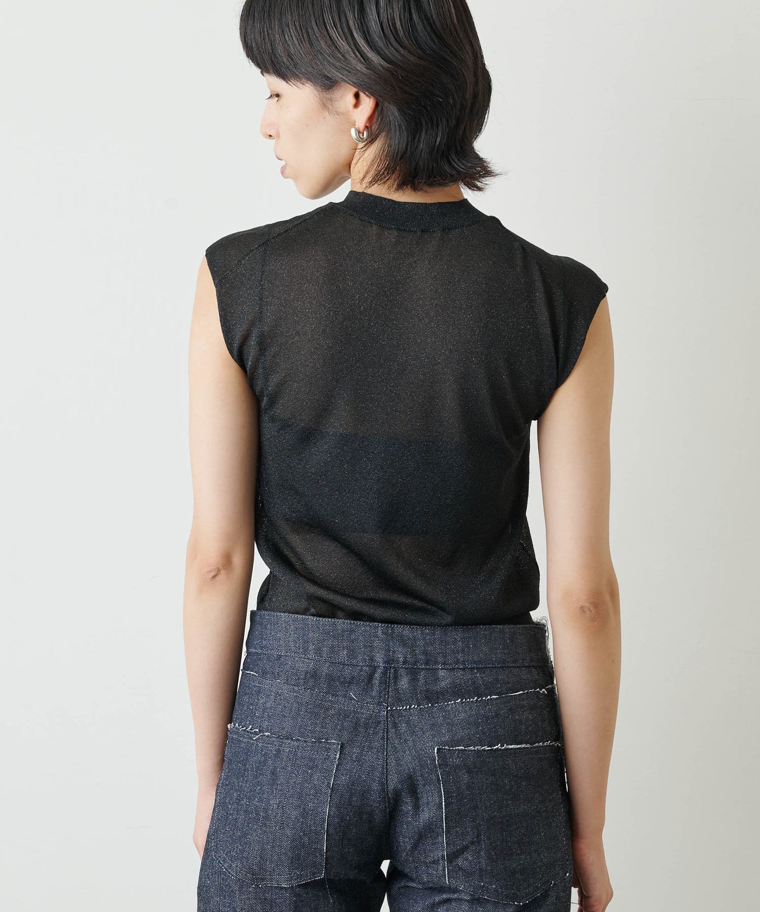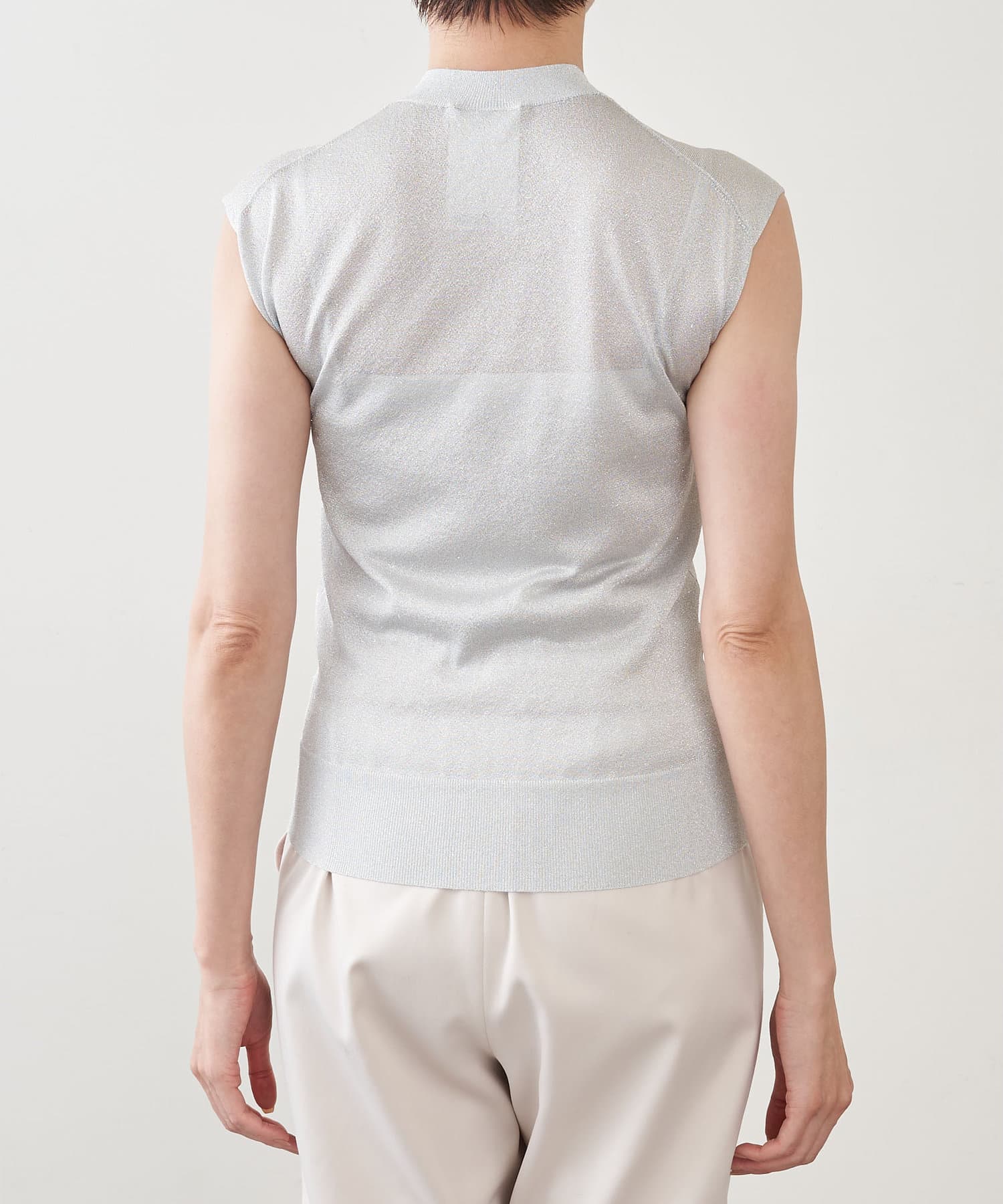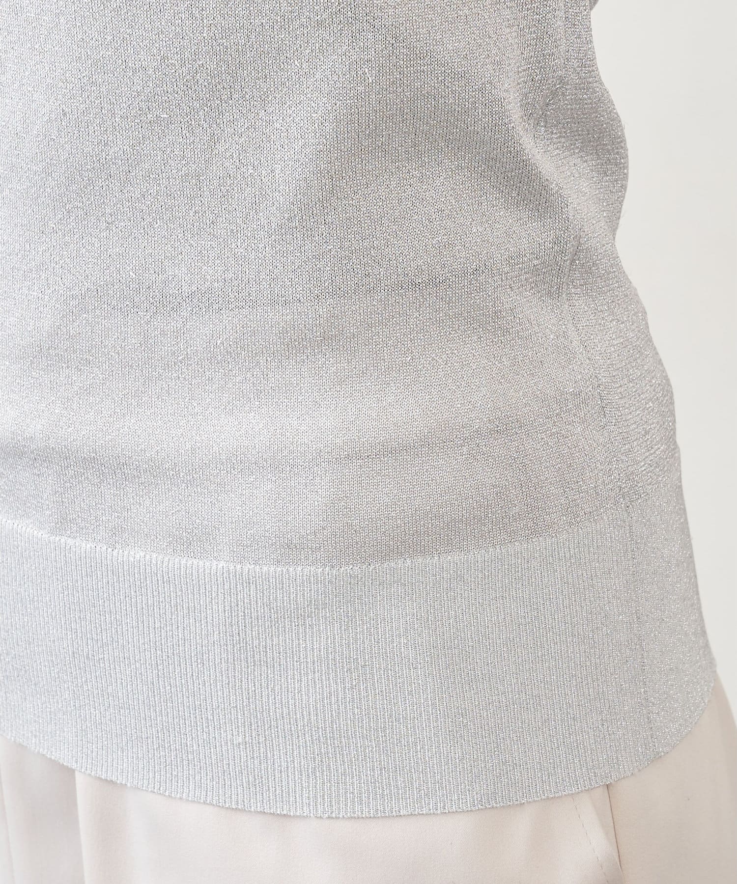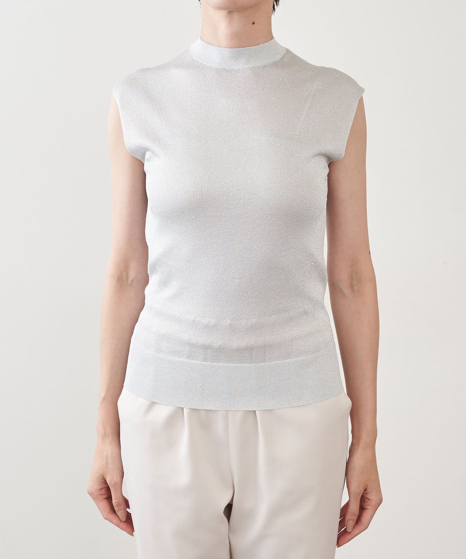 ■繊細なラメ糸で仕立てた薄手のニットノースリーブトップス。