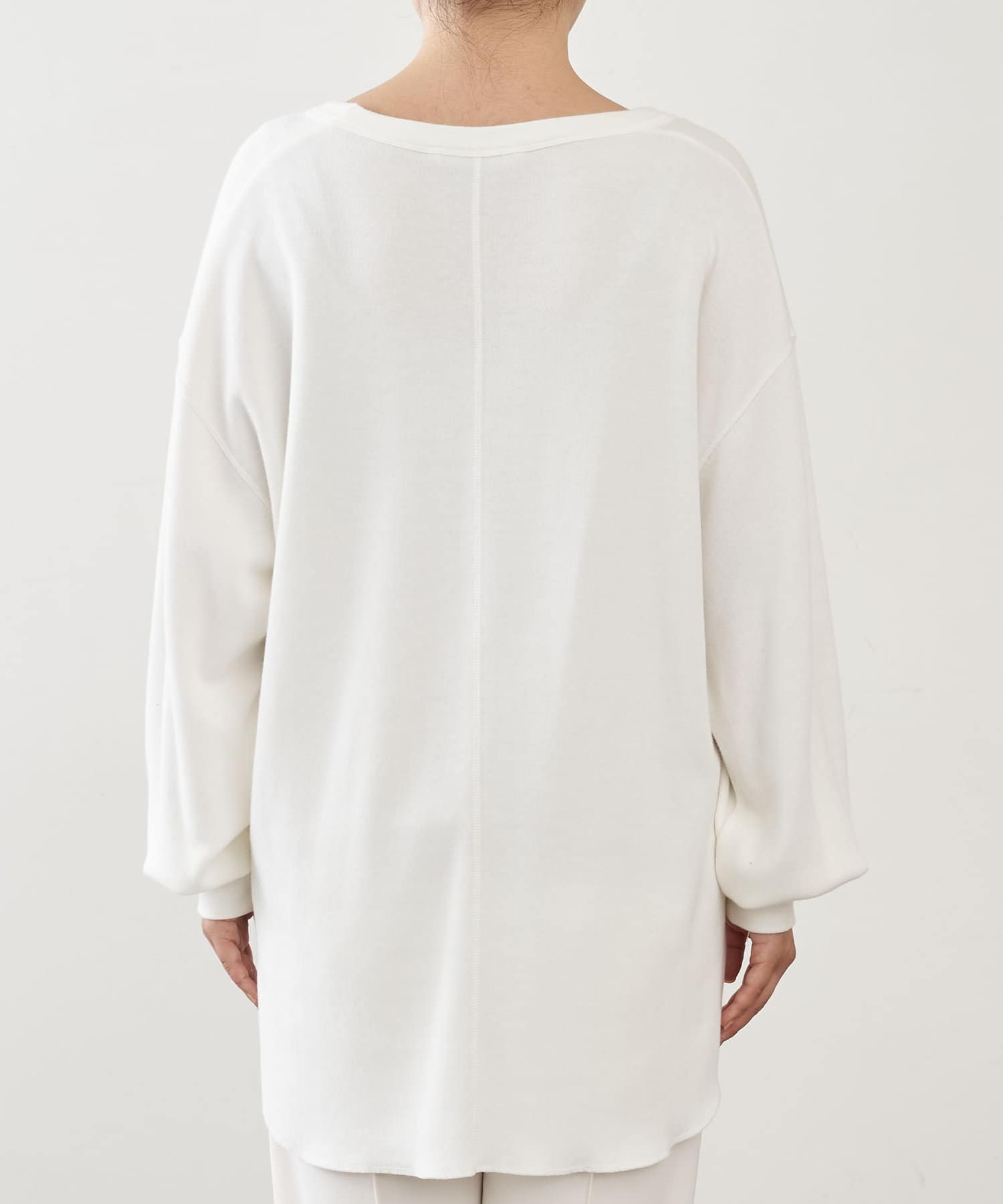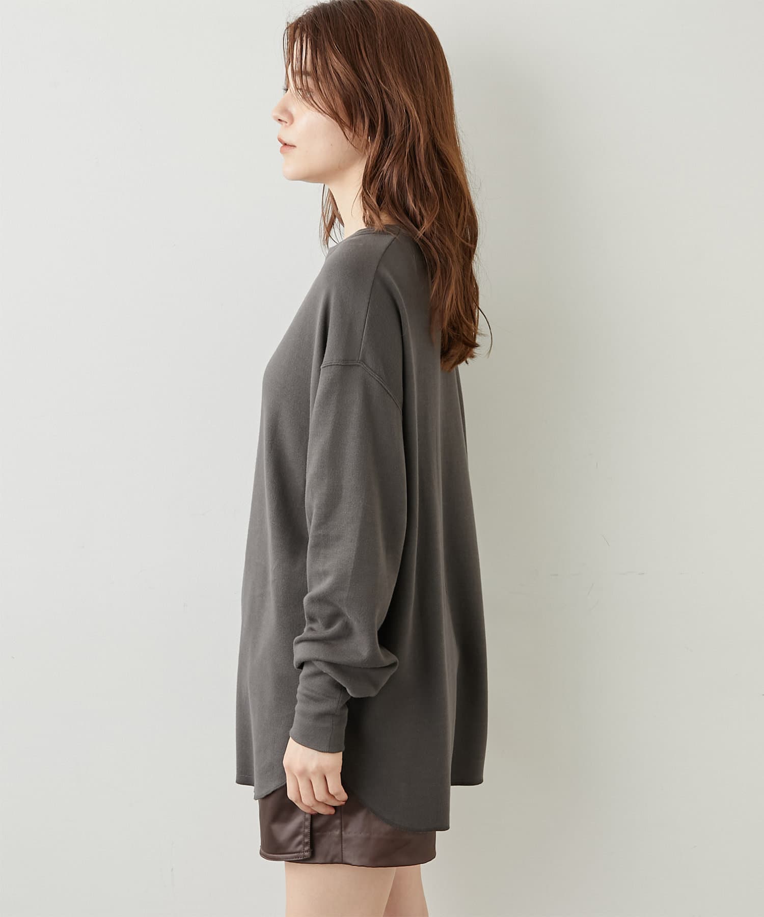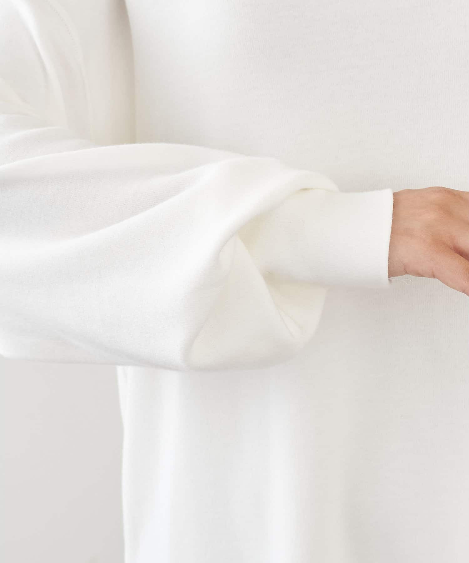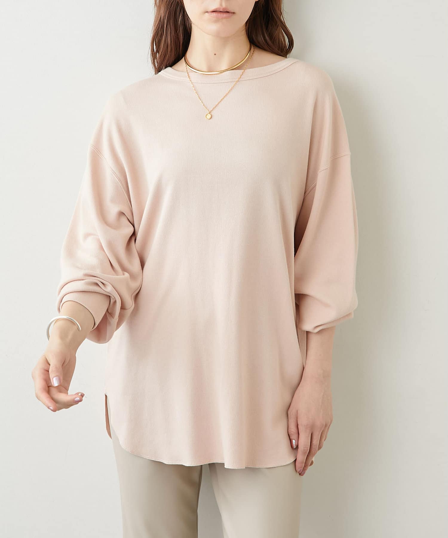 ■肩を落としたルーズな袖に長めの袖口リブがアクセントをプラス。