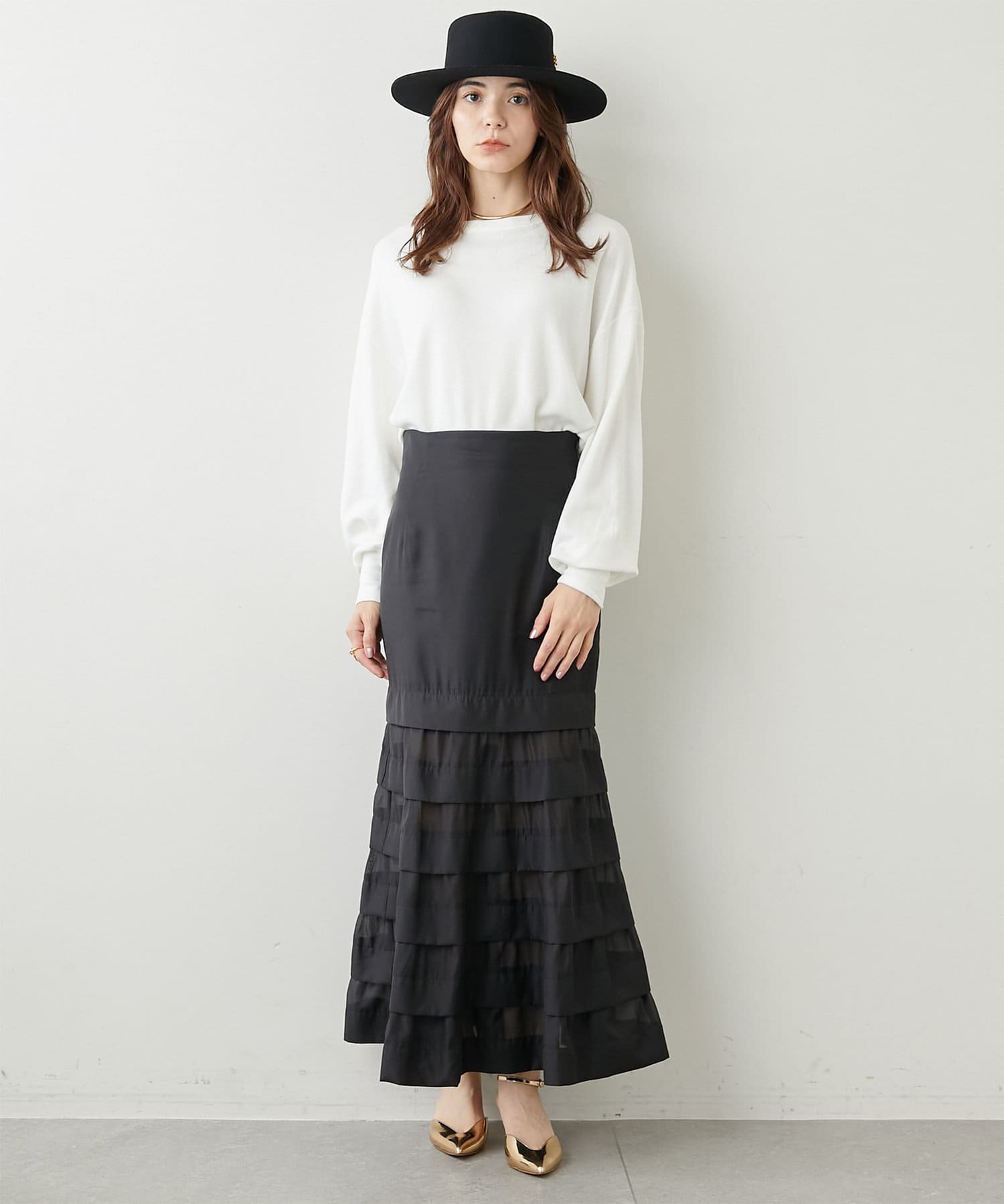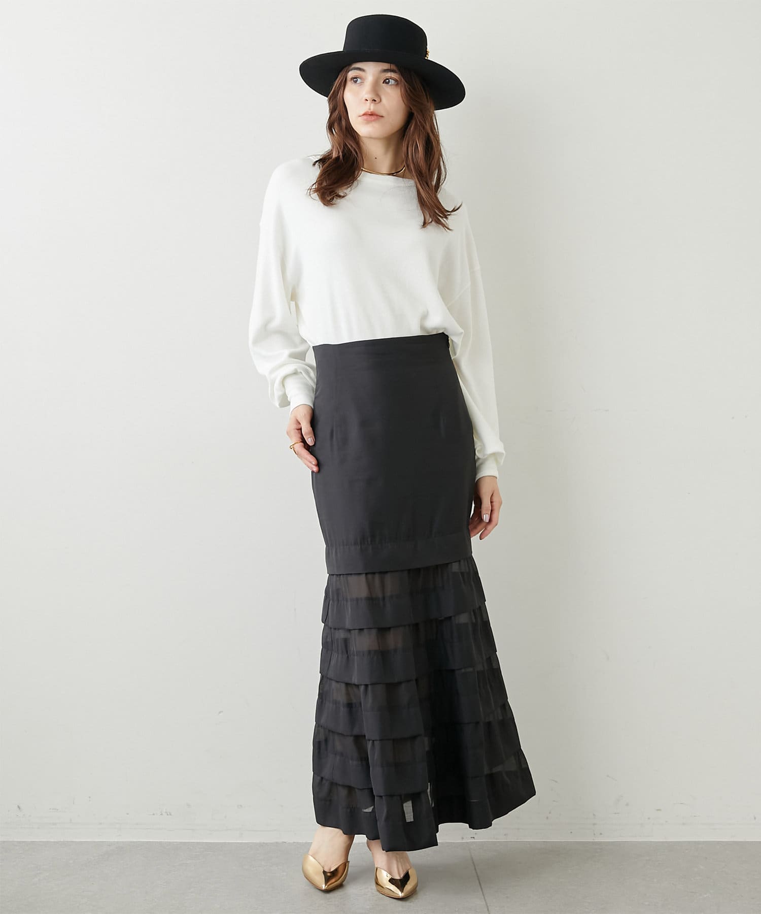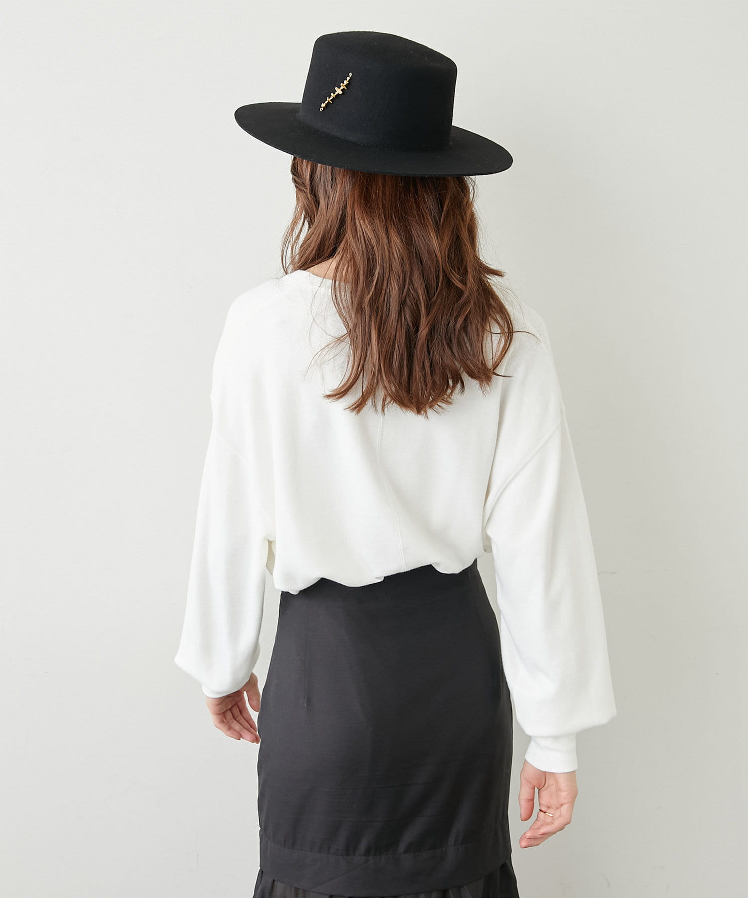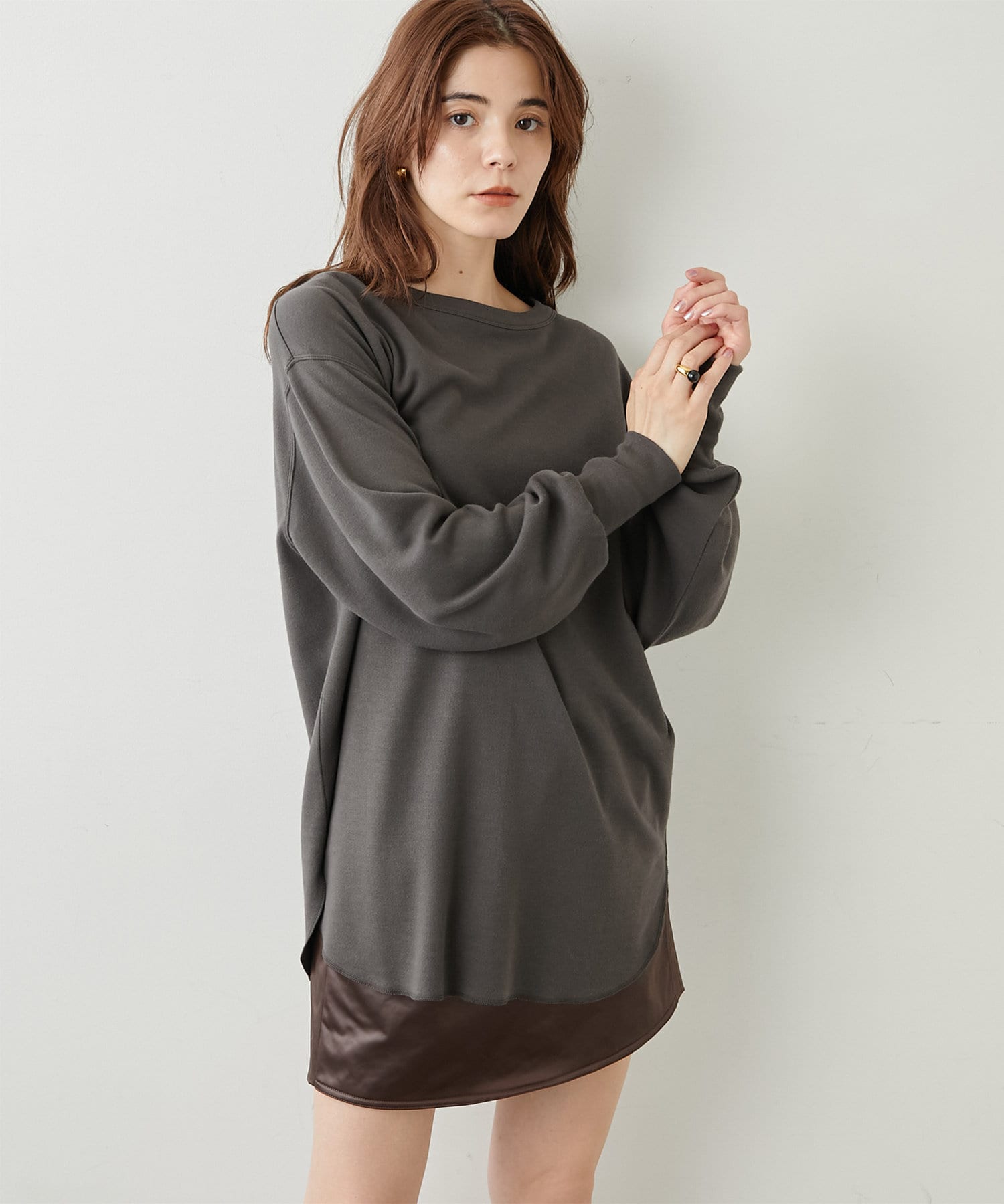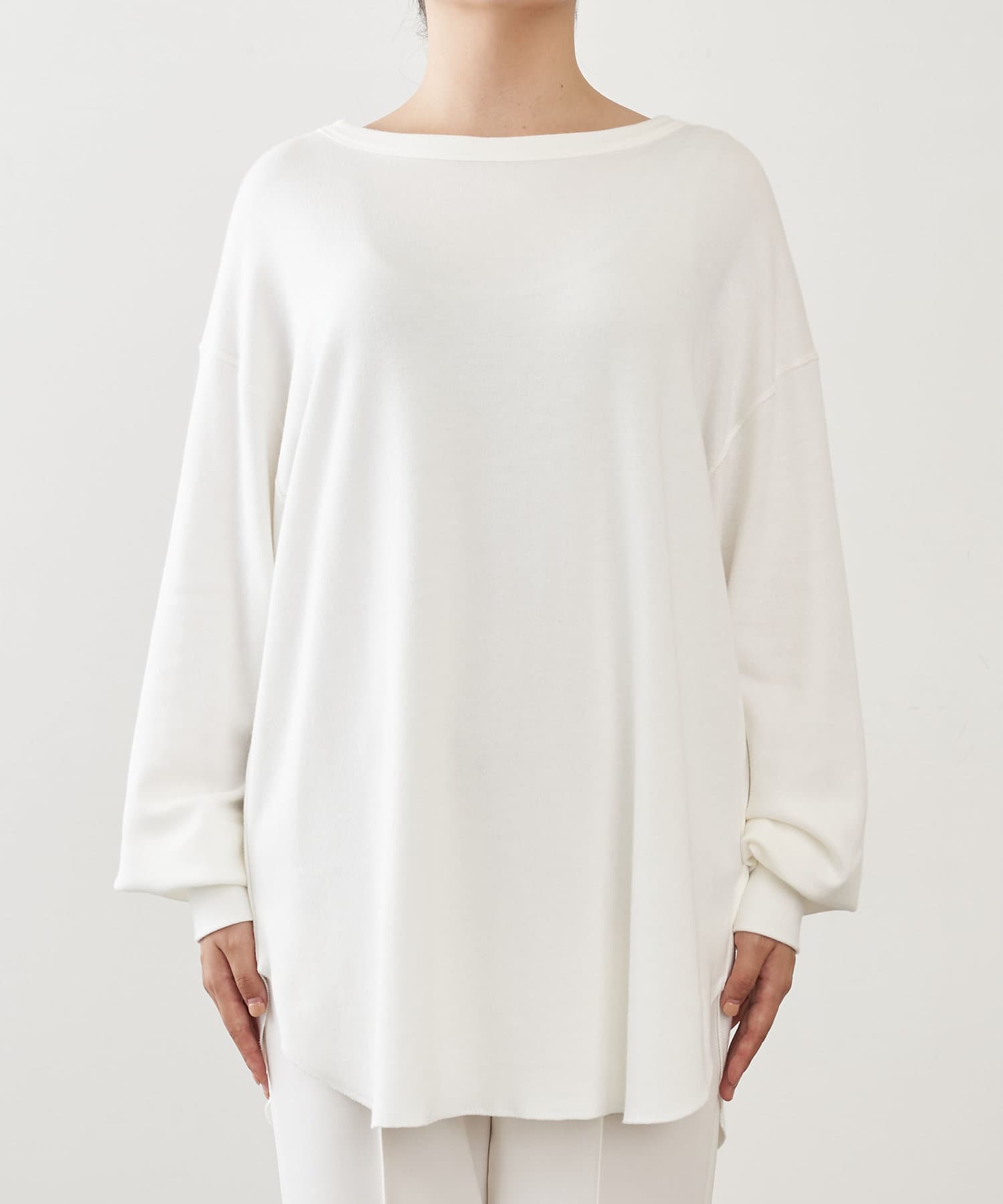 ■肩を落としたルーズな袖に長めの袖口リブがアクセントをプラス。