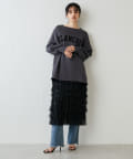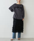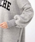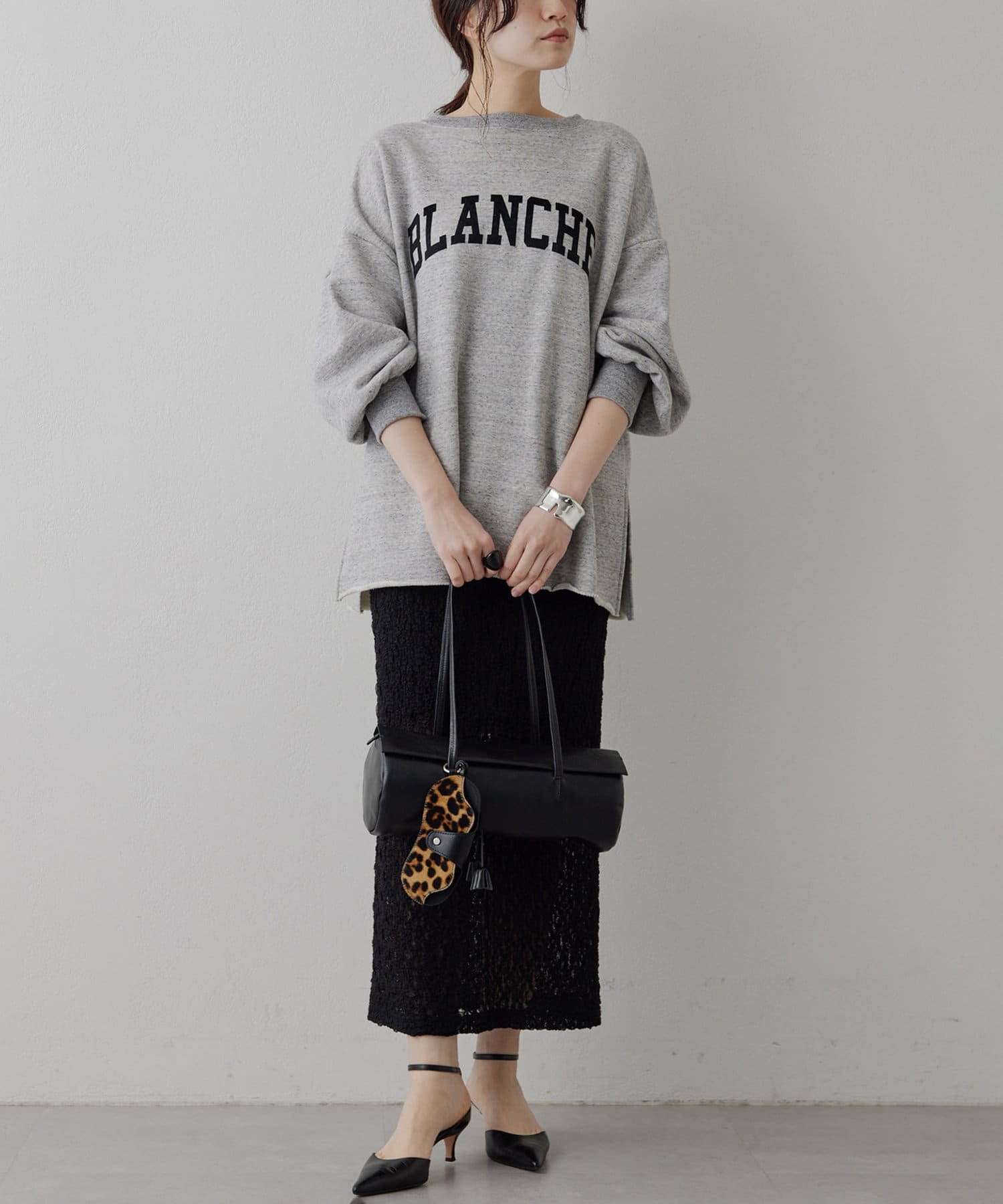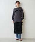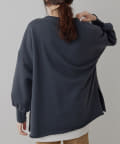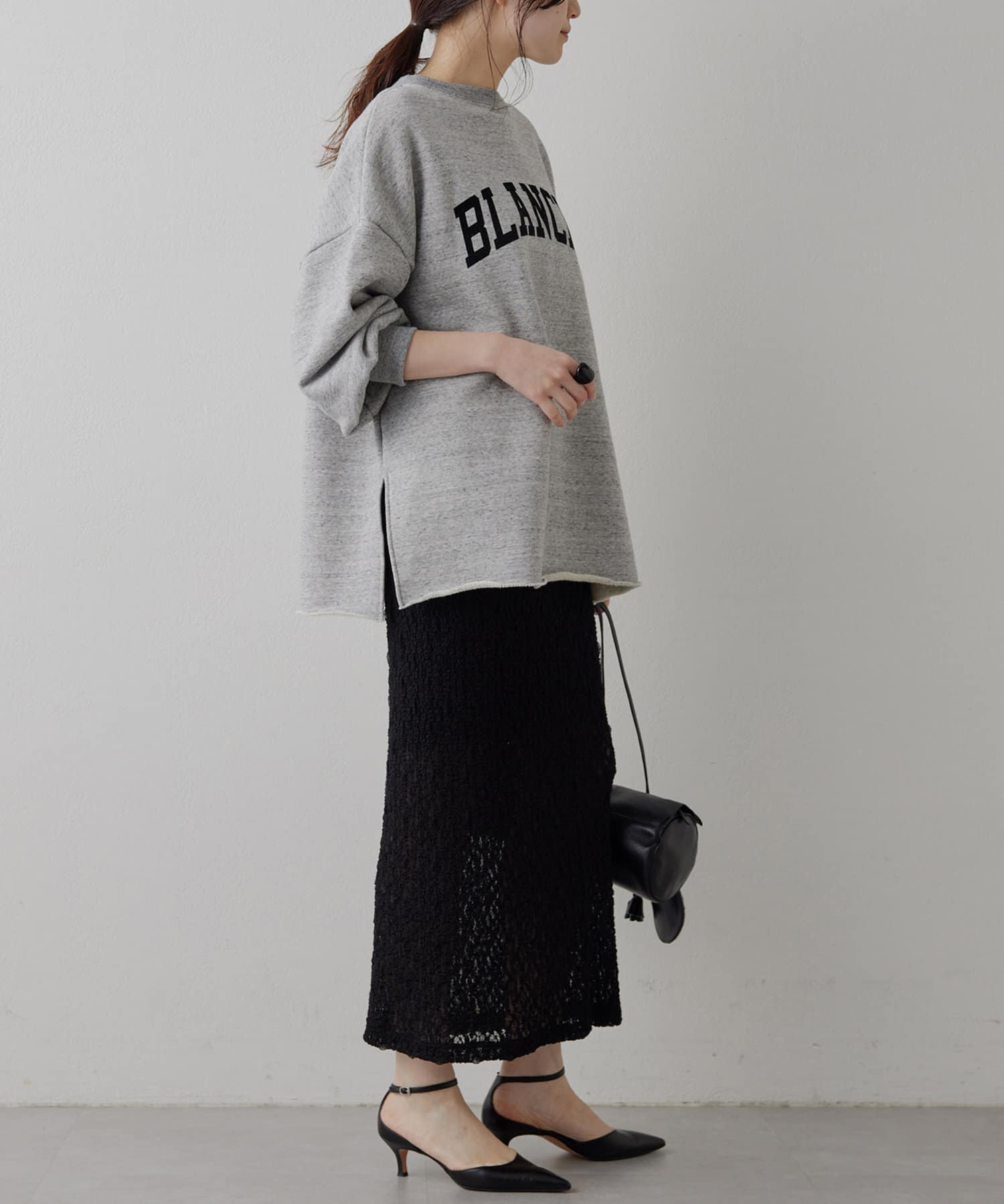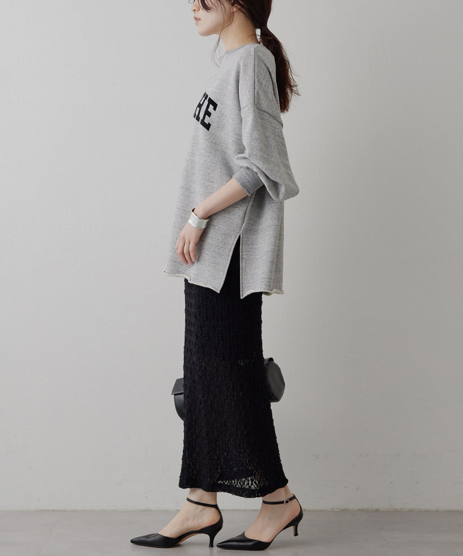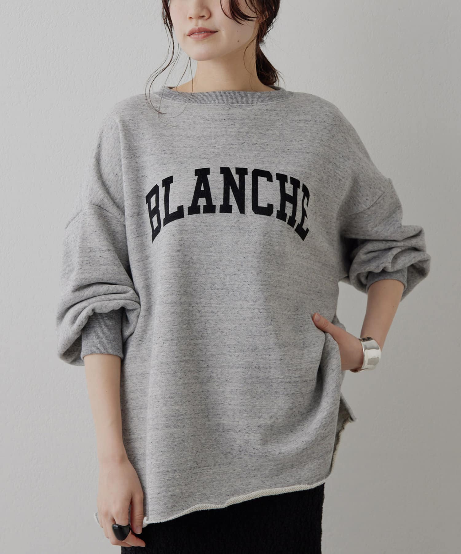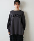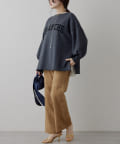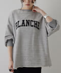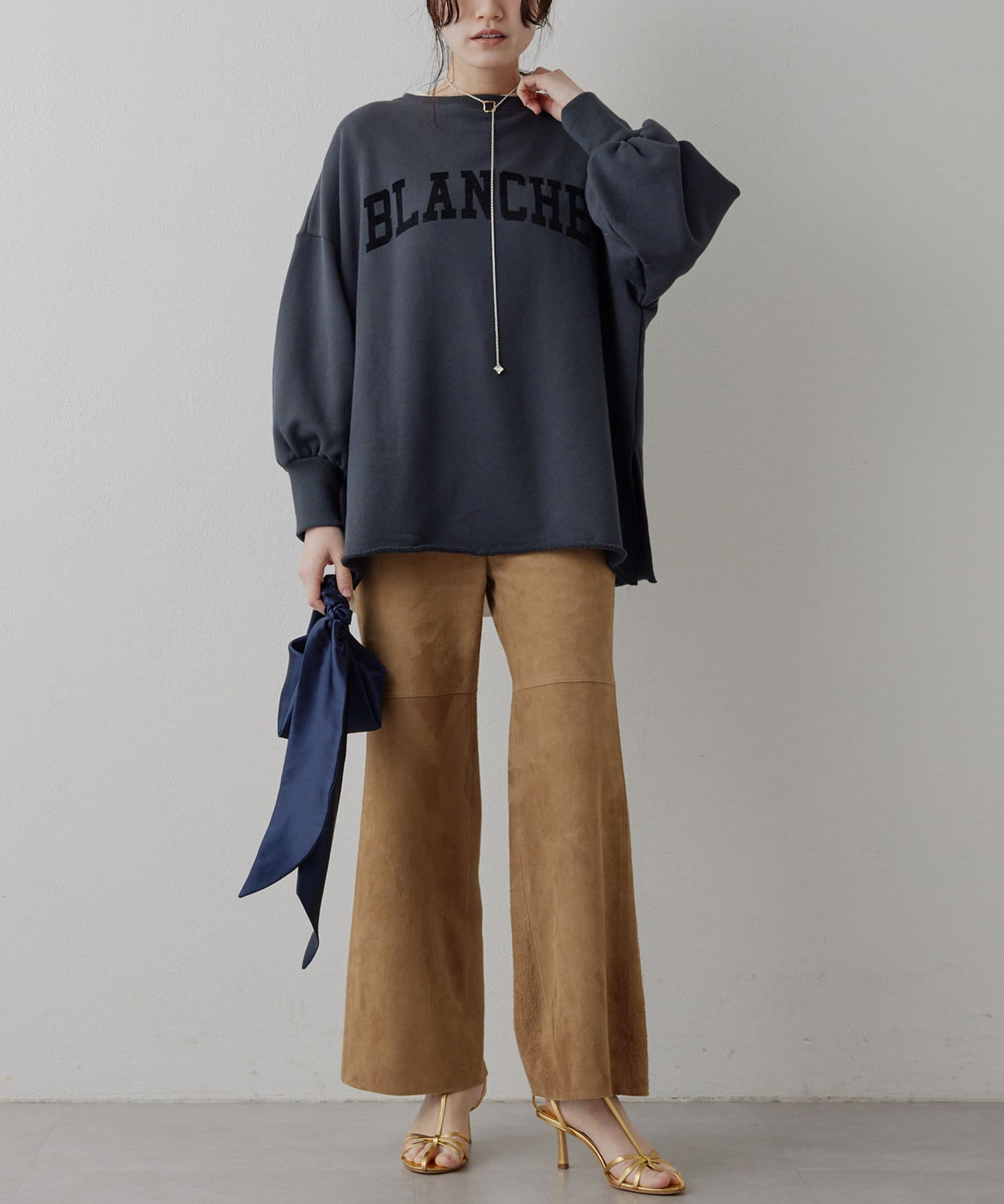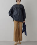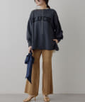 立体感のあるフロッキーロゴが大人っぽいスウェットです。サイズ感はしっかりゆとりのあるリラックスシルエット。袖がふんわりしていて少し甘さのあるデザインです。