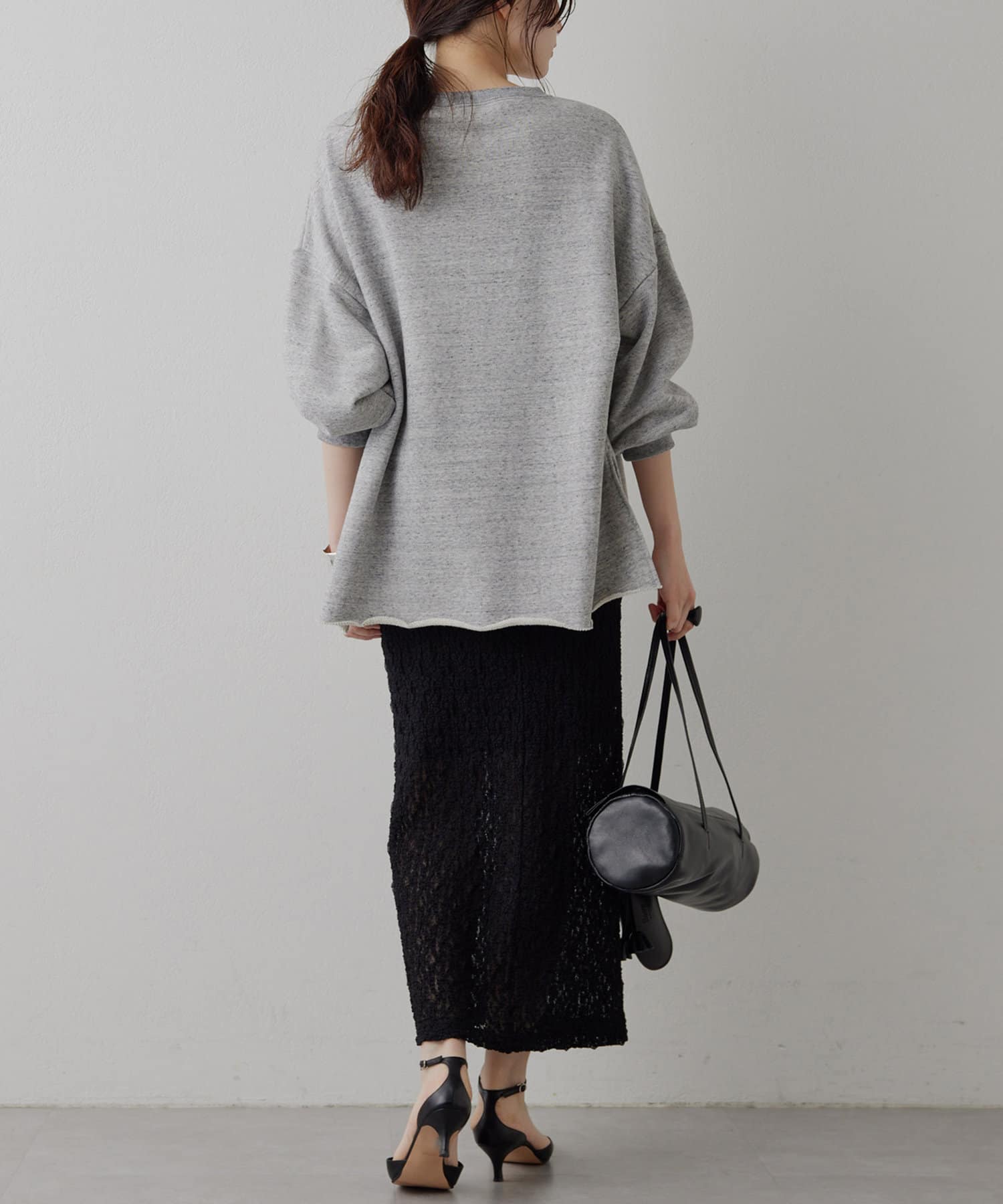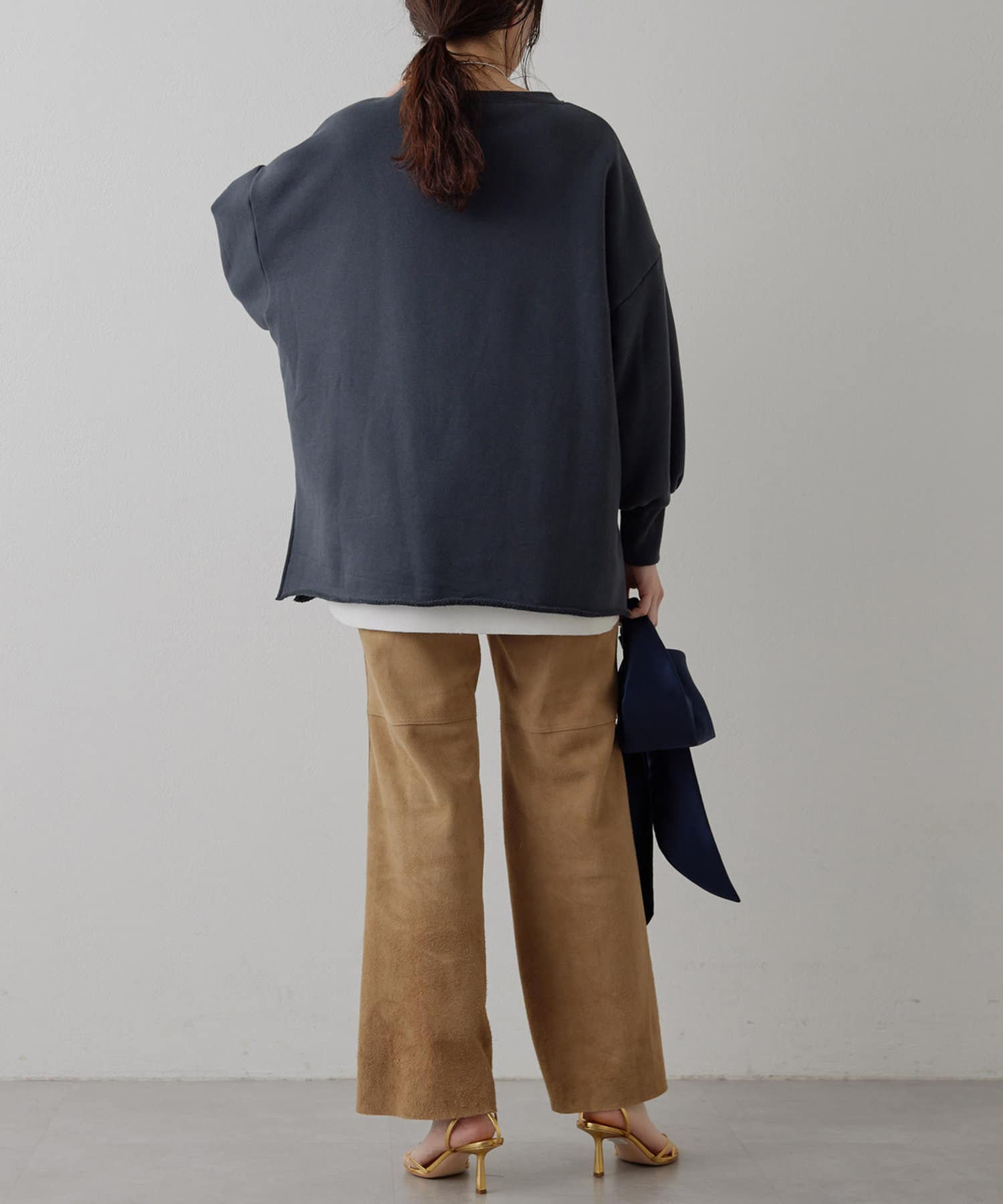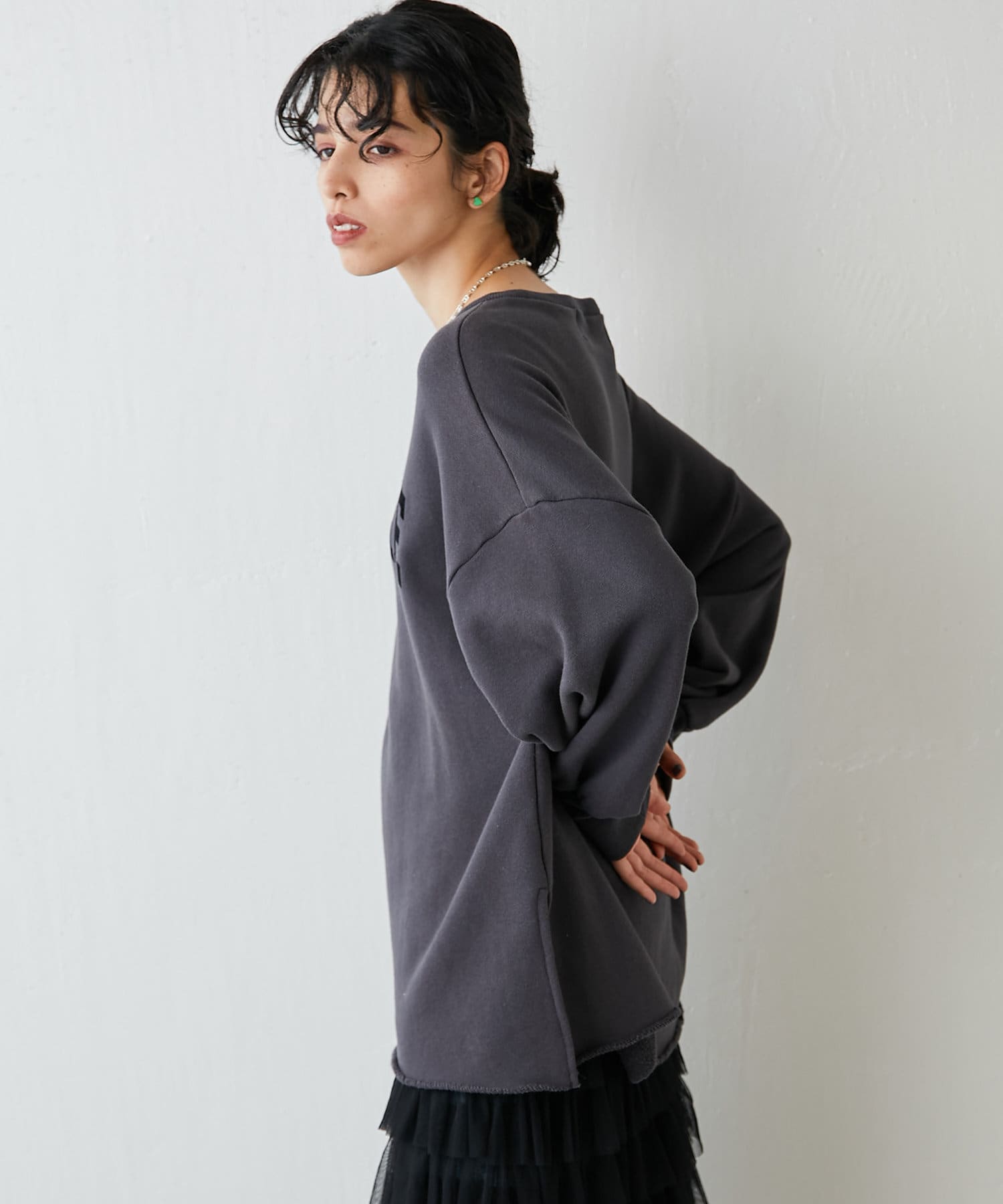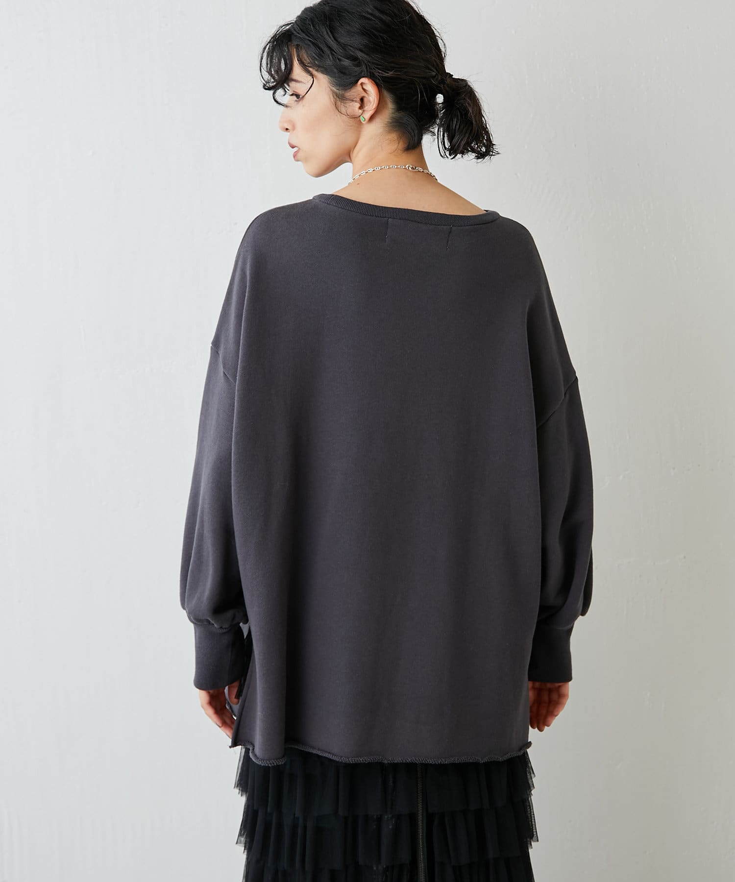 ロゴと長めの丈感が特徴のスウェットプルオーバー。自然とこなれ感がでます。サイドのスリットがすっきりとした印象に。リアルバイアイテム!凄く使えますよ。