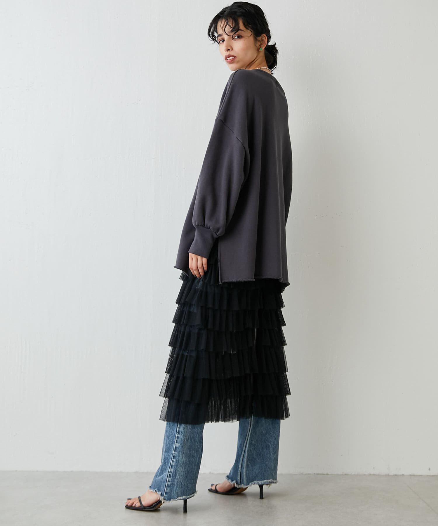 ■肩をたっぷりとドロップさせたゆったりめのシルエットが抜け感を演出。