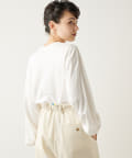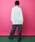 ■ユニセックスで着られるサイズ感に、襟元はしっかりと詰まったクルーネックでルーズに見えすぎない絶妙なバランスに。
