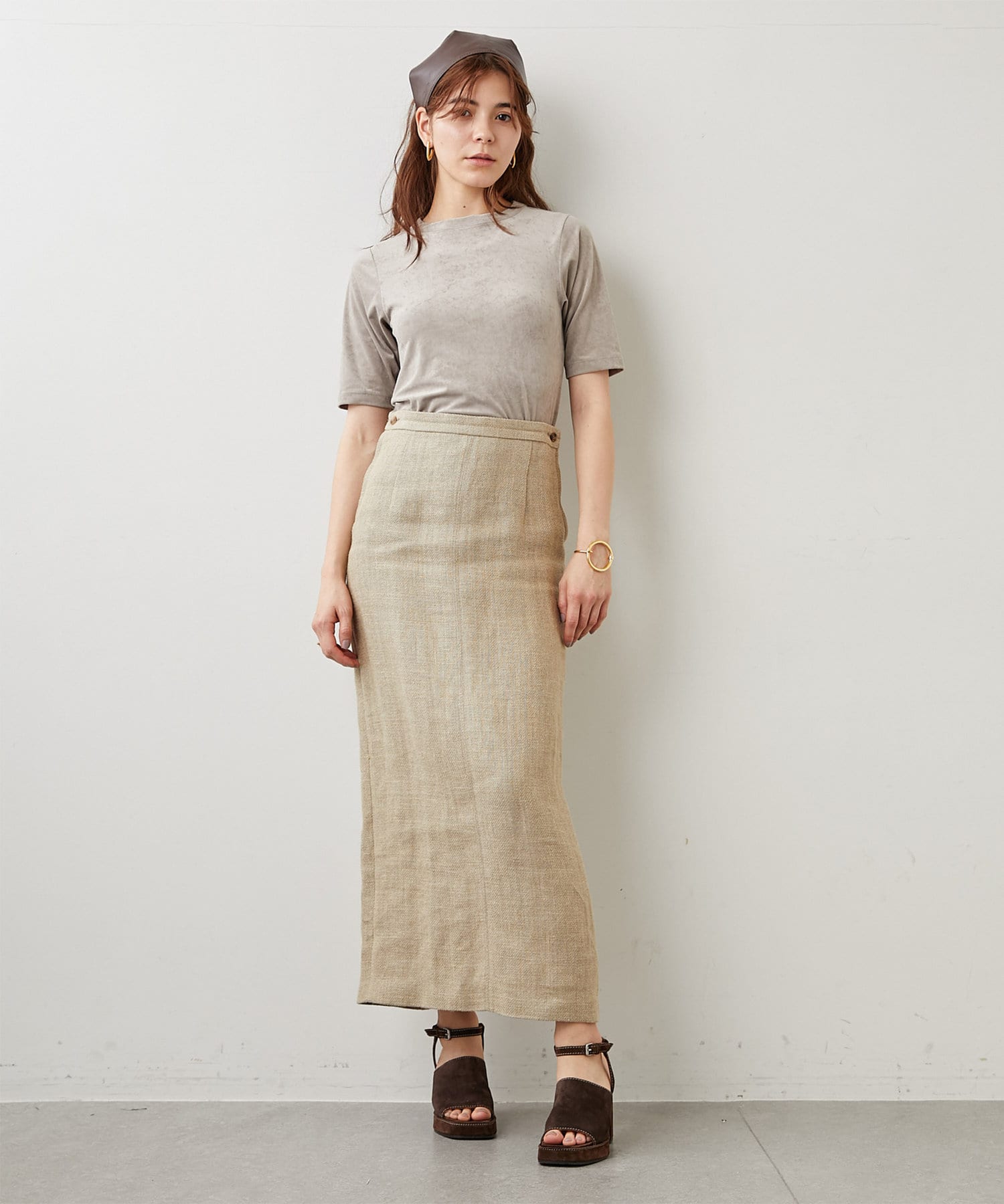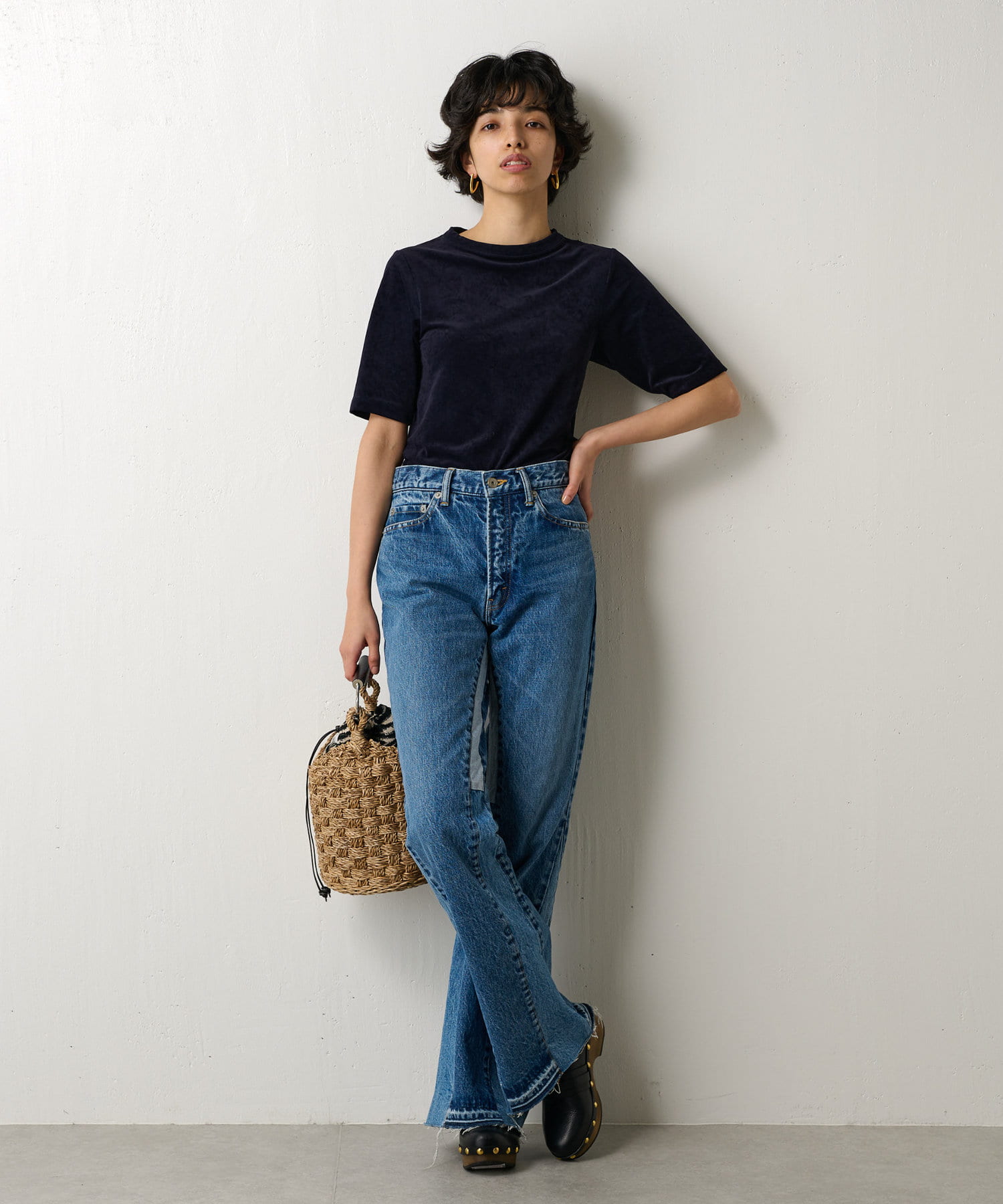 大人のラフスタイルを楽しめるベロア素材のカットソー