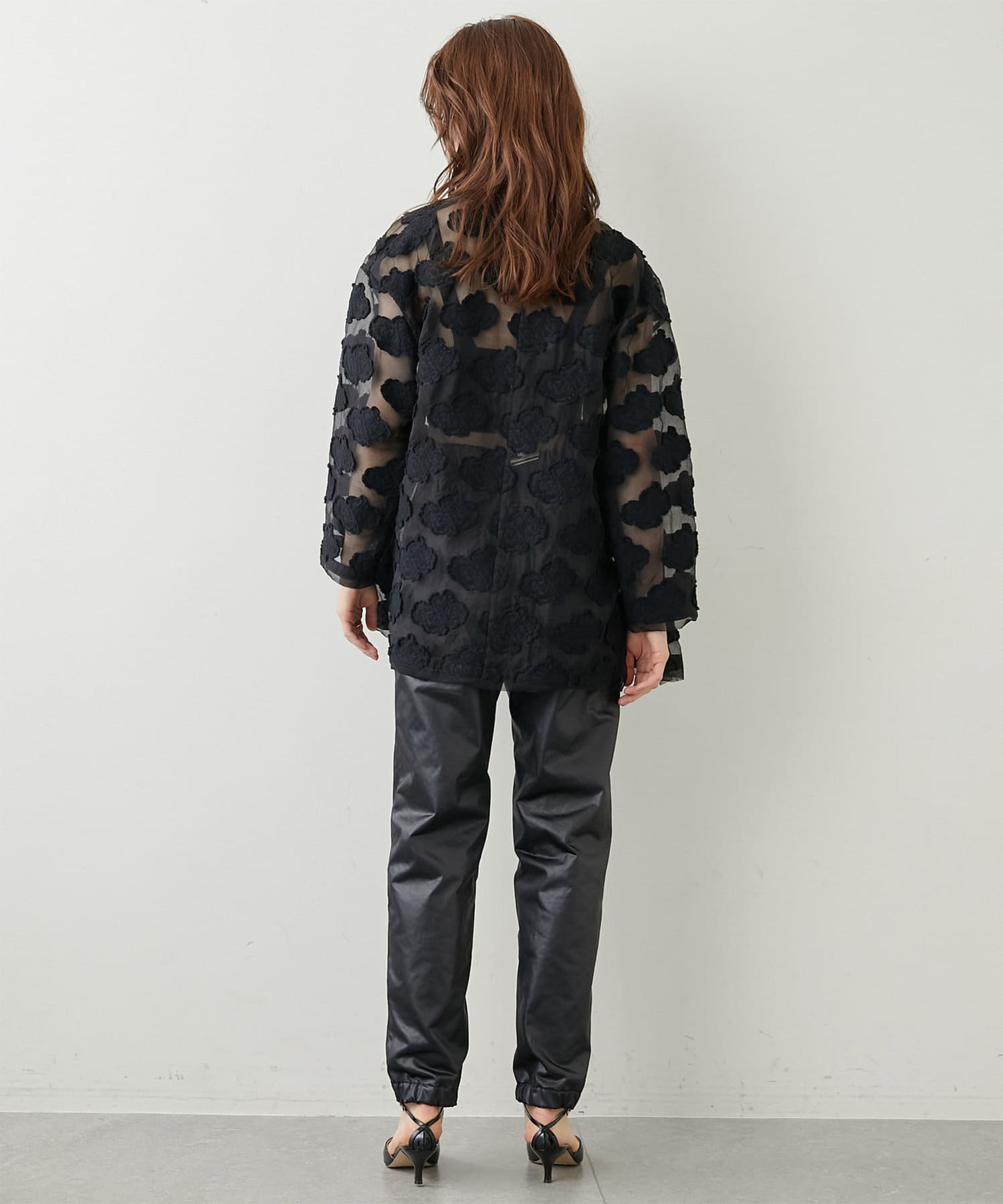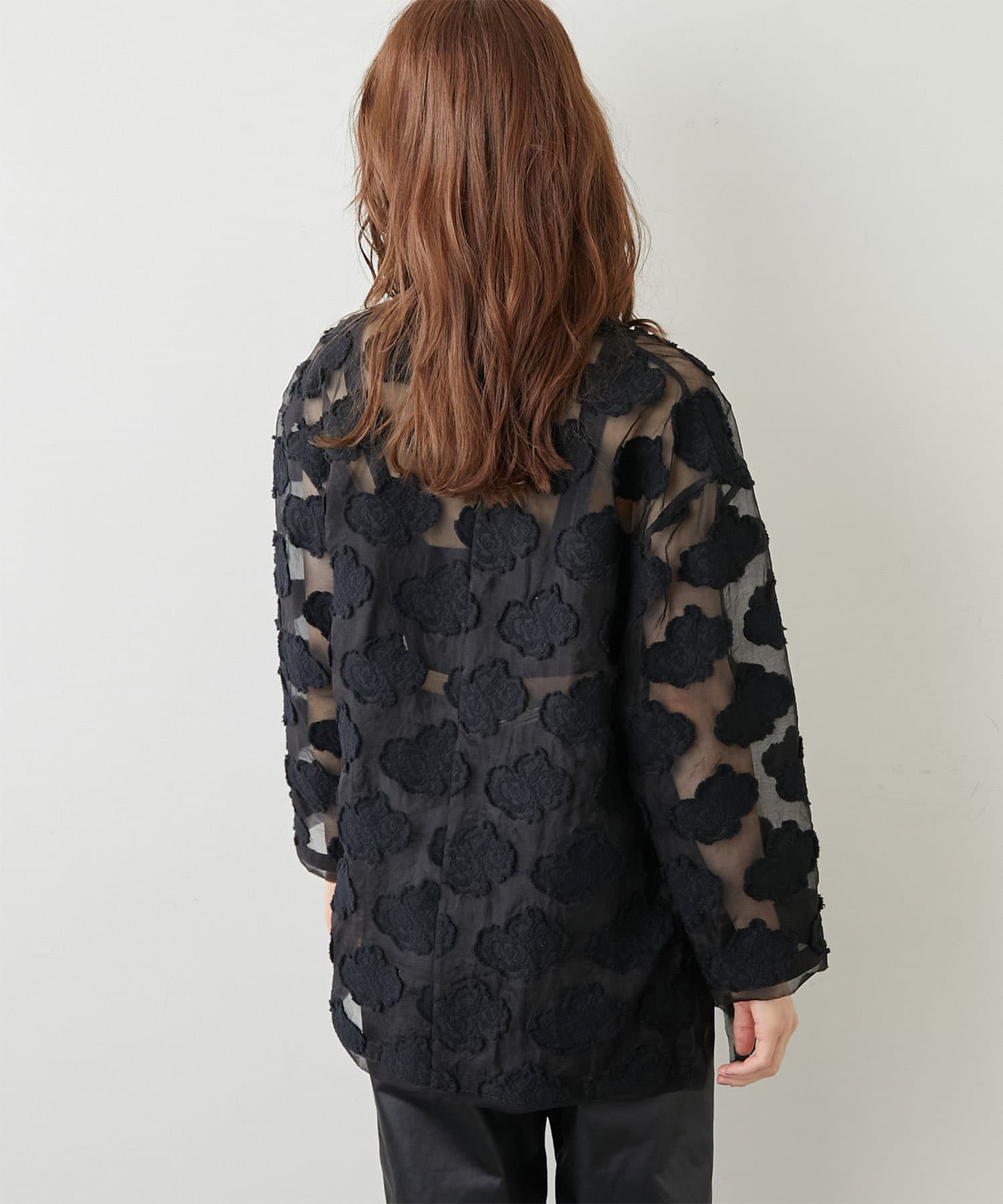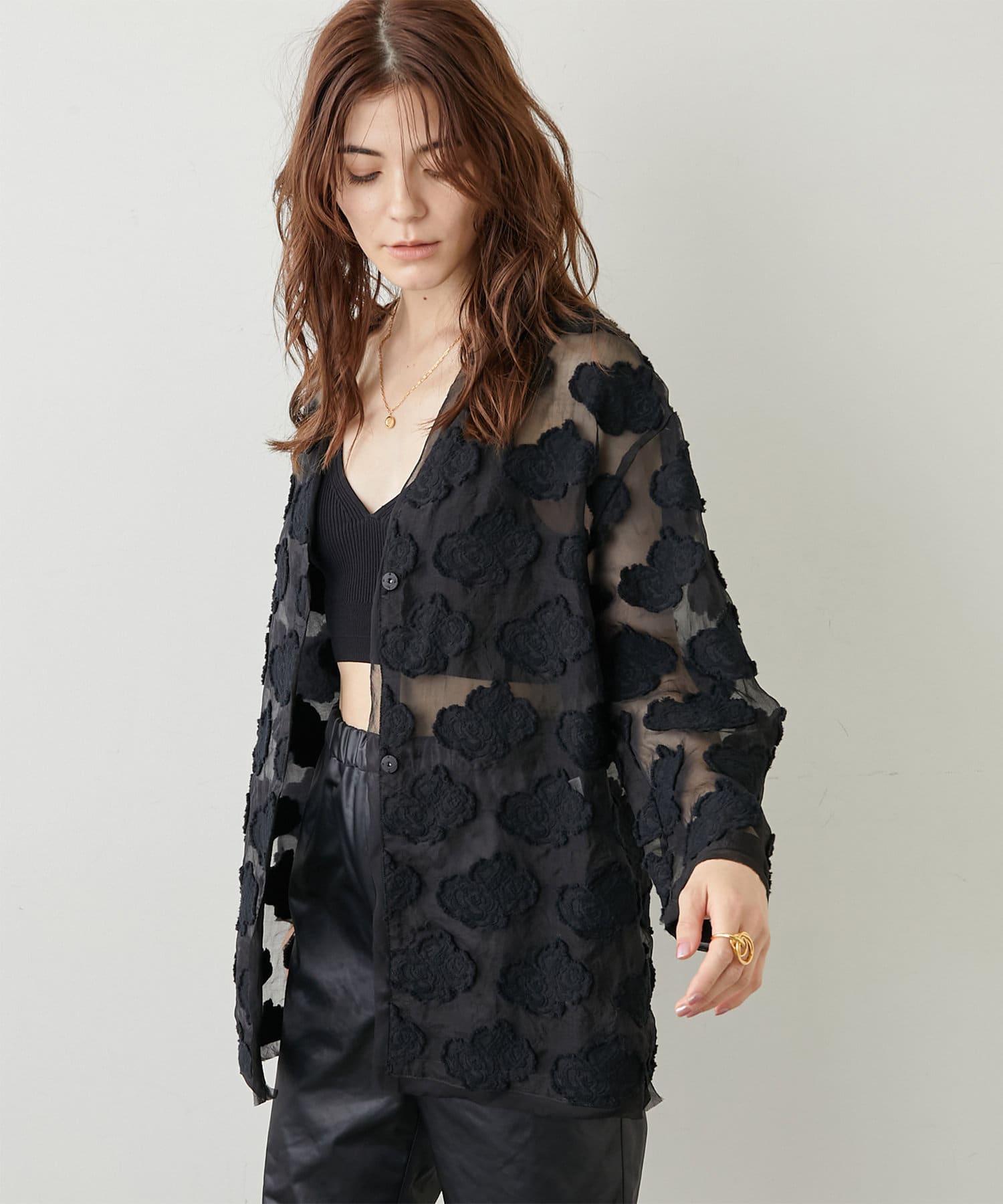 ■しっかり透け感のある風合いで、インナーに合わせるアイテムやカラーによって異なる雰囲気を楽しめる一枚。