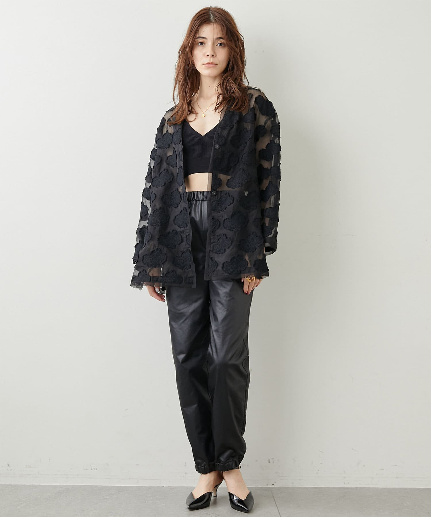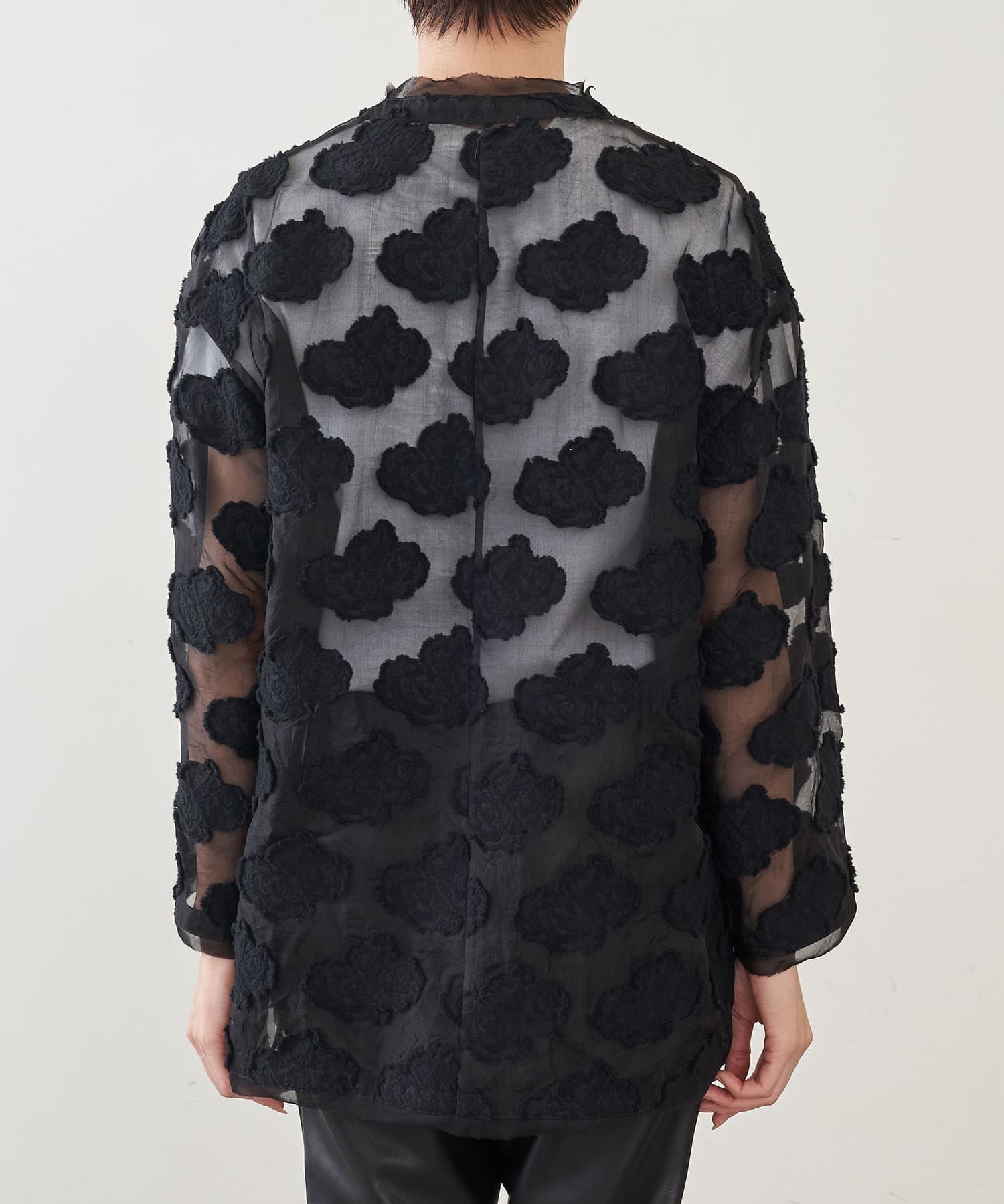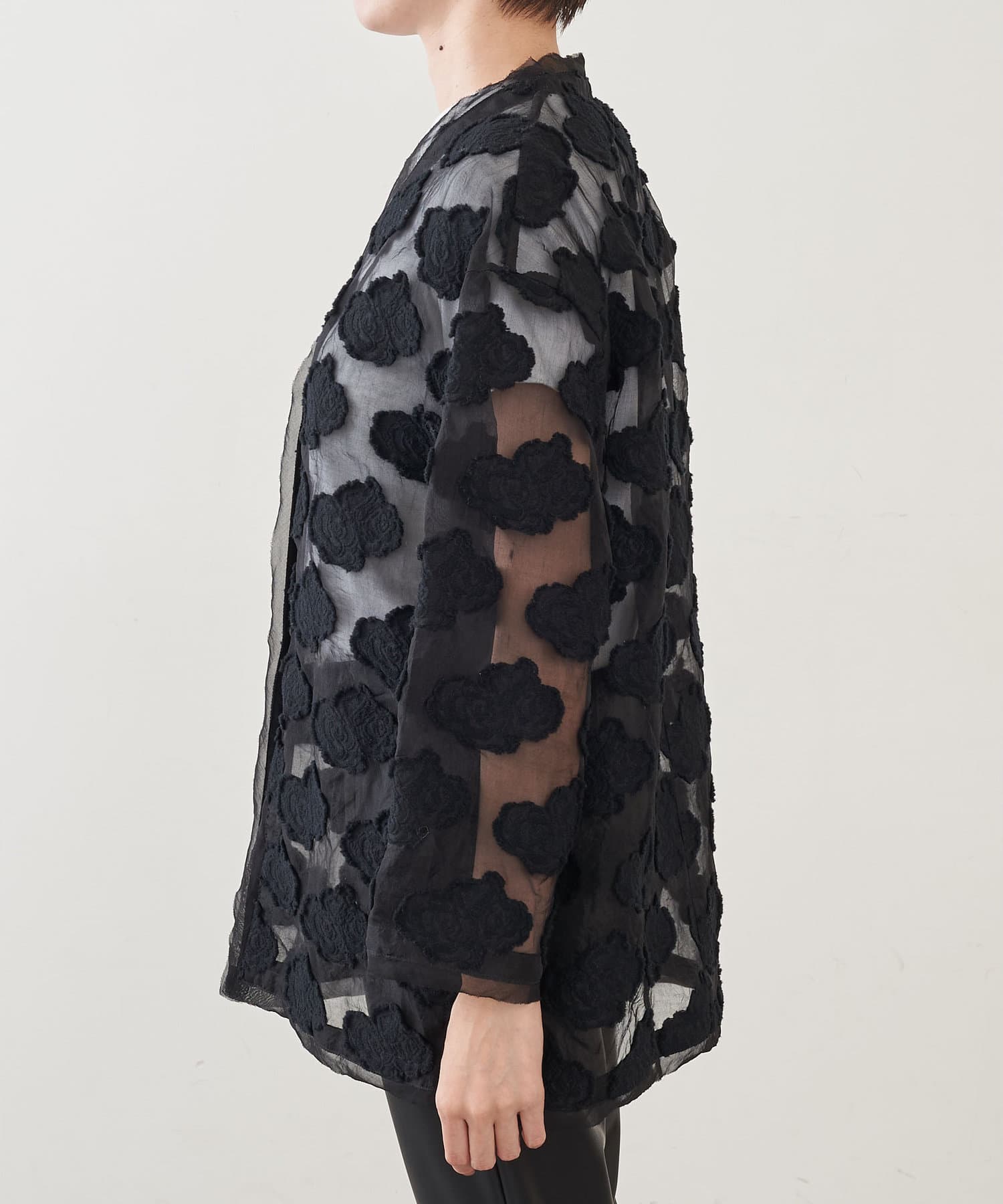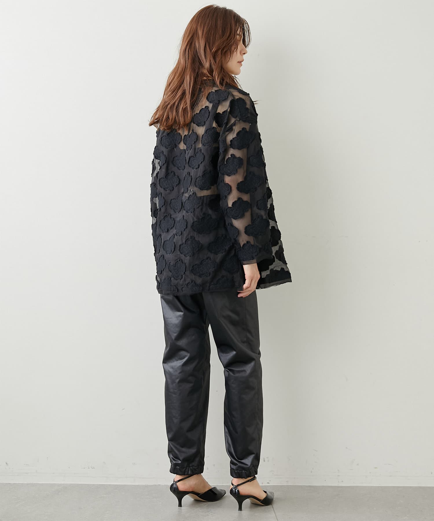 ■しっかり透け感のある風合いで、インナーに合わせるアイテムやカラーによって異なる雰囲気を楽しめる一枚。