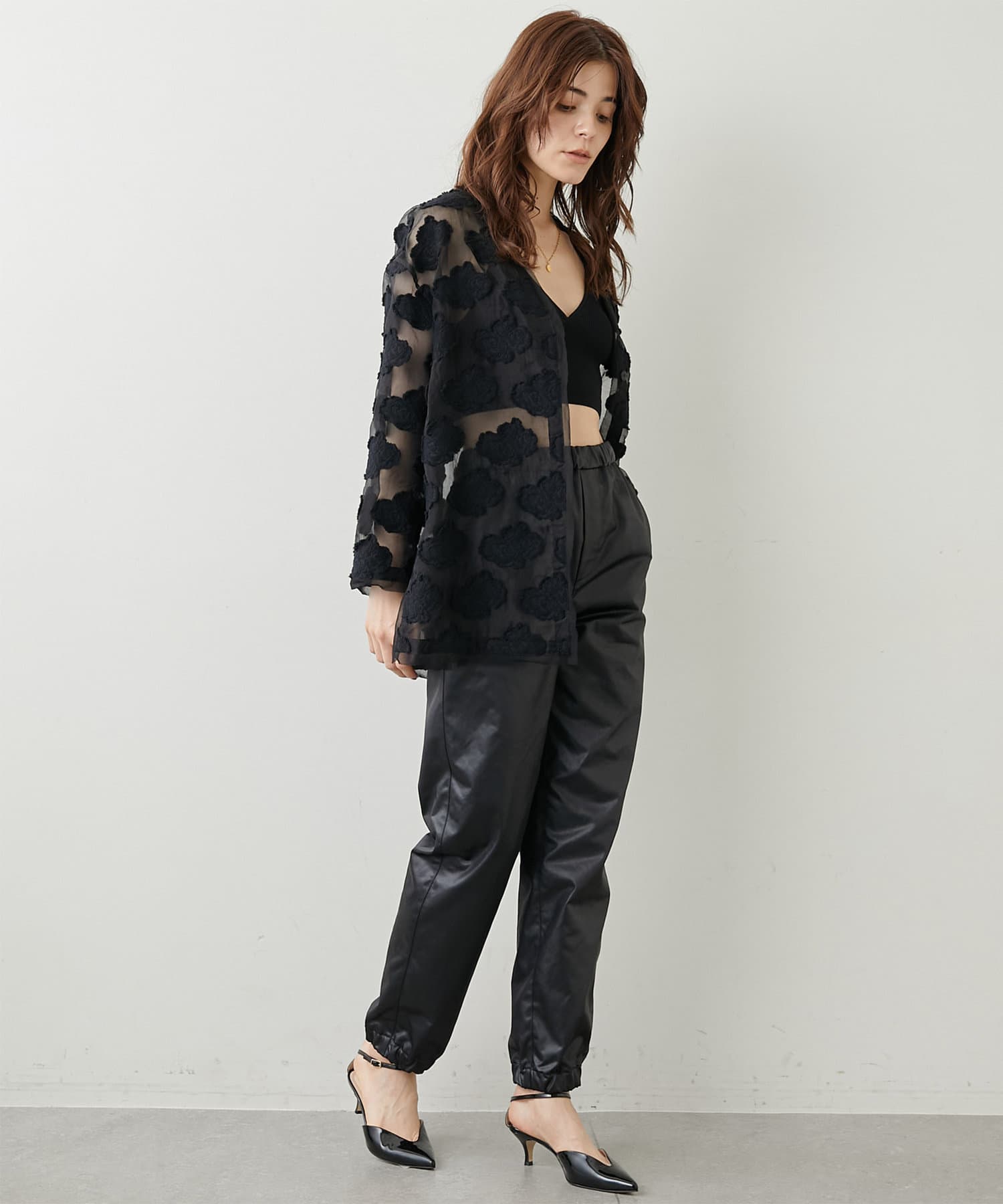 ジャガード部分と透ける部分のコントラストが華やかなブラック。