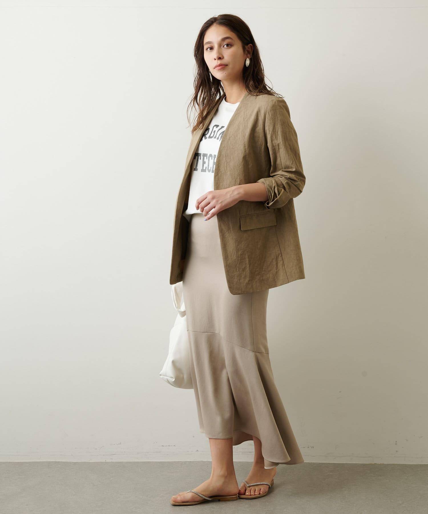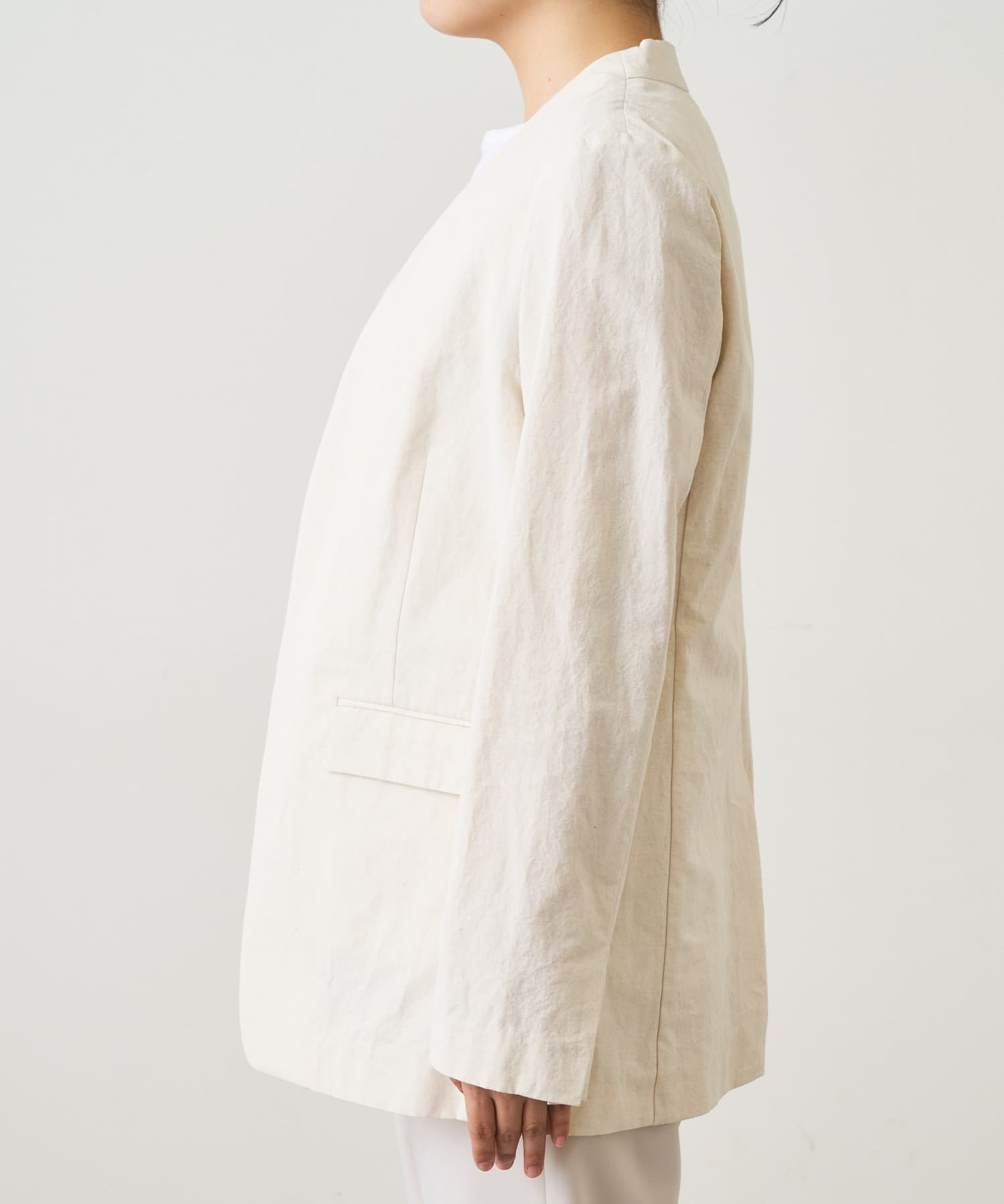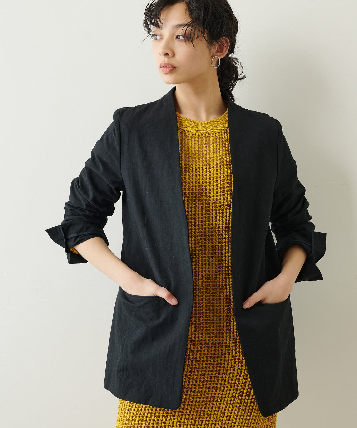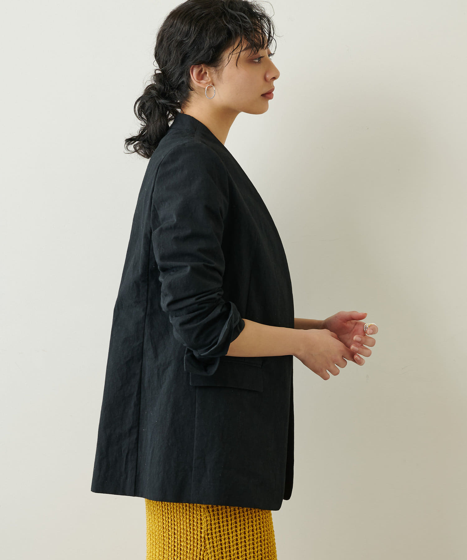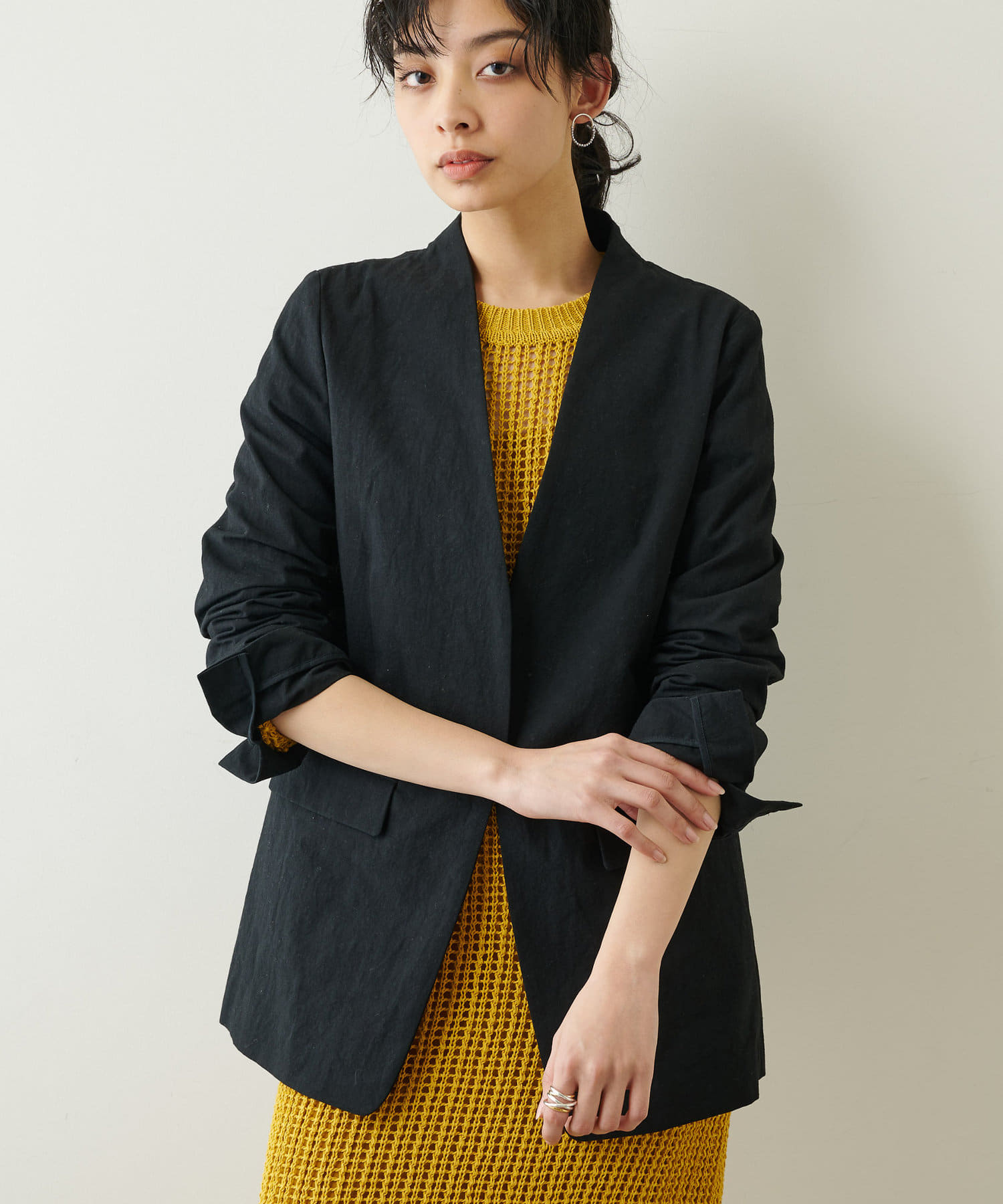 ■裏地がないため袖をたくしあげても様になり、カーディガン感覚で気軽に使える抜け感ジャケット。