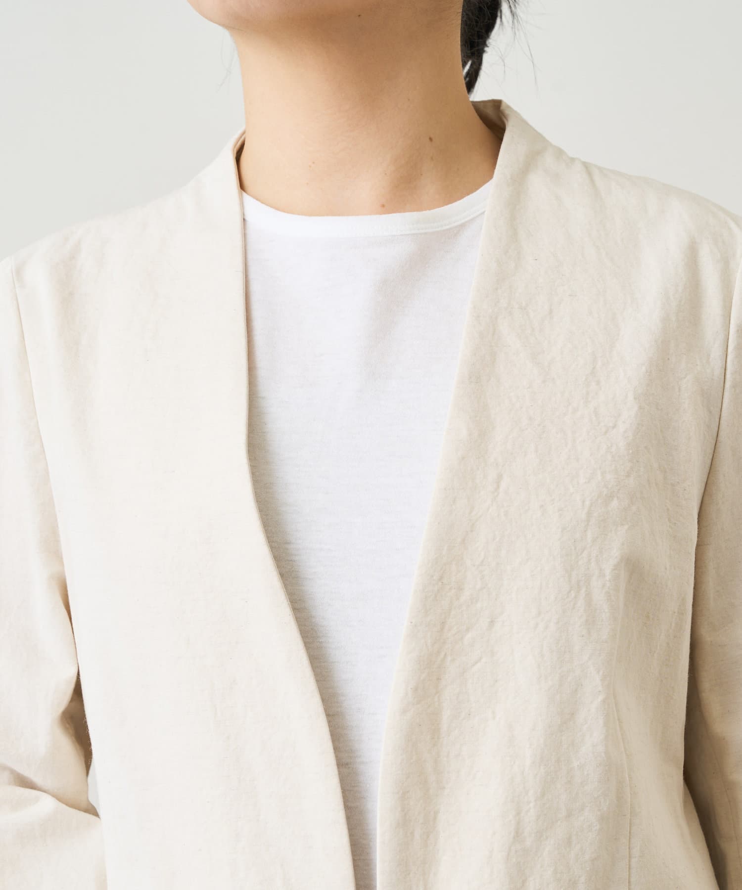 軽快に羽織れる、デイリーユースなノーカラージャケット