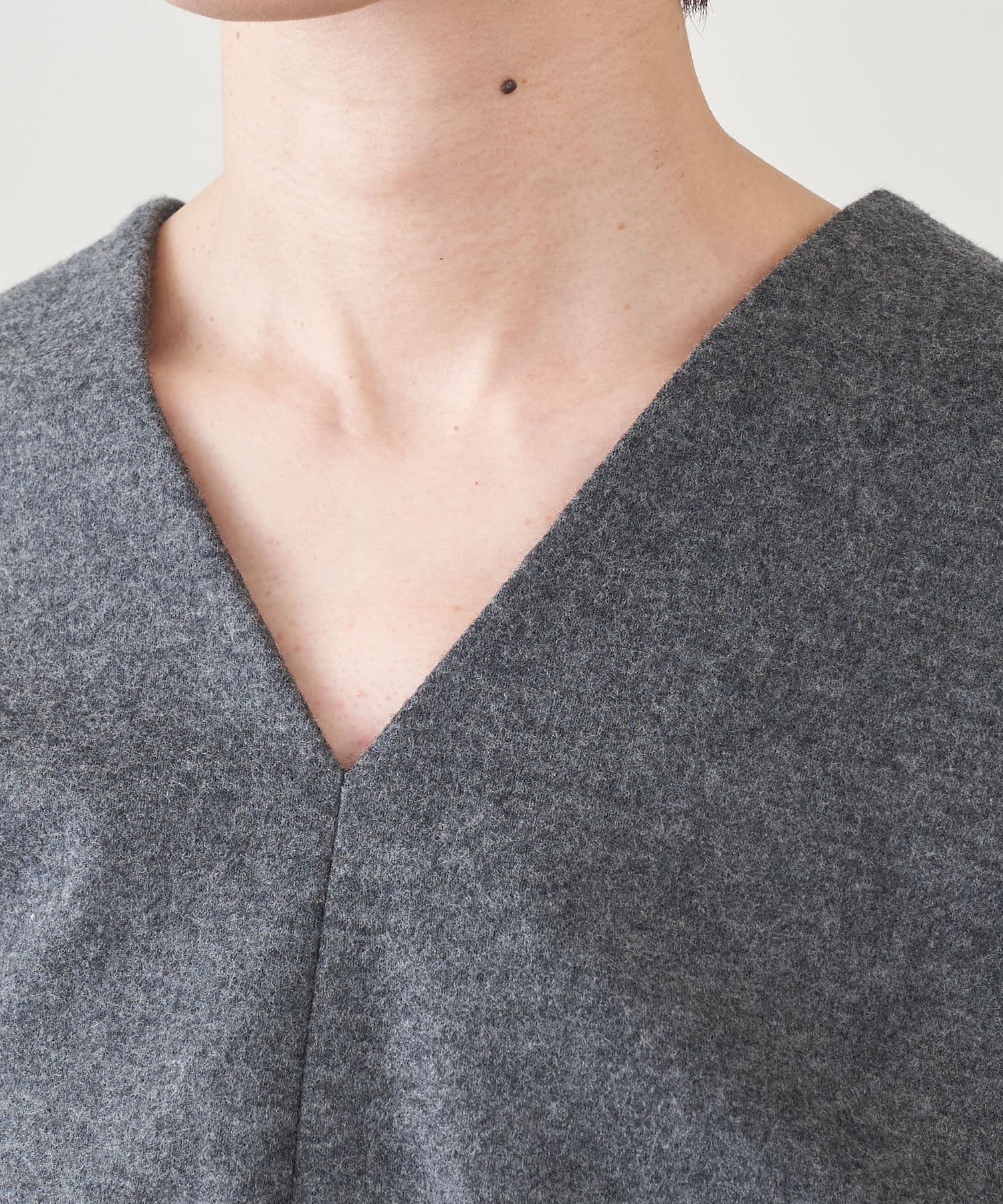 ■Vネックがデコルテをきれいに見せ顔回りをシャープに演出。