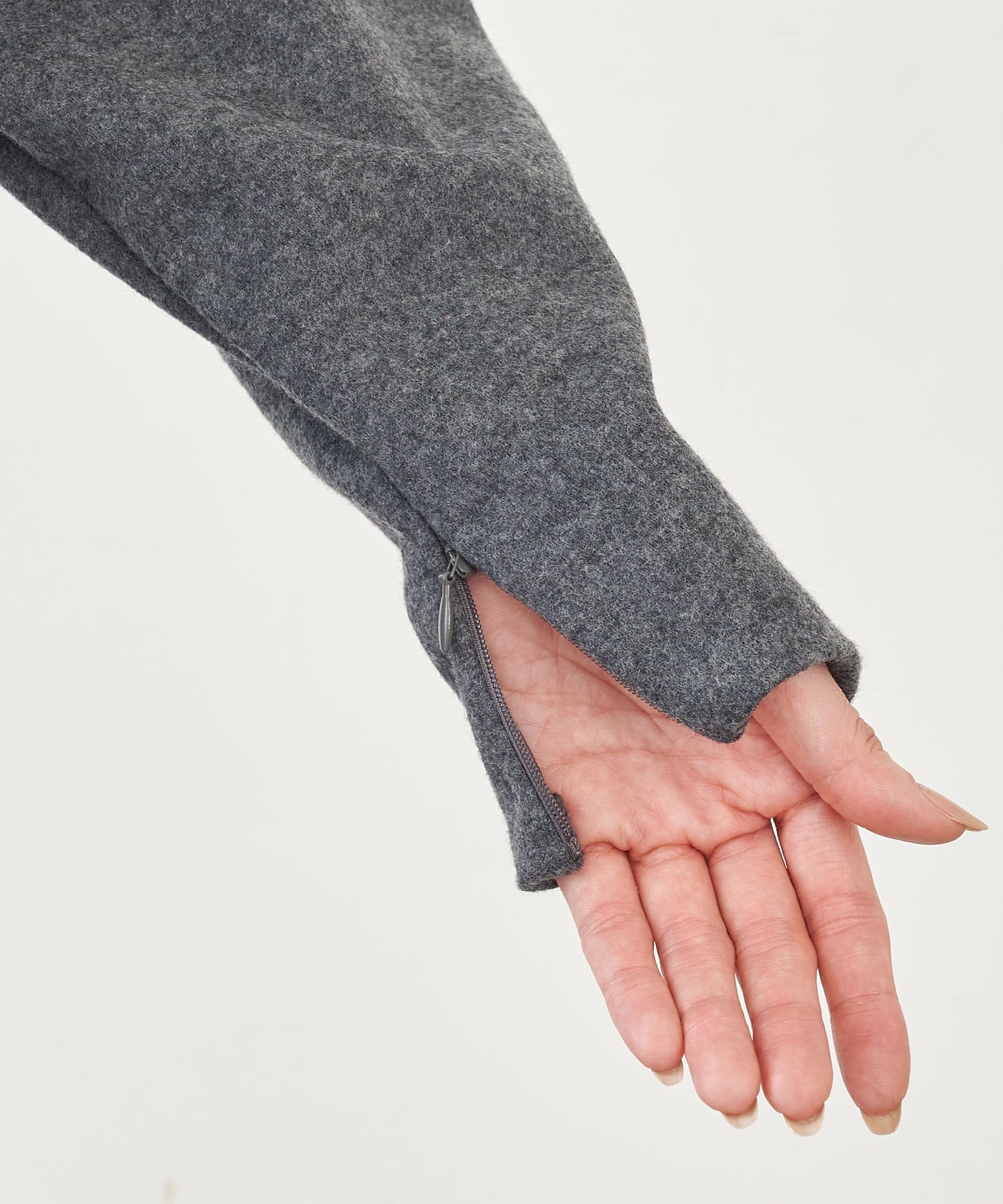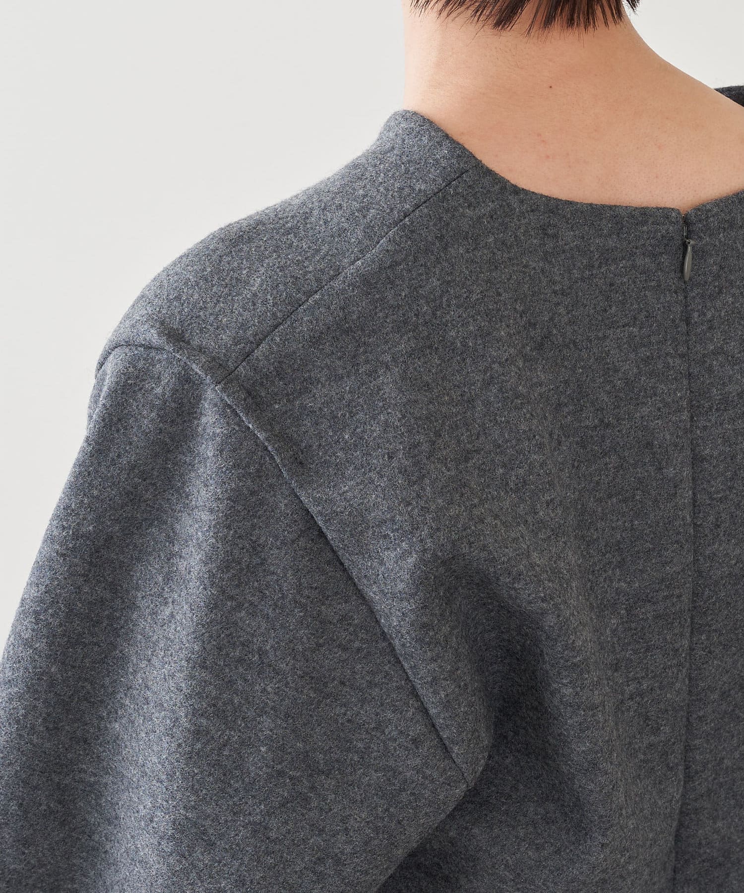 コンパクトに編み上げたウールスムースを時間をかけてしっかりと圧縮させ、織物のメルトンのように仕上げた生地。
