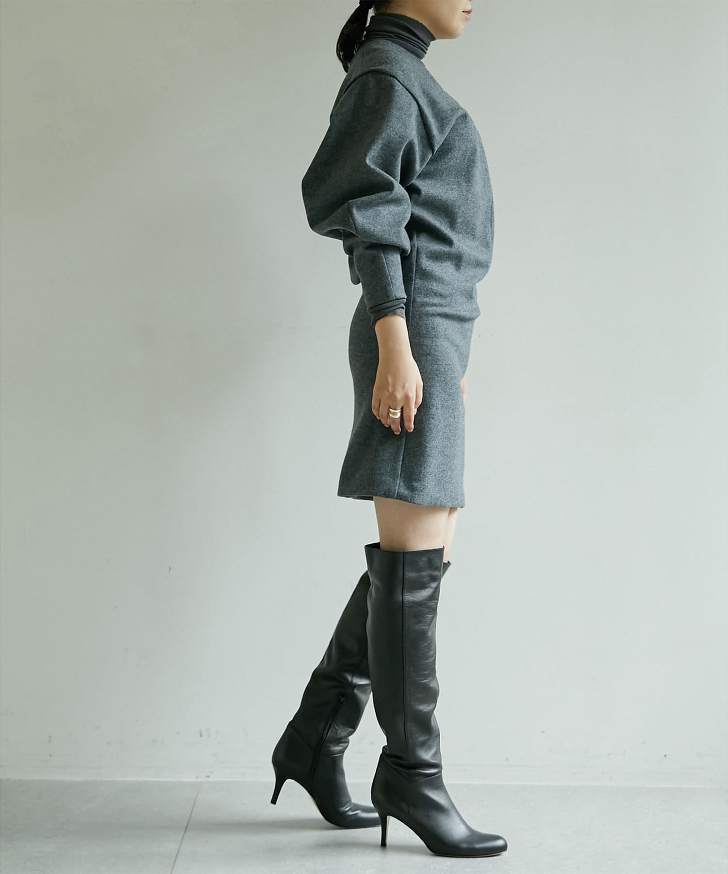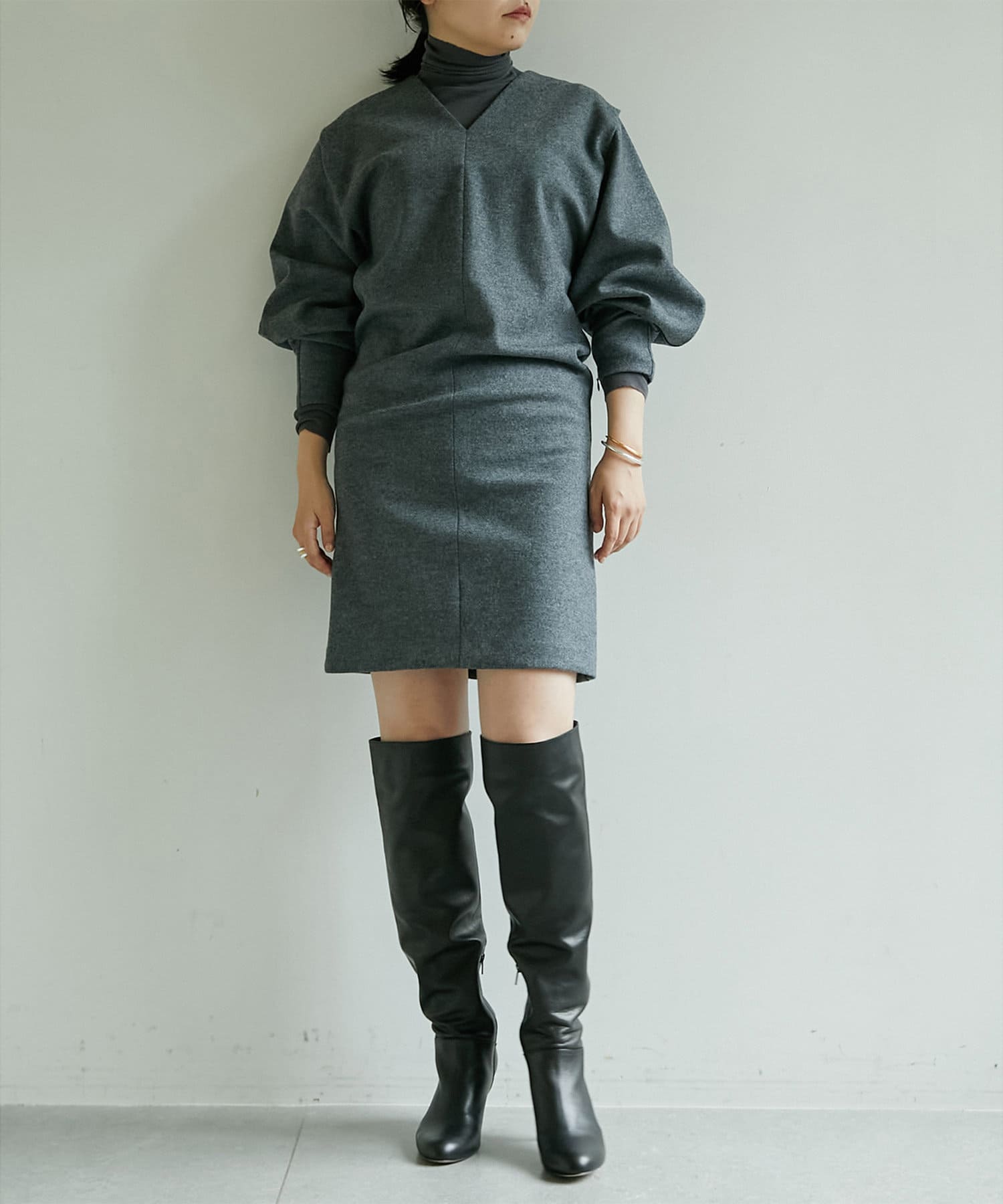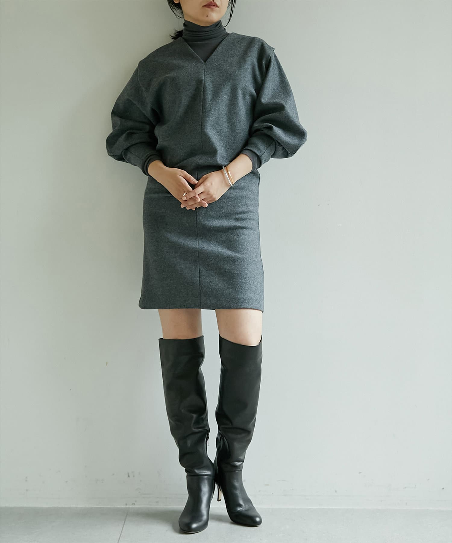 ■シーズンコーデに軽やかさをプラスする短めの着丈は、トレンドのブーツスタイルとの相性も抜群。