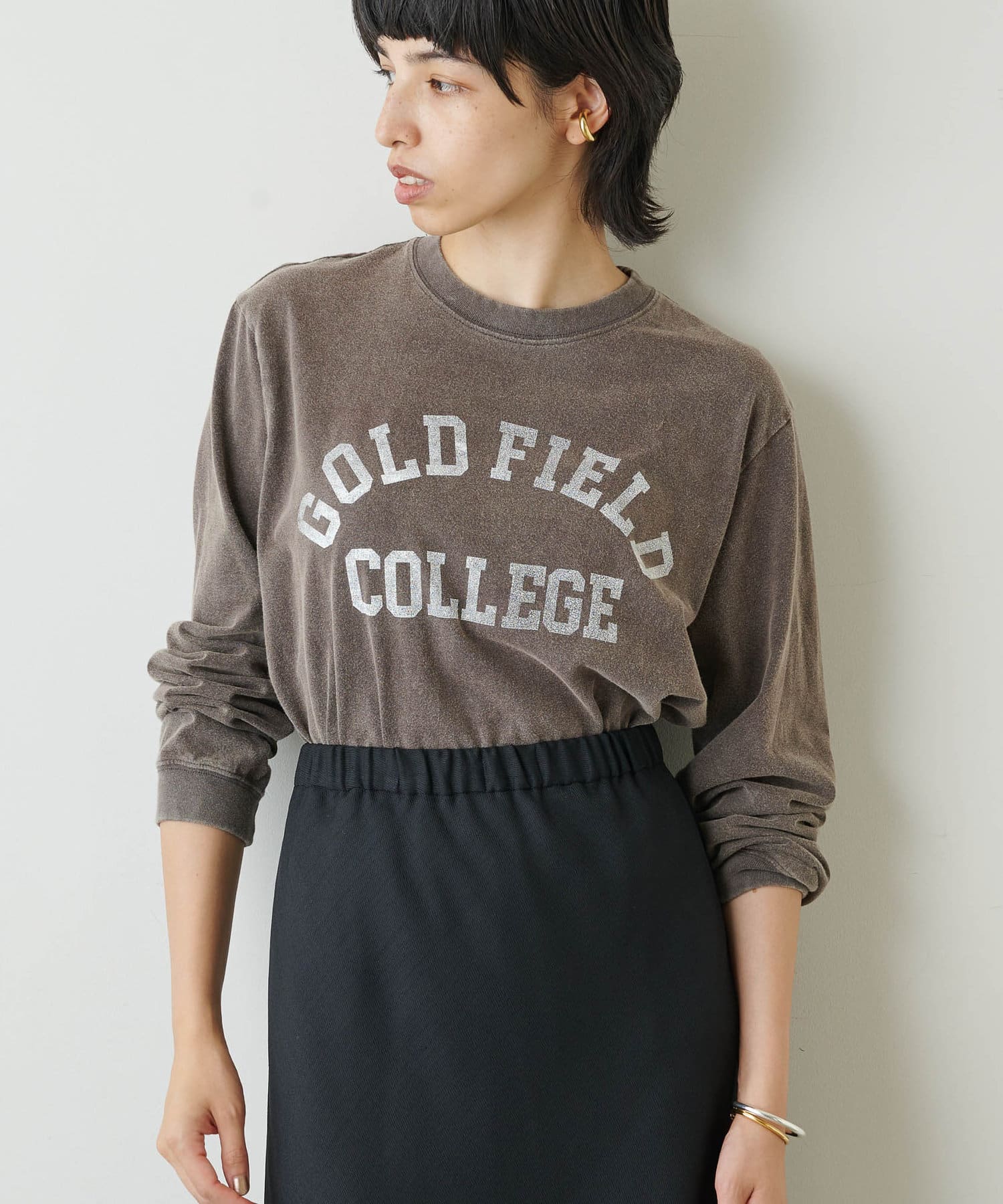 ■単品使いはもちろん、華奢なピアスなどのアイテムとの重ね付けもおすすめ。