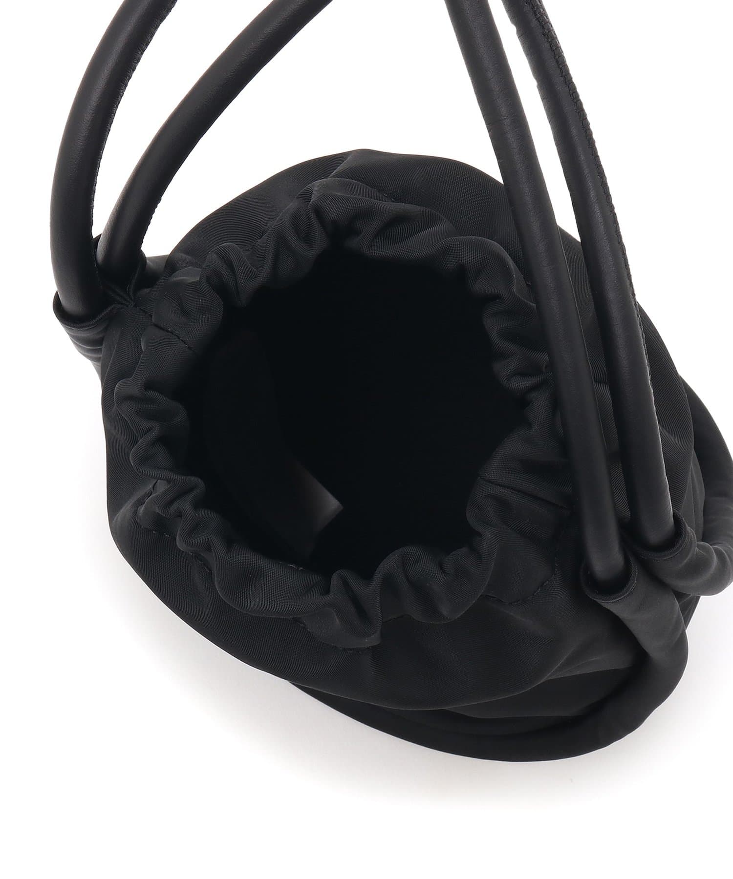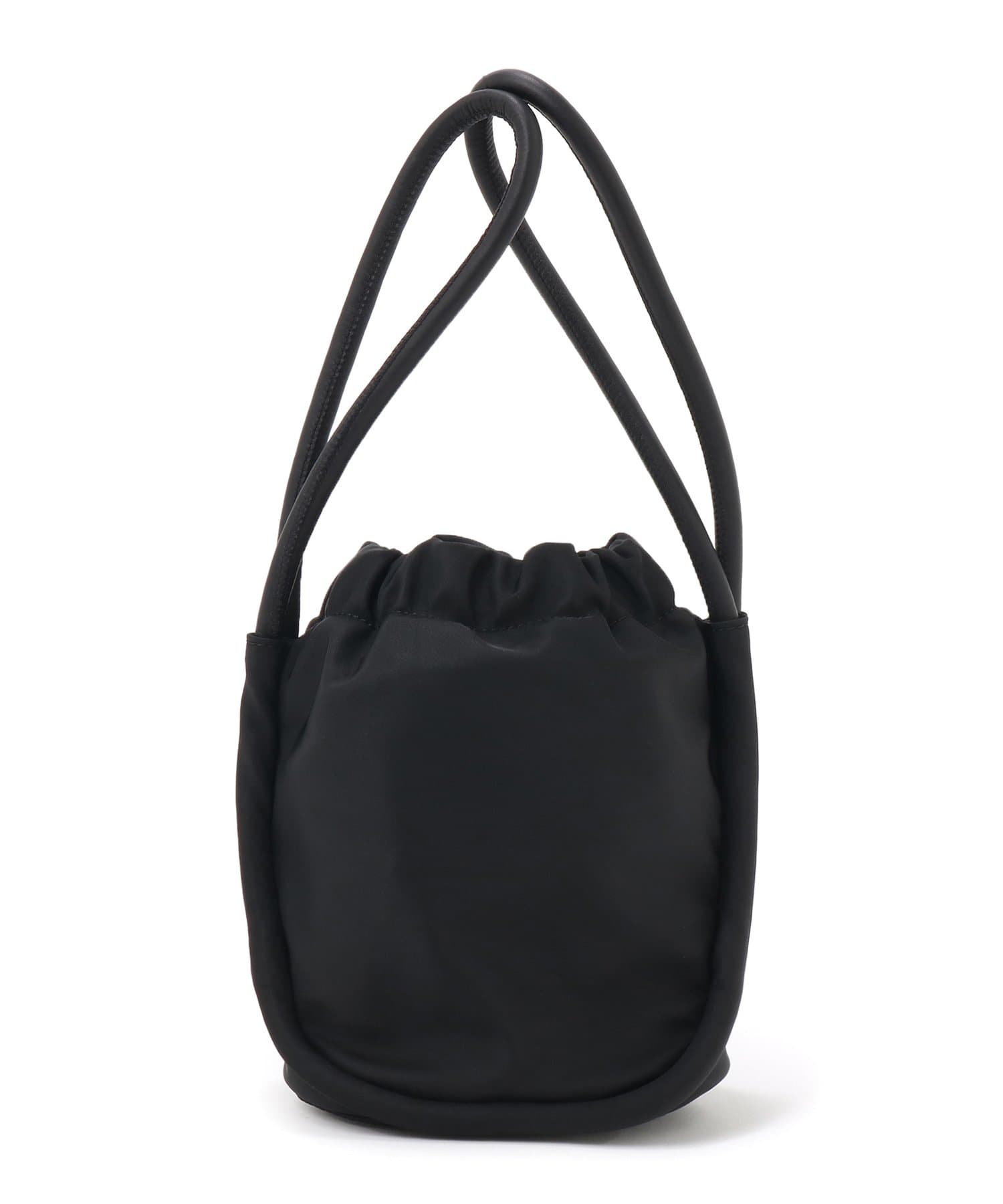 ■ミニマルなフォルムがモードな雰囲気の巾着型ナイロンバッグ。
