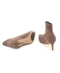 ■スマートなニット素材で仕上げられたヒールショートブーツ。