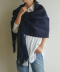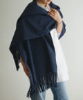 ■使い勝手の良い大判は、ケープやポンチョのように肩から羽織るアレンジもおすすめ。
