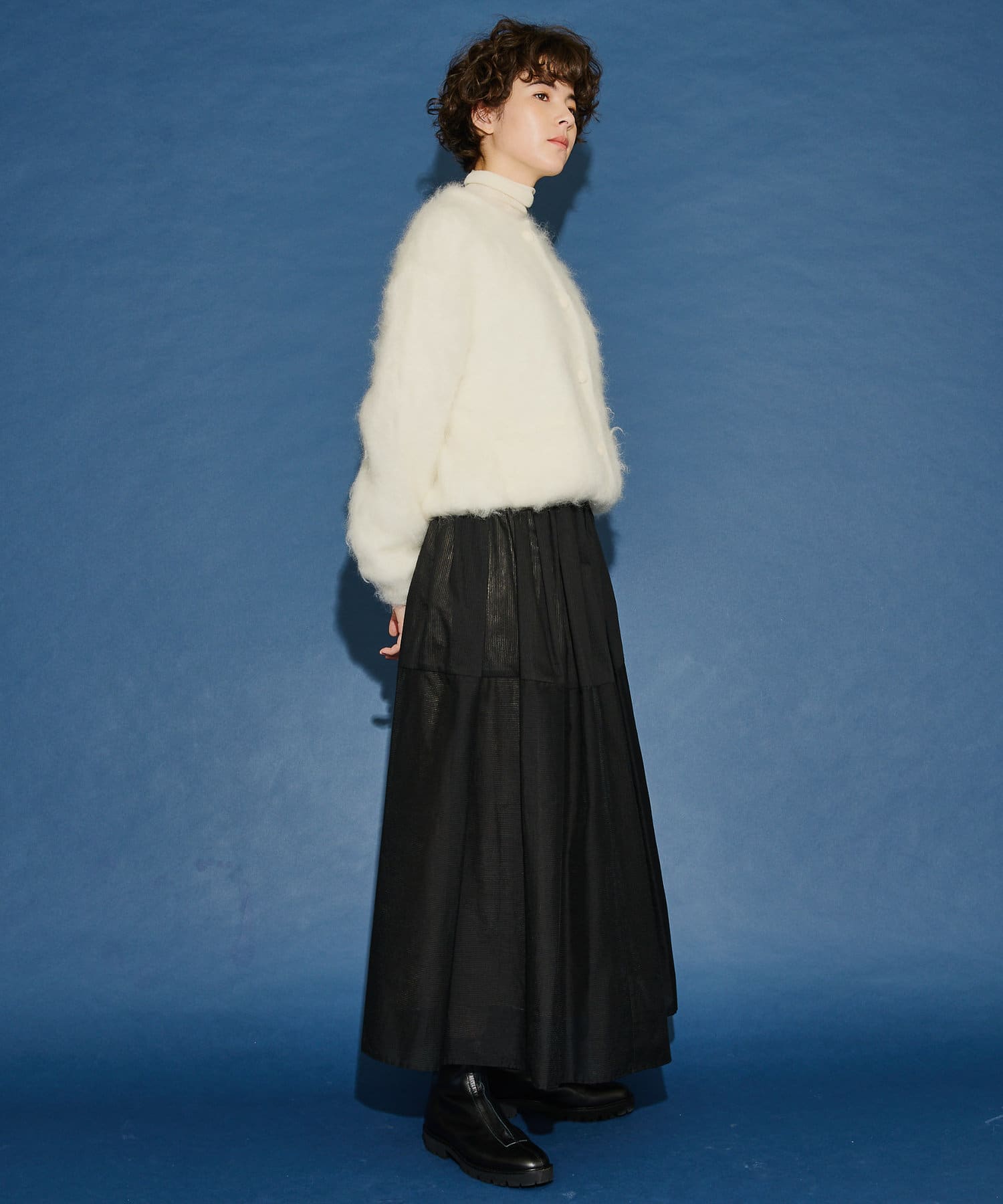 ■たっぷりと分量を取ったスカートは、Tシャツなどでカジュアルに合わせても華やかなスタイルに仕上げてくれるアイテム。