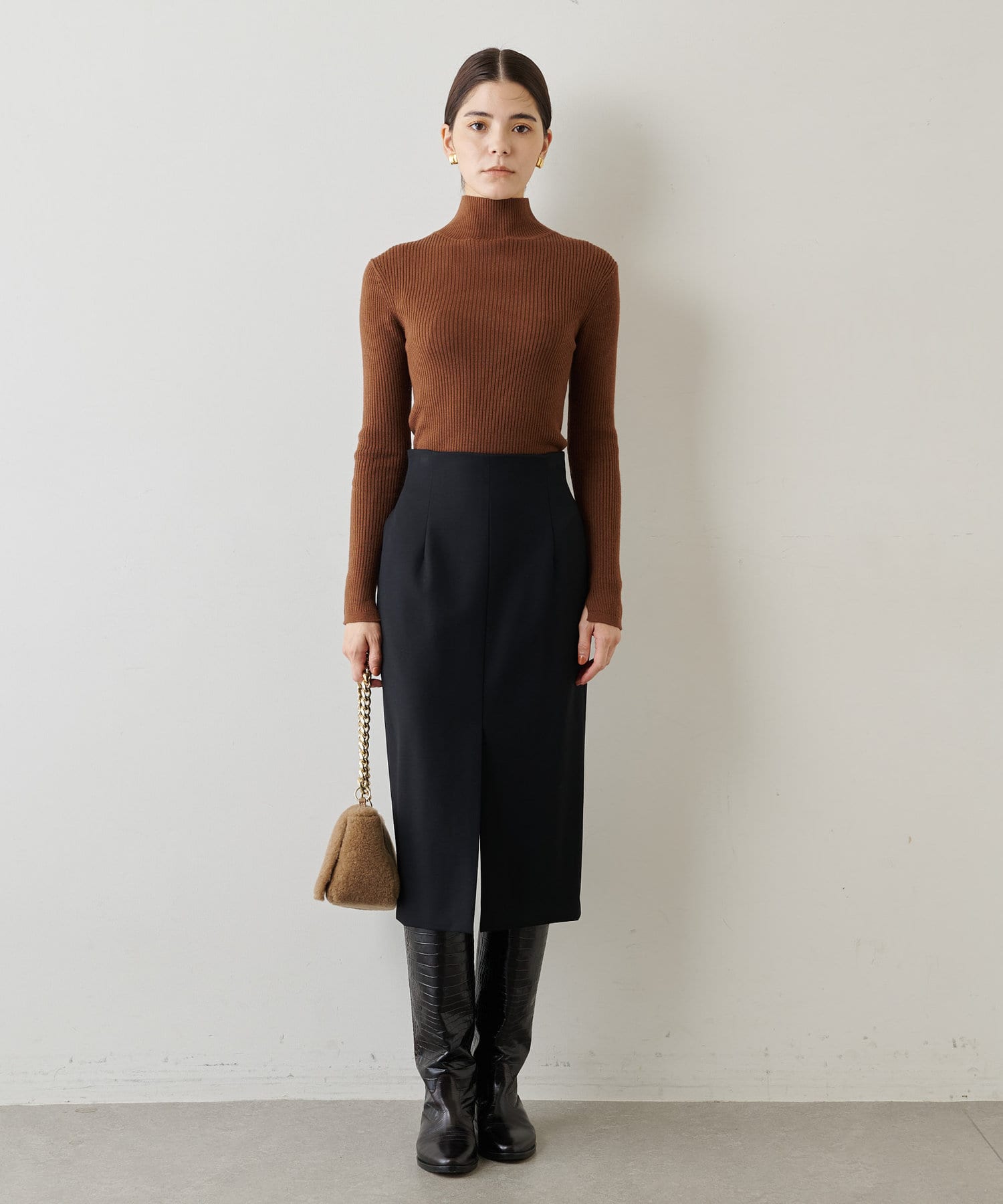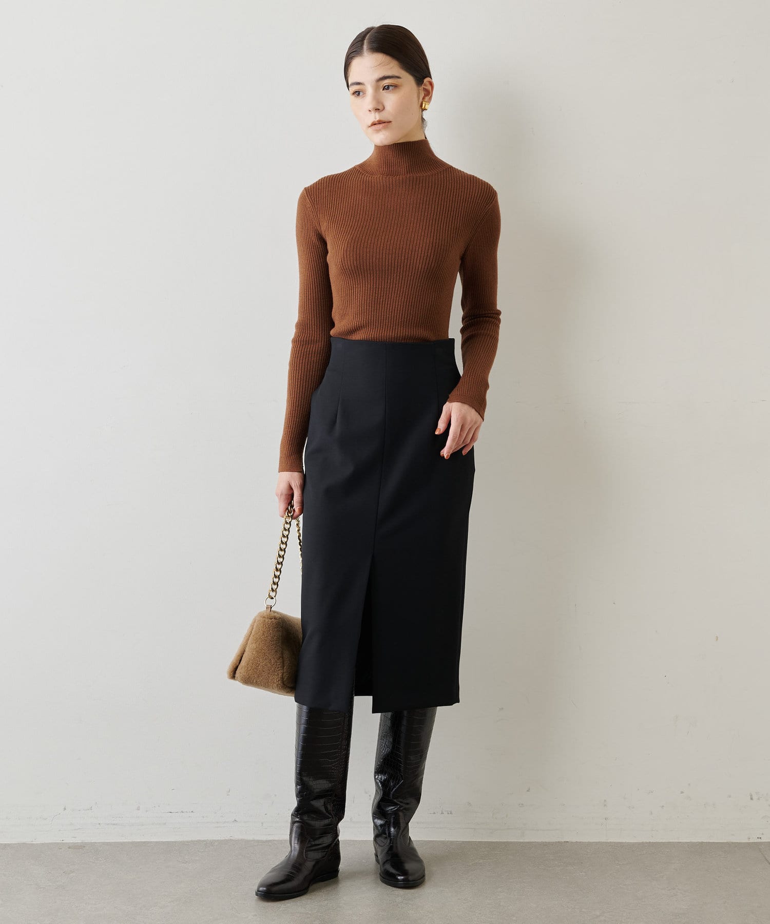 ■大人のワードローブに欠かせない上品なタイトスカートは、一枚は持っておきたいアイテム。