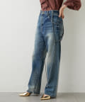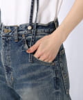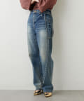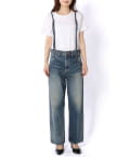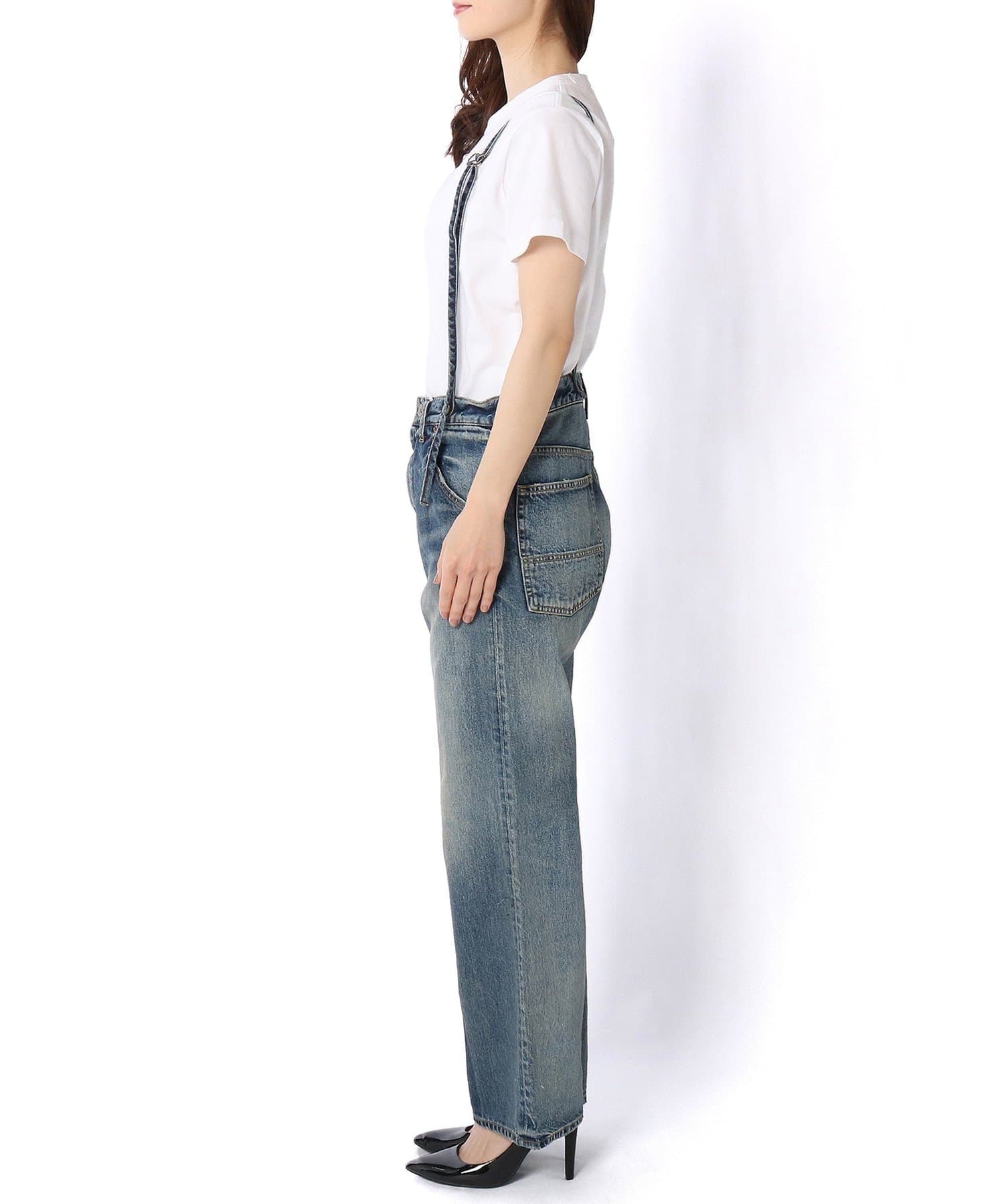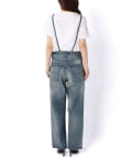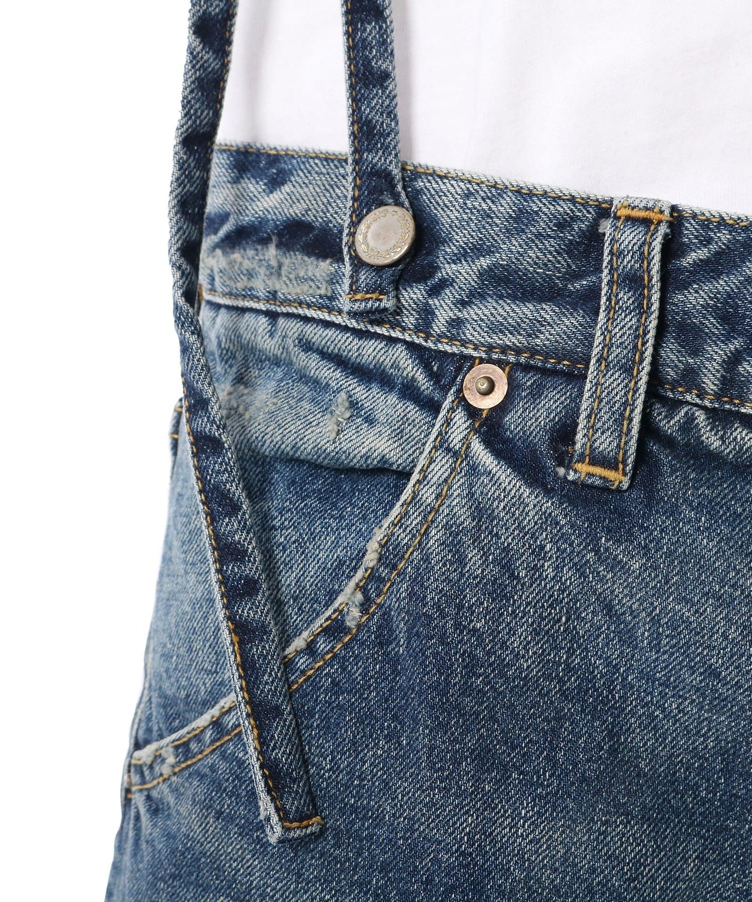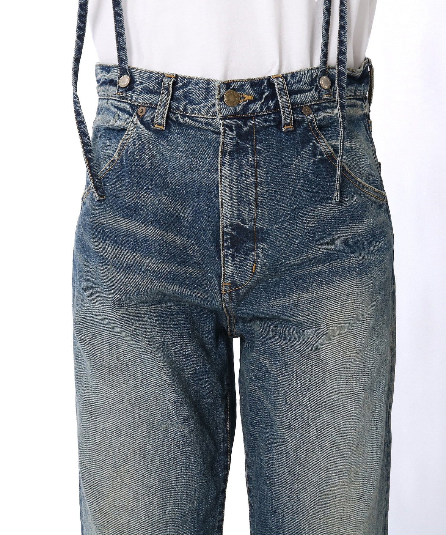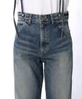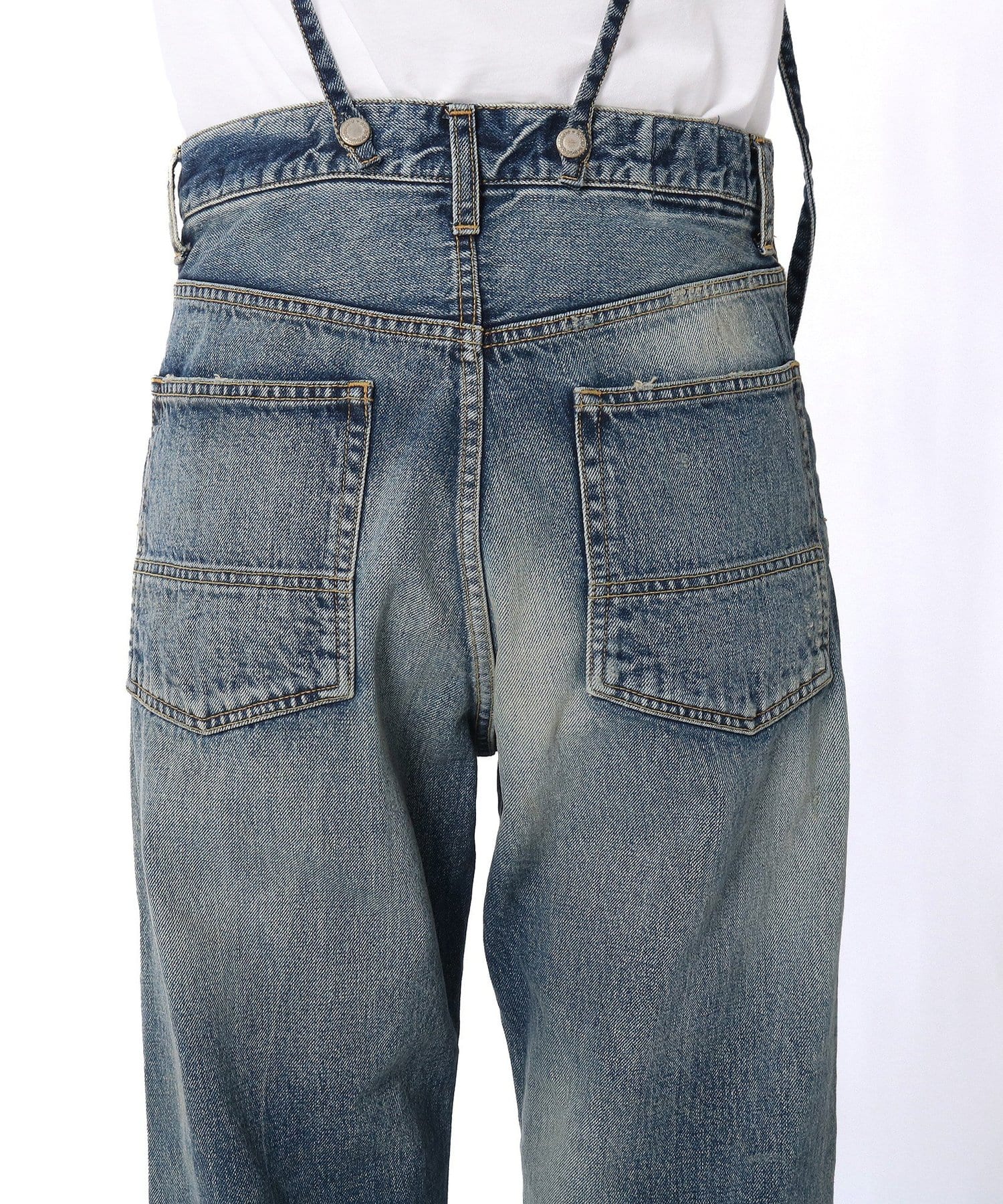 ■絶妙な色落ち具合とユーズド加工が特徴のサスペンダーデニムパンツ。