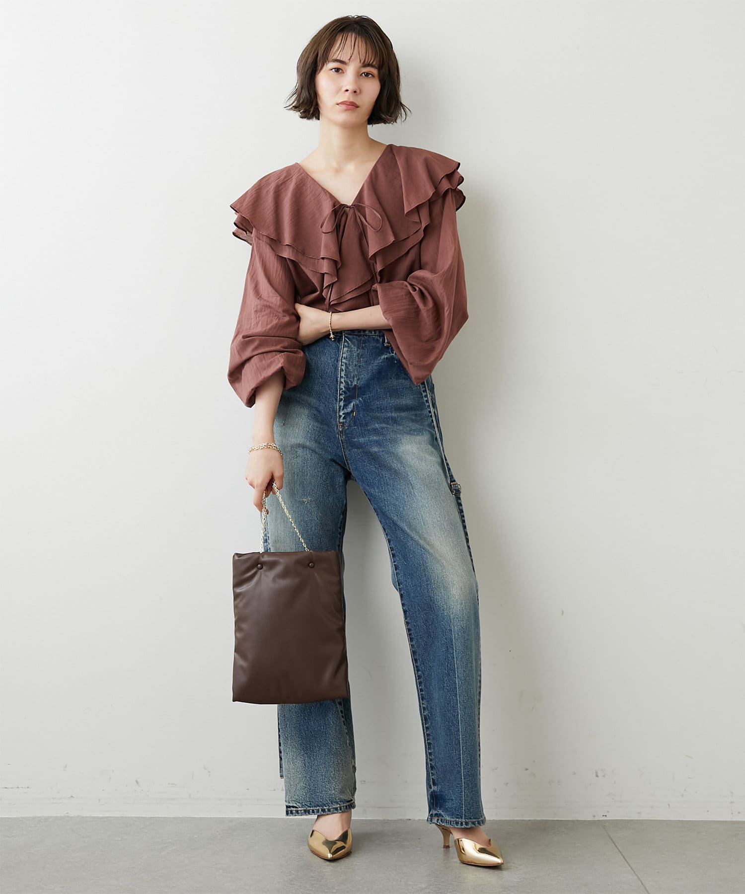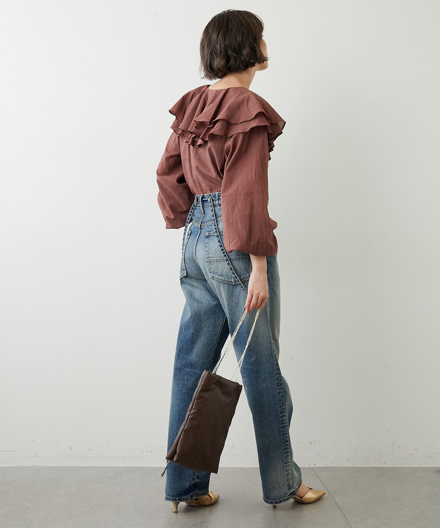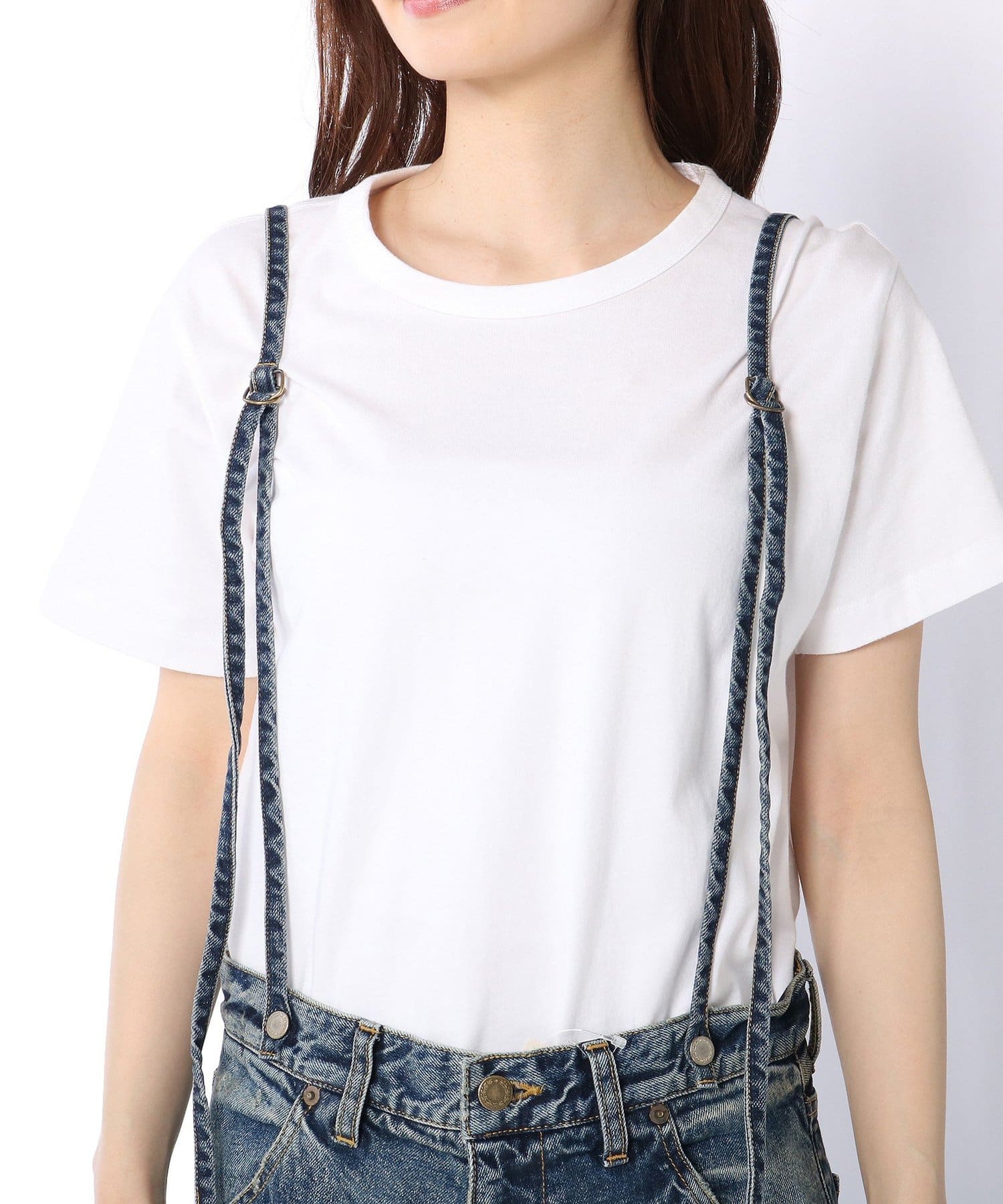 ■肩ひもを外してシンプルなストレートデニムとしても楽しめるデザイン。