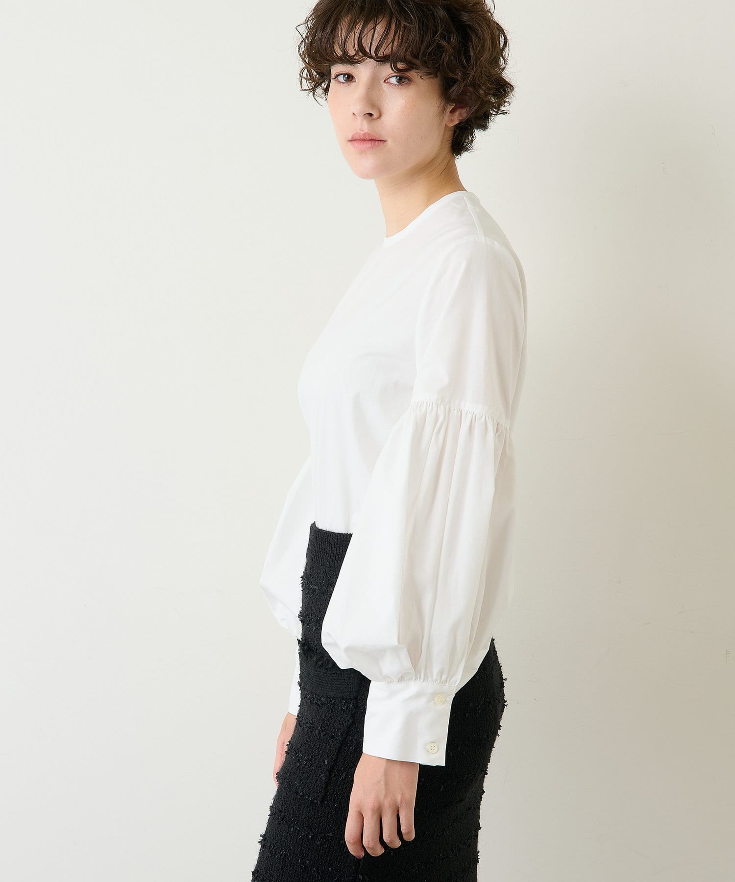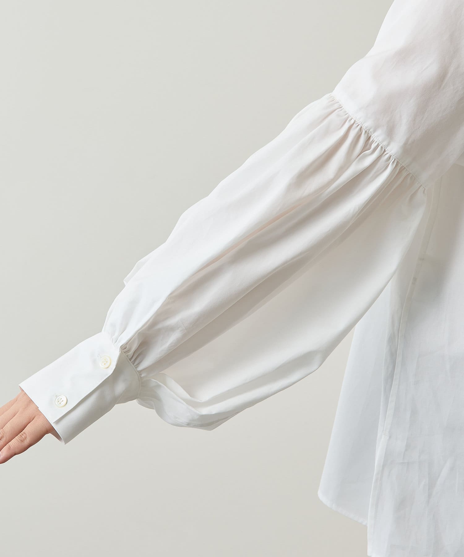 ■程よいハリと柔らかさをあわせ持つコットン素材が袖のフォルムを美しくキープ。