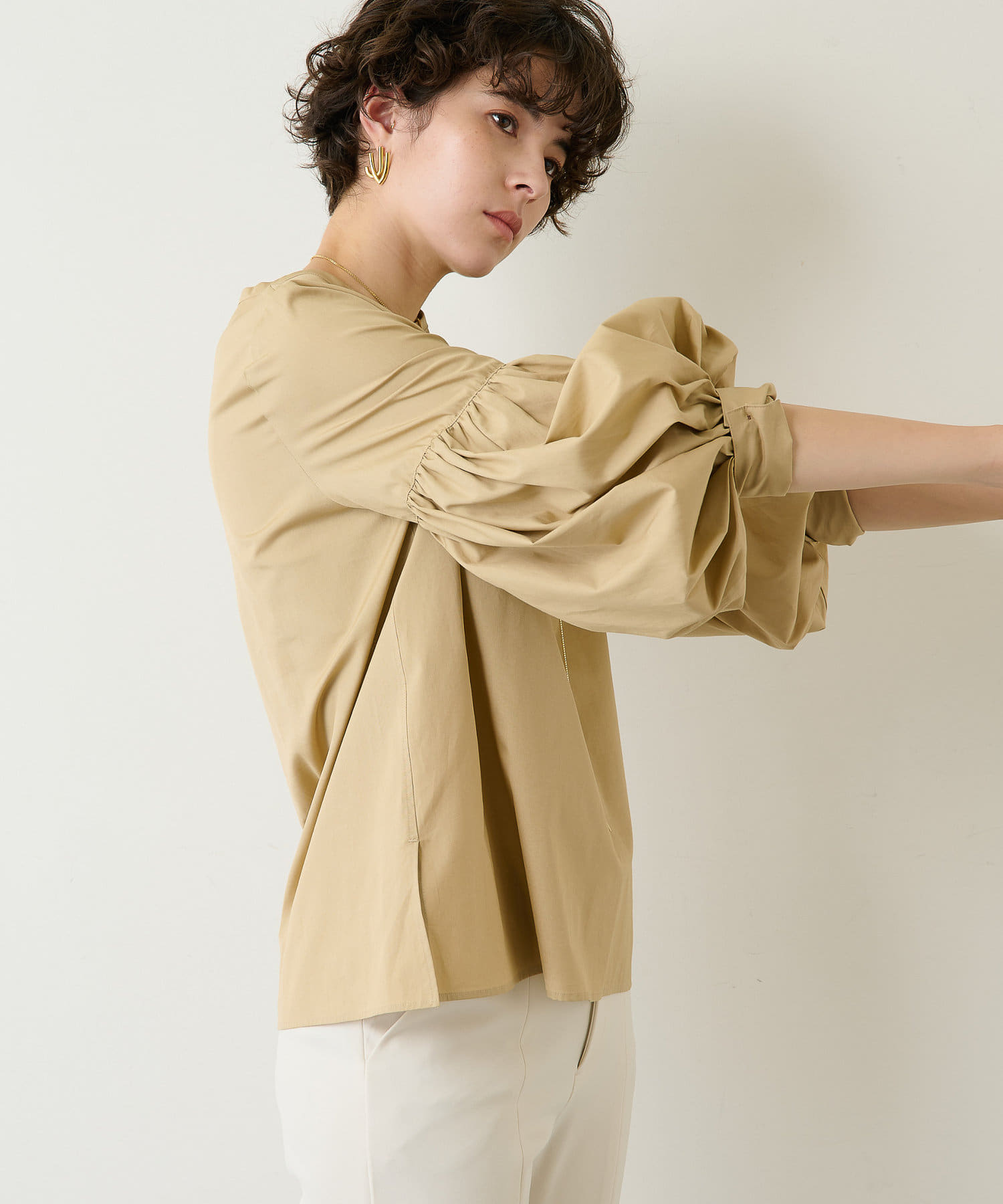 一枚で品よく着映える、大人の袖コンシャスブラウス
