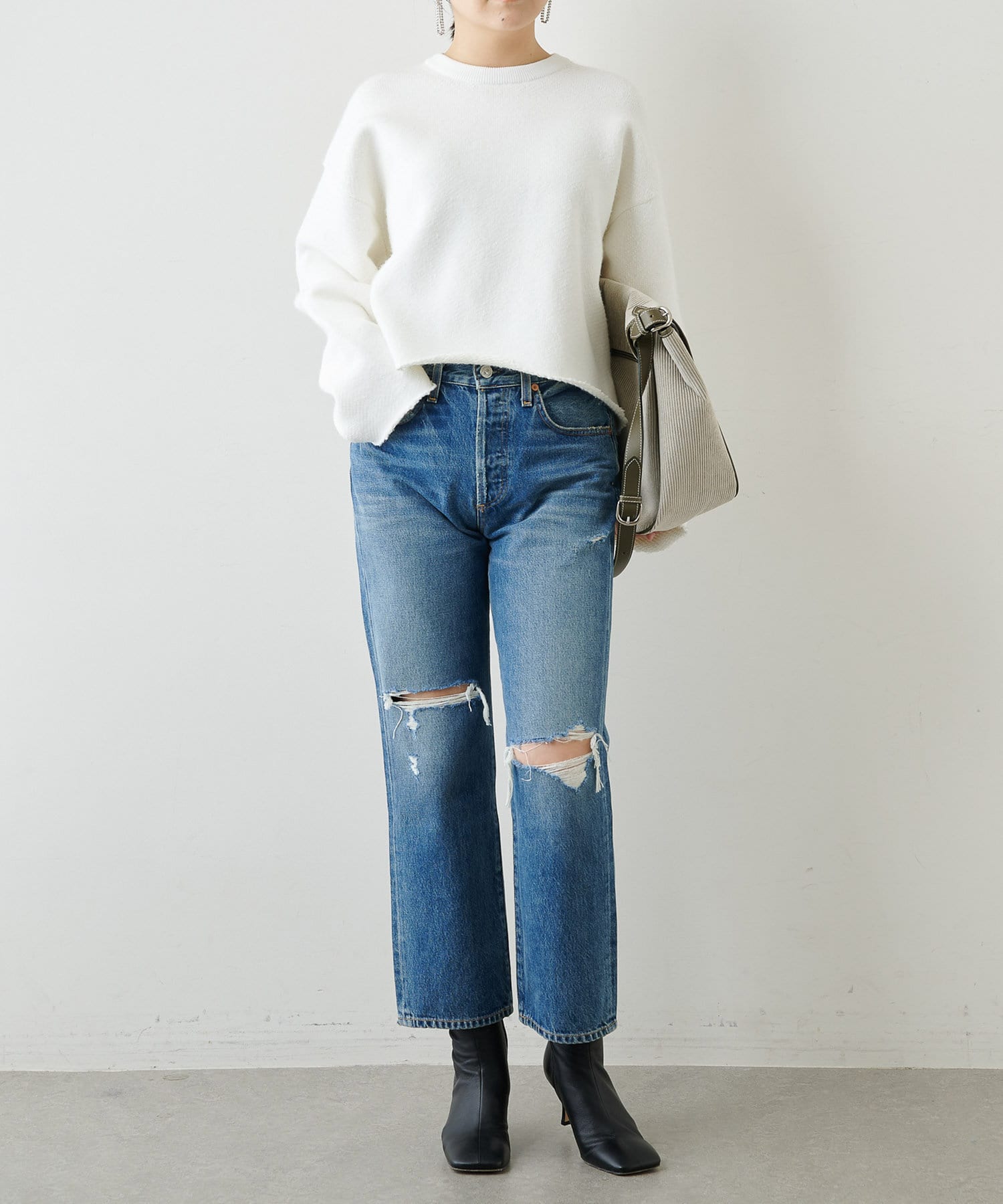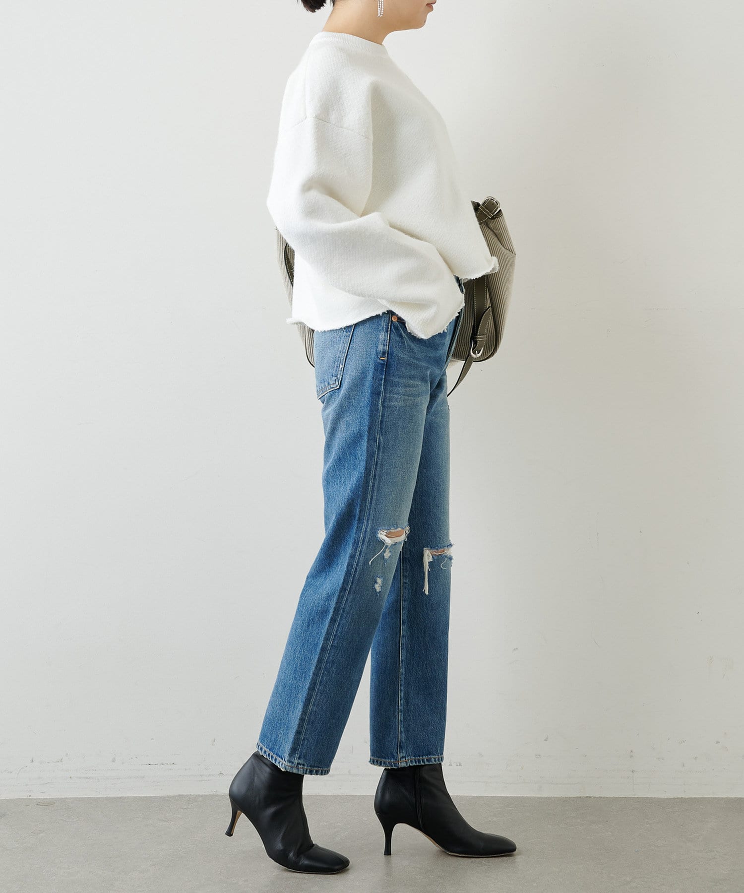 ■スウェット見えしつつも、カジュアル過ぎない絶妙な雰囲気が大人のスタイリングにマッチ。