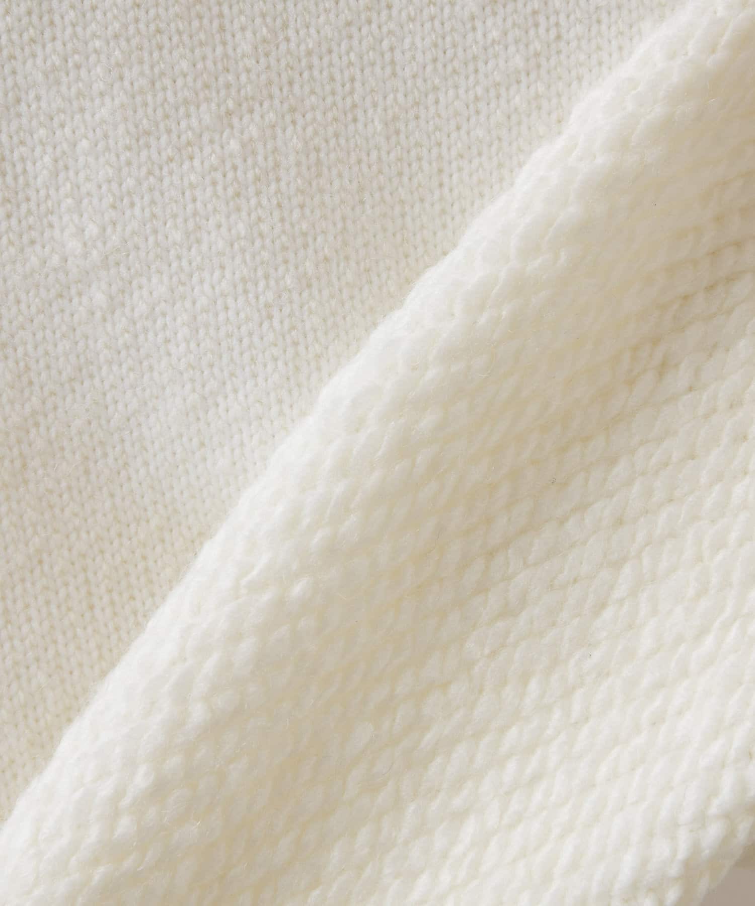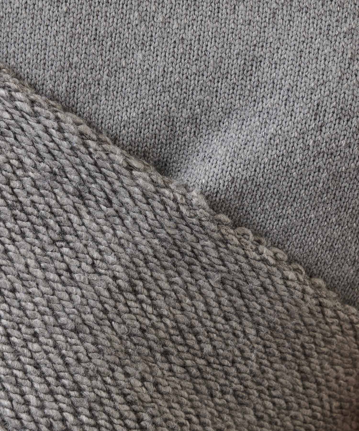 2種類の糸を使用し、編み方をうまく融合させて裏毛のように編まれたニット素材。