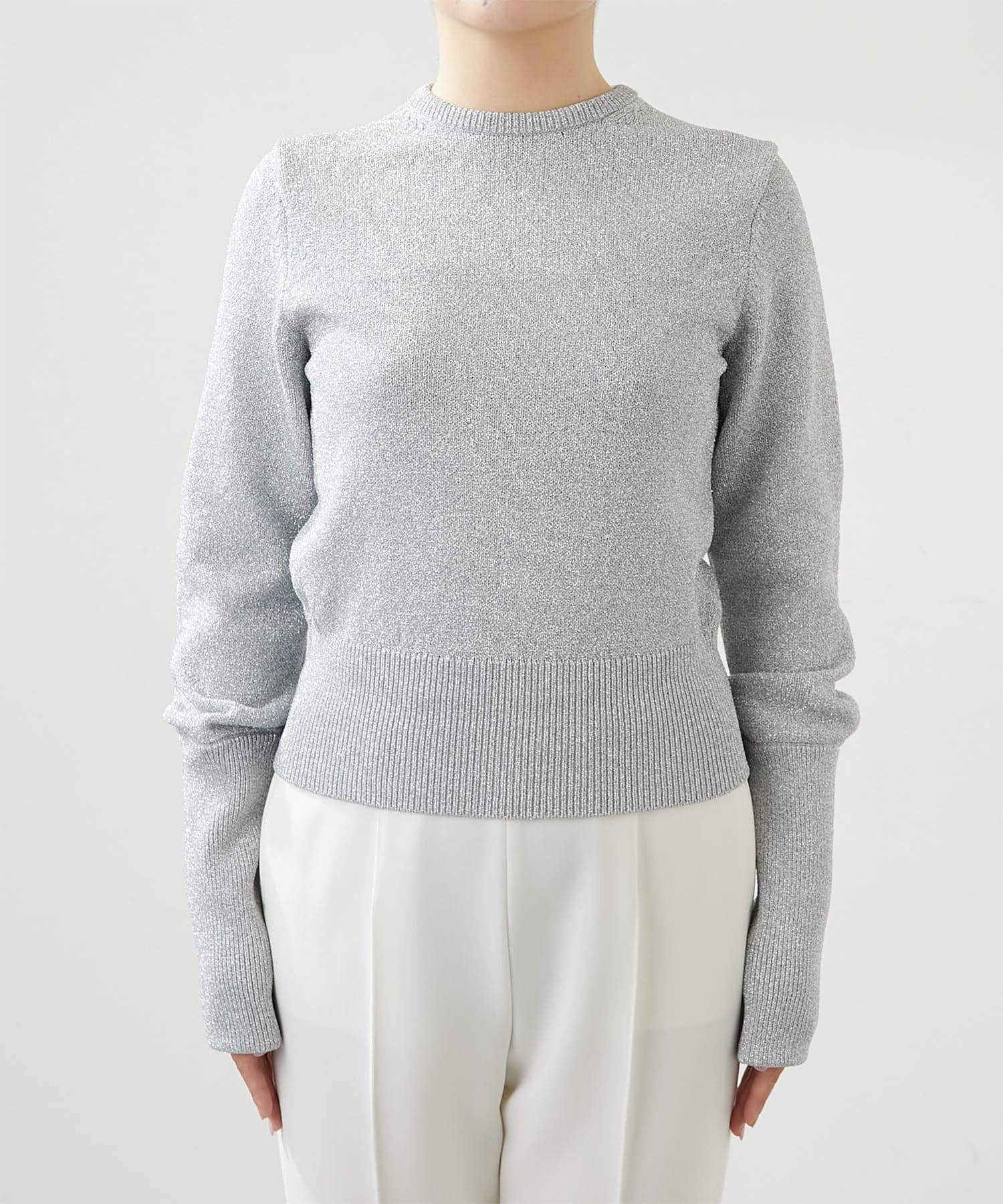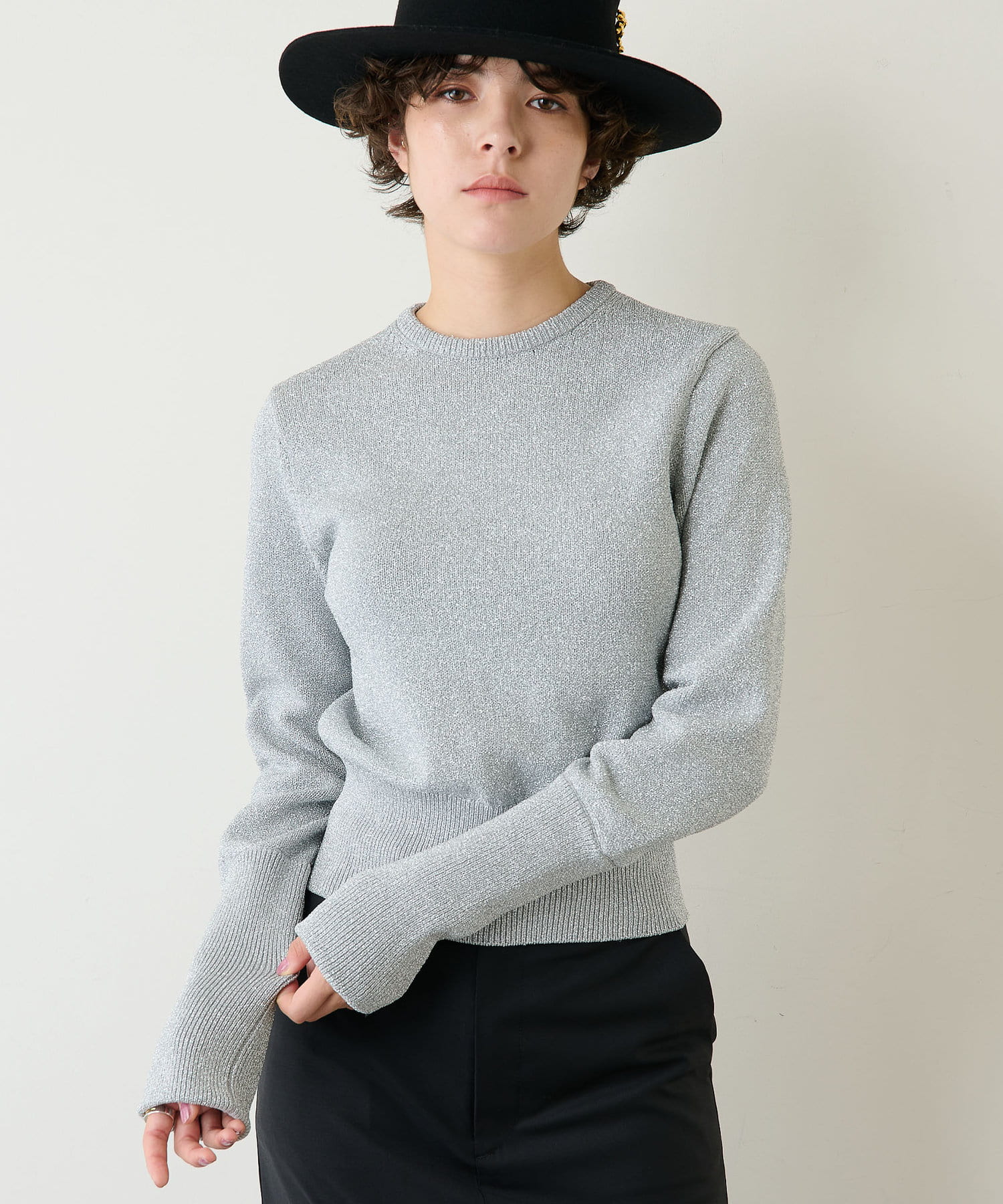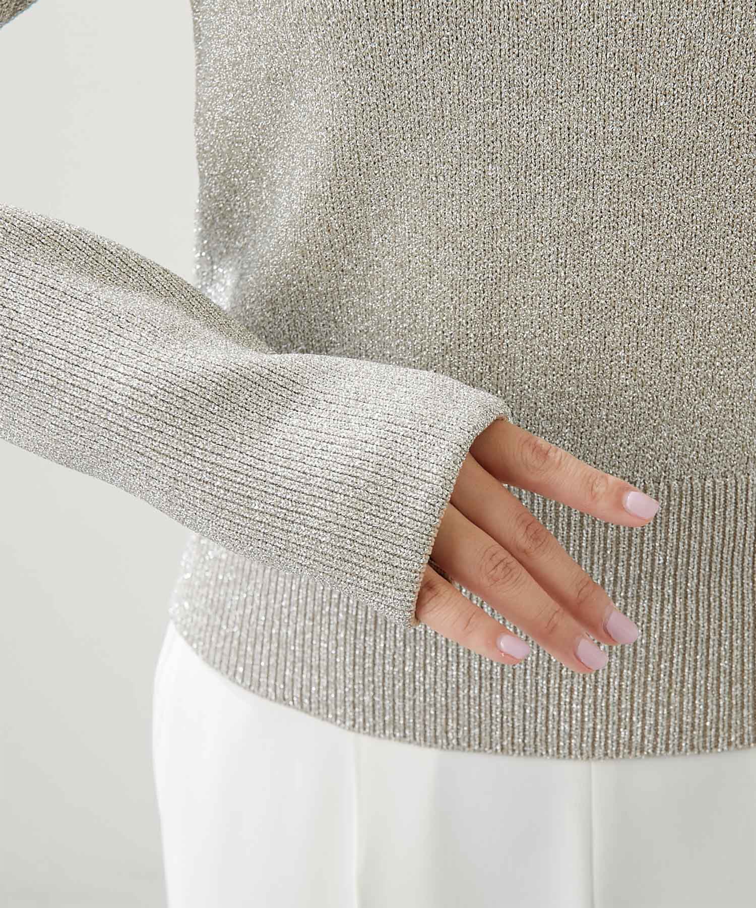 ■ミドルゲージのラメがポイントのニットプルオーバー。